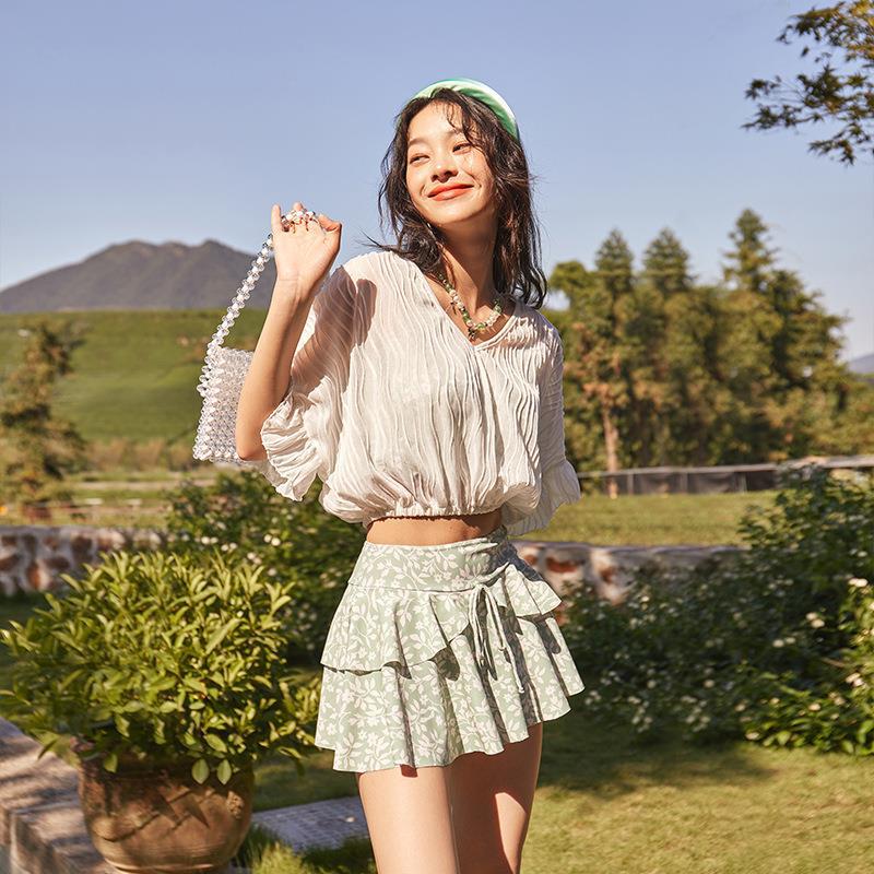 2020 년 새 수영복 여성용 스플릿 쓰리피스 세트 커버링 배꼽 슬리밍 개더업 작은 가슴 한국 온천에