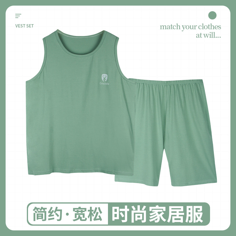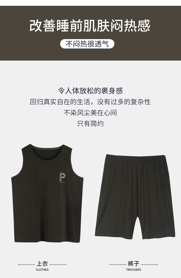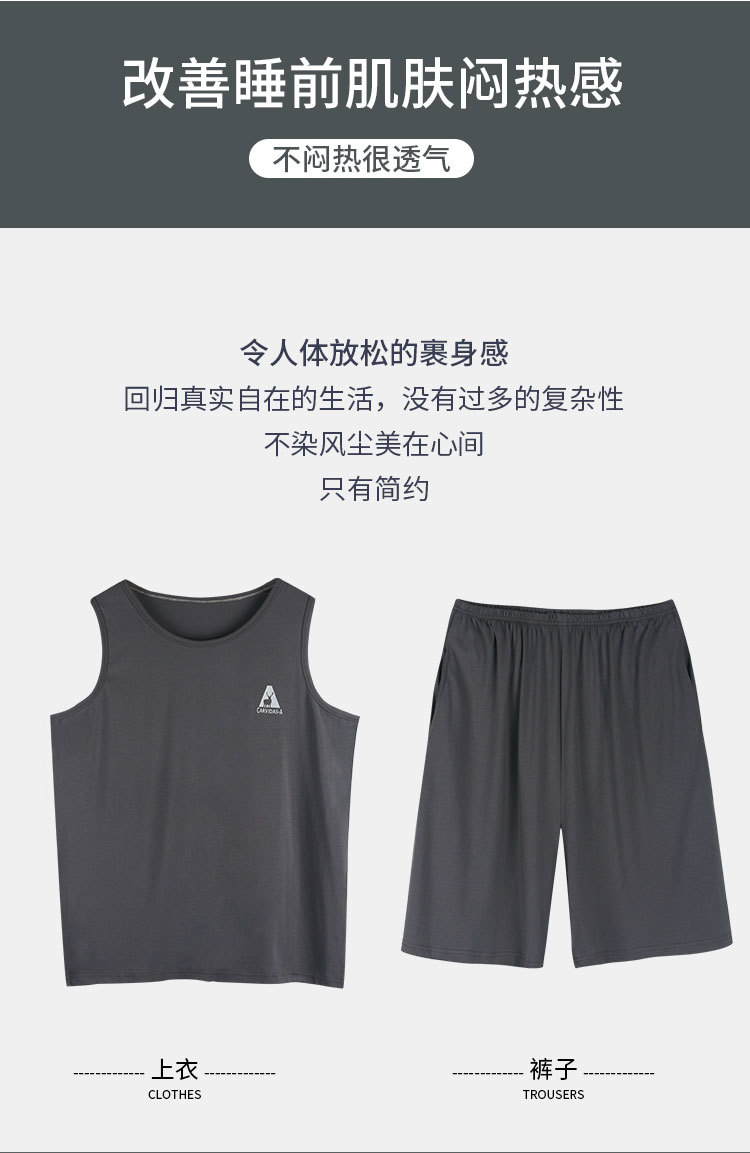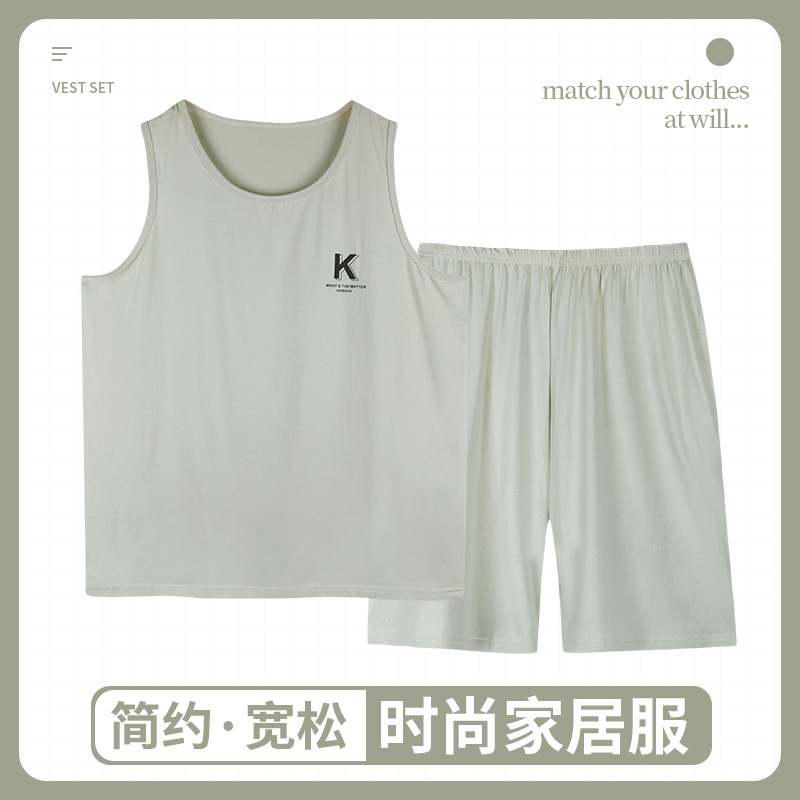 남자의 잠옷 여름 모달 조끼 민소매 반바지 얇은 얼음 실크 남자의 가정 옷 세트 남자의 여름스토어 가기