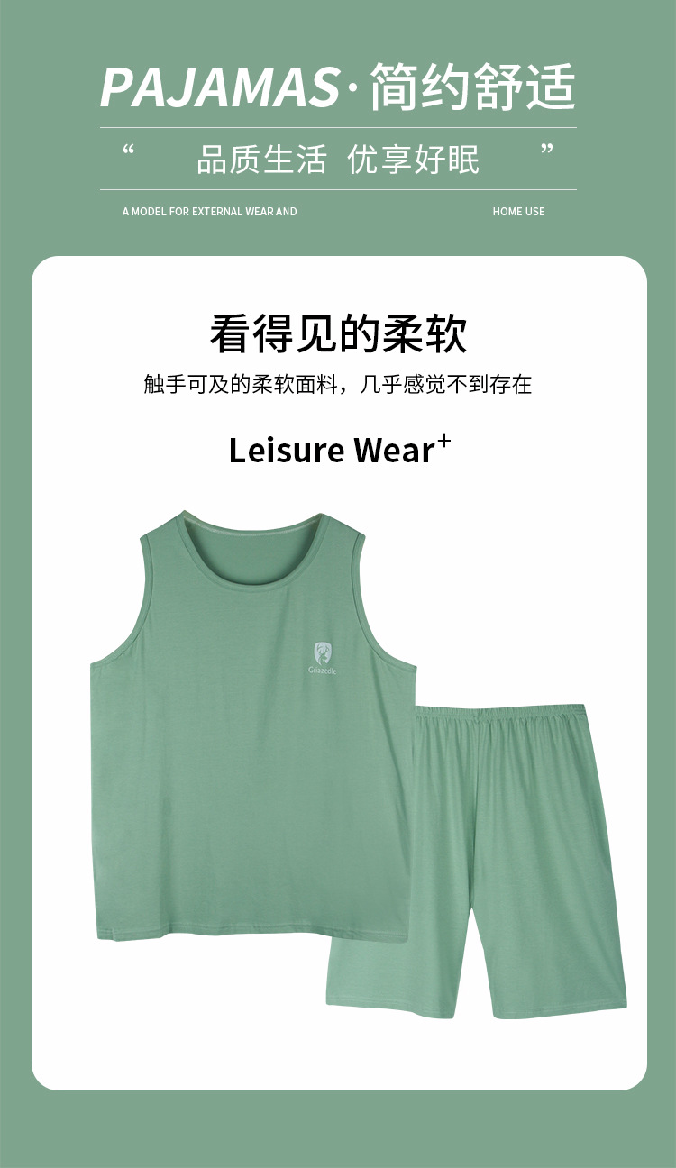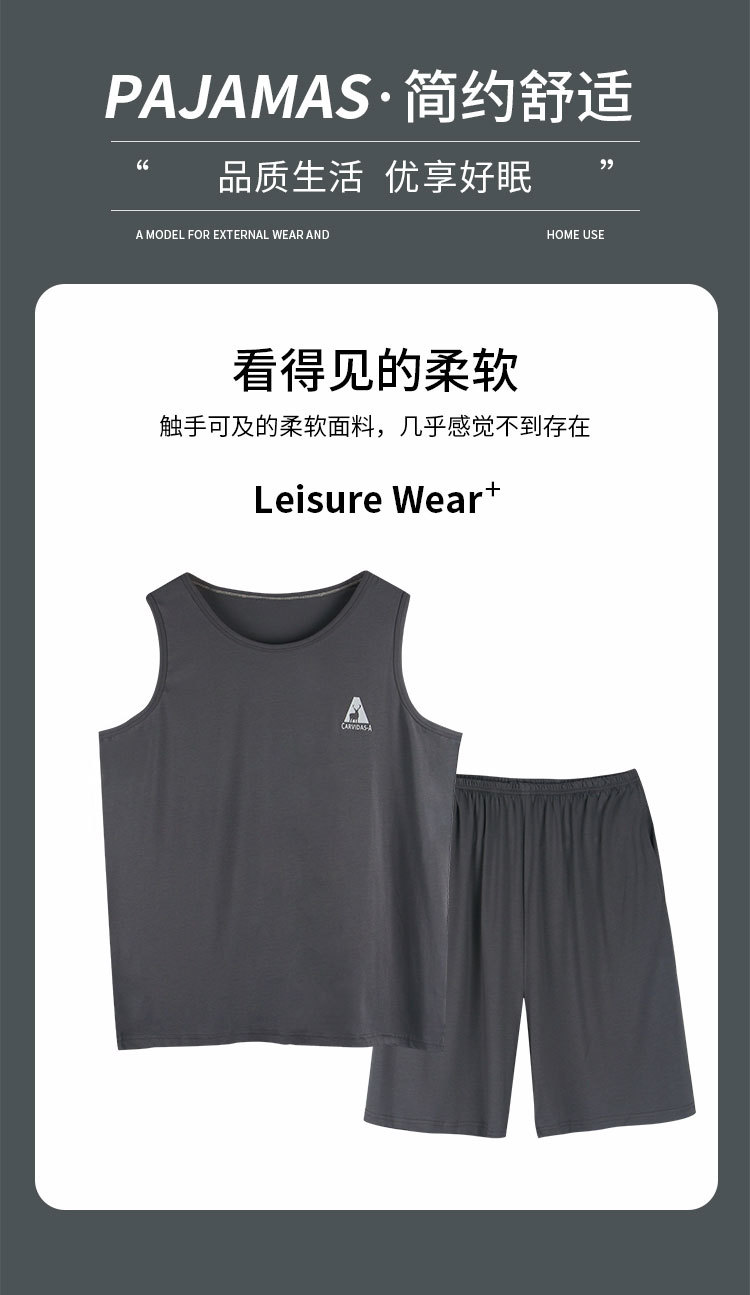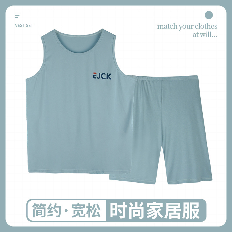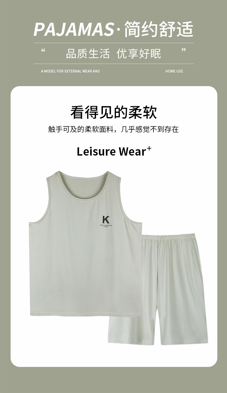 남자의 잠옷 여름 모달 조끼 민소매 반바지 얇은 얼음 실크 남자의 가정 옷 세트 남자의 여름스토어 가기