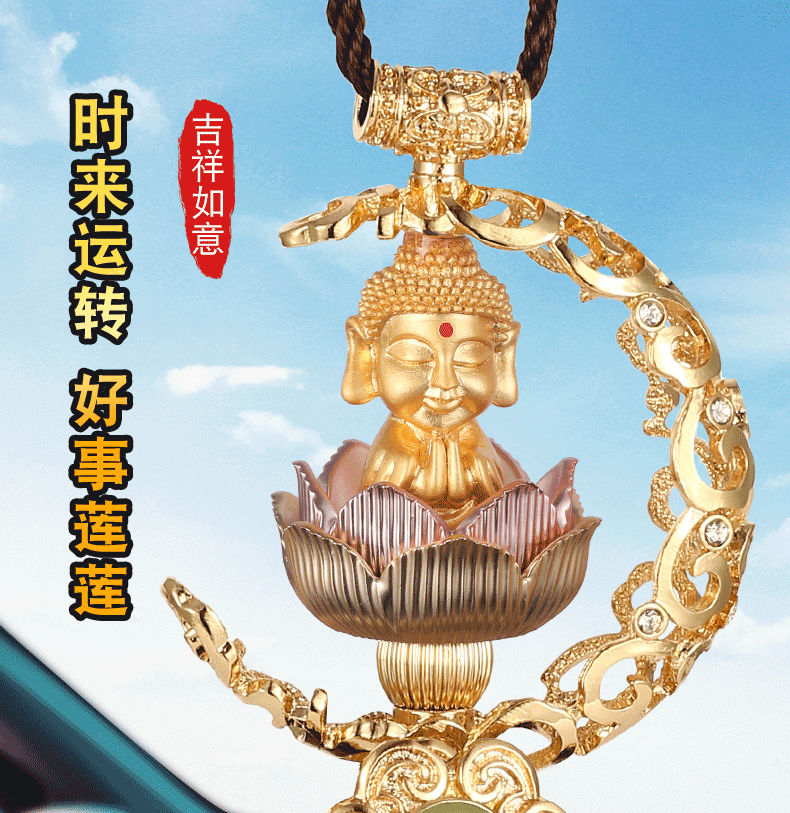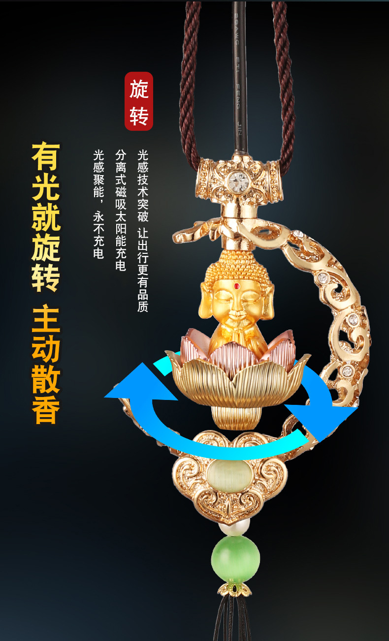 공장 직공급 회전 부처 태양 광 자동차 로터스 펜던트 향수 자동차 아로마 테라피 자동차 액세서리 크리에이티브 펜던트스토어 가기