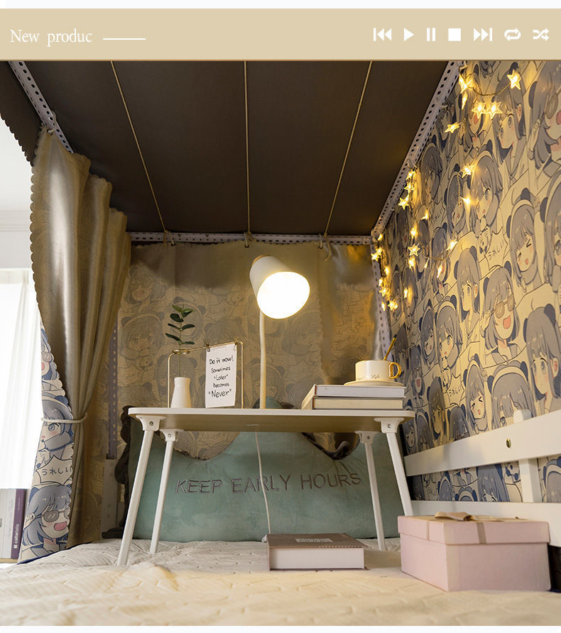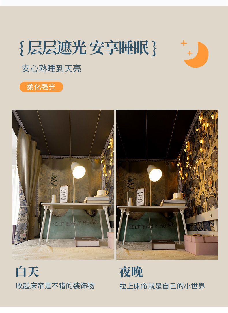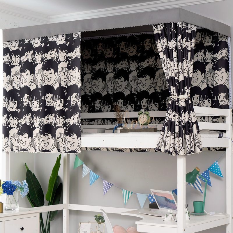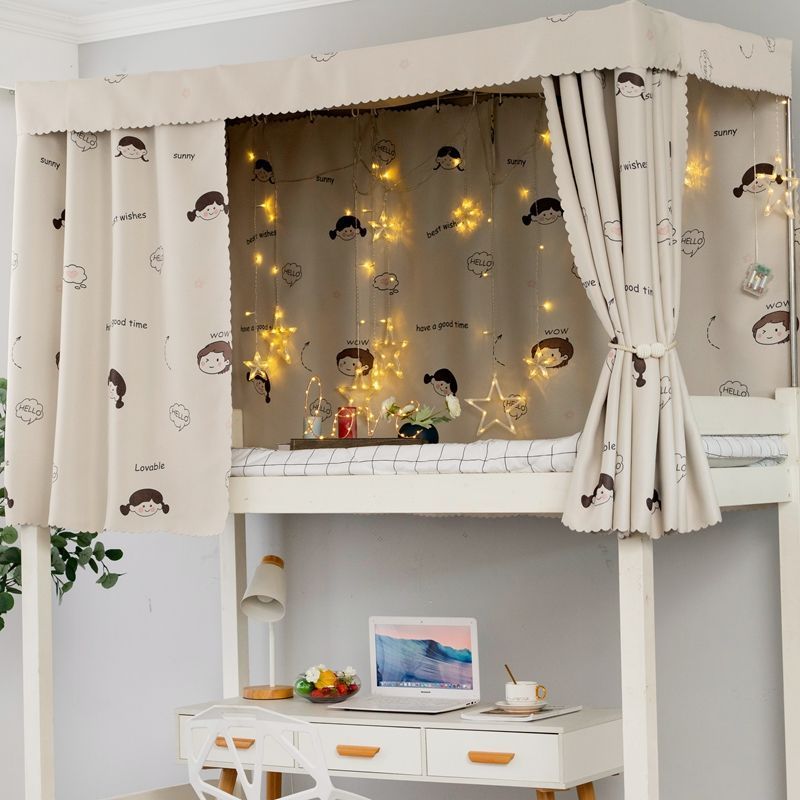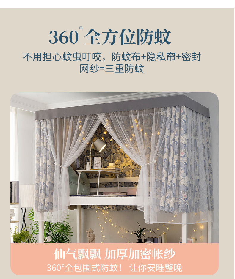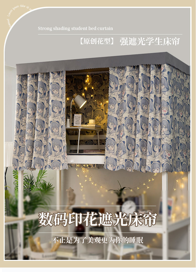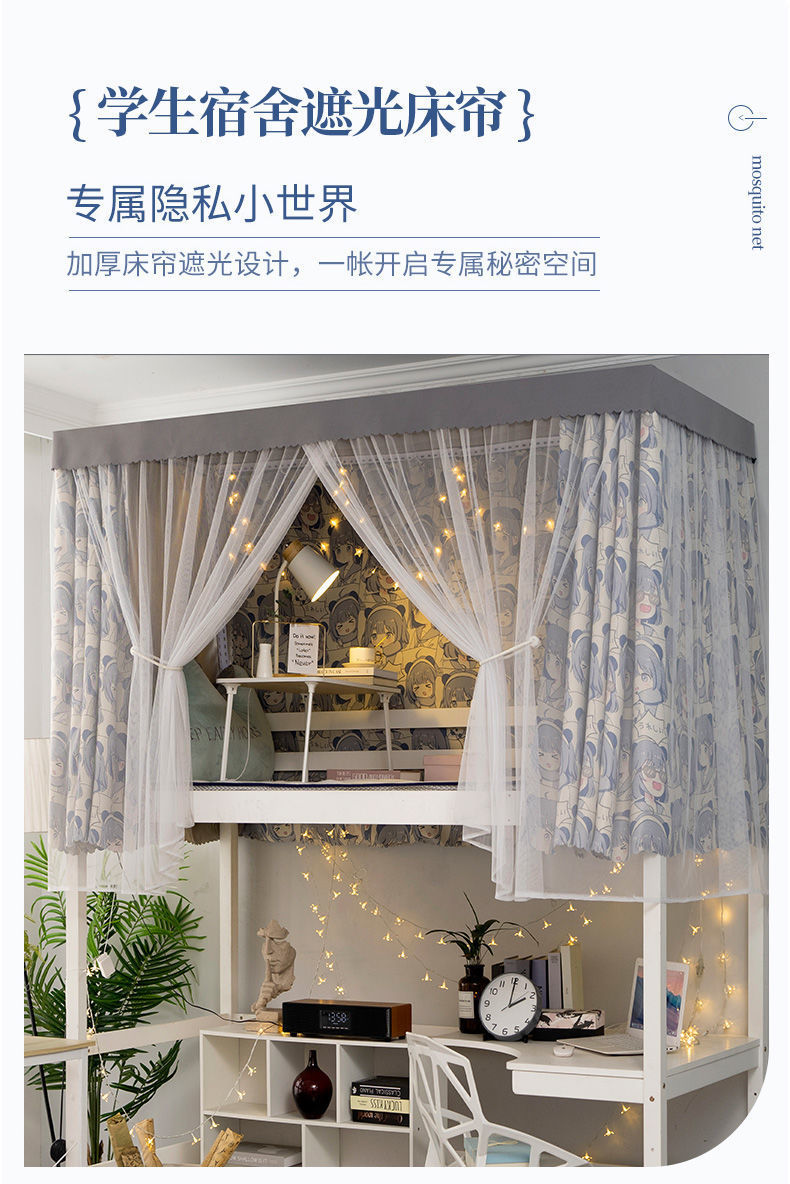 대학생 기숙사 침대 커튼 강한 음영 상부 침실 하부 침실 만화 여성을위한 간단한 두꺼운 모기장 통합 침대 커튼스토어 가기