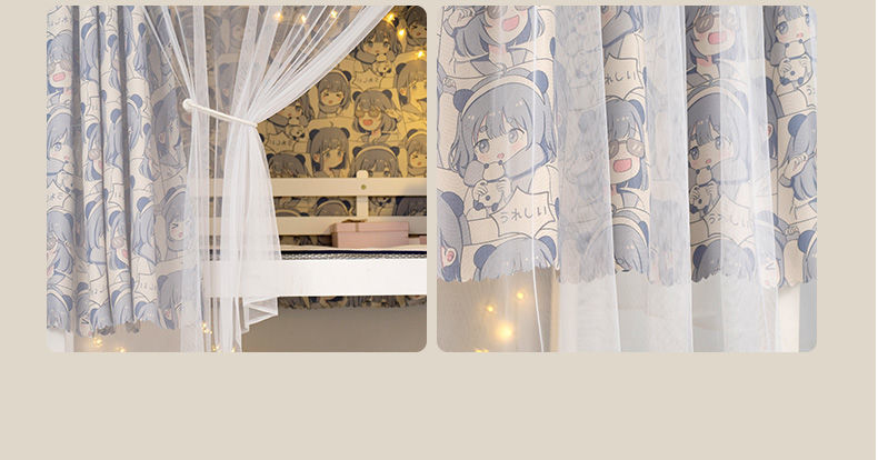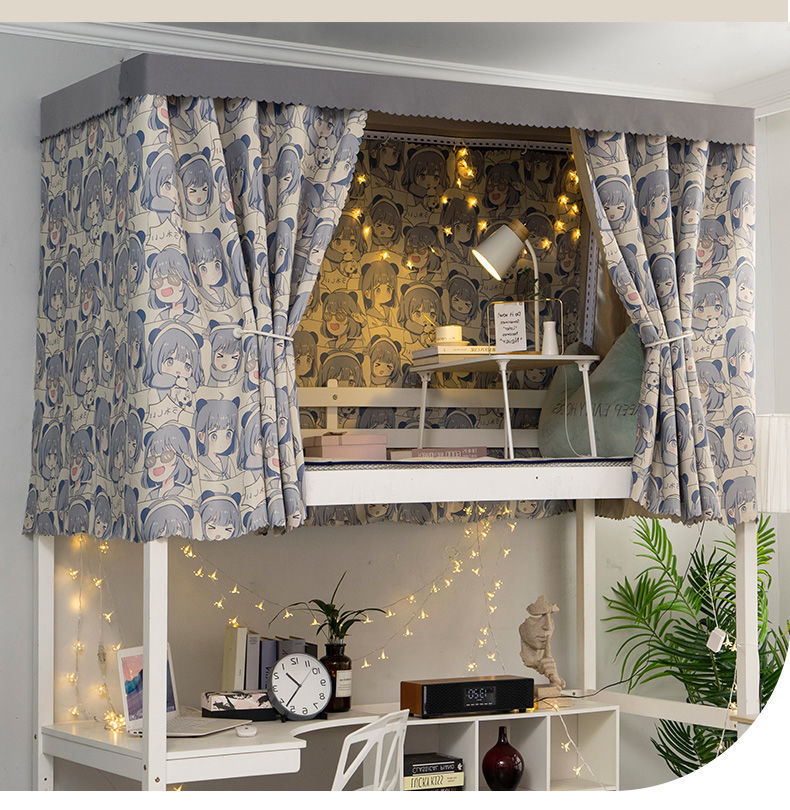 대학생 기숙사 침대 커튼 강한 음영 상부 침실 하부 침실 만화 여성을위한 간단한 두꺼운 모기장 통합 침대 커튼