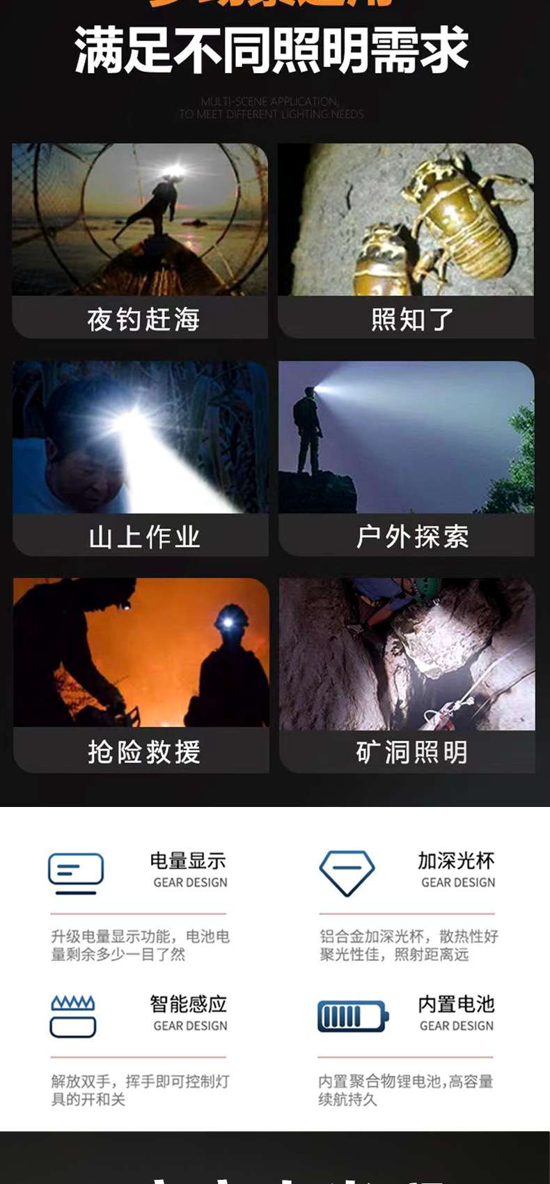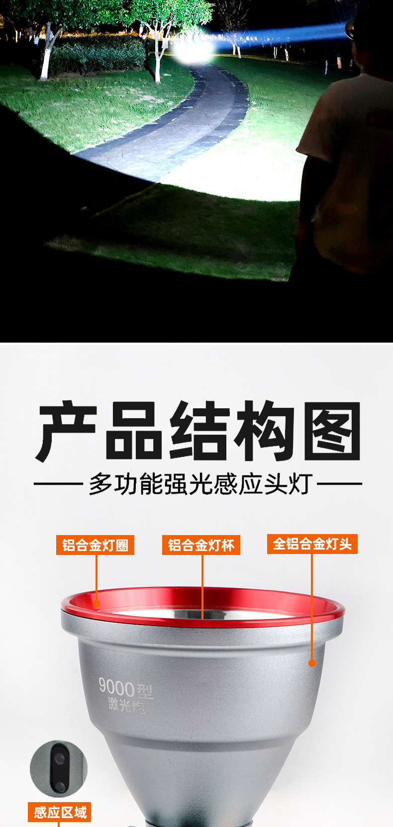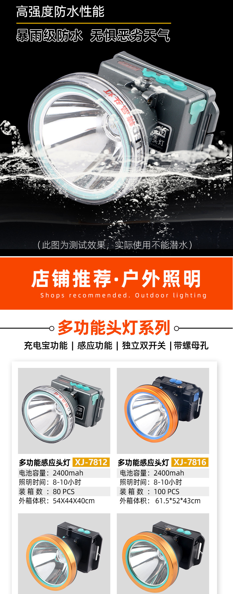 • 7819 다기능 유도 헤드 라이트 배터리 수명 8-10 시간