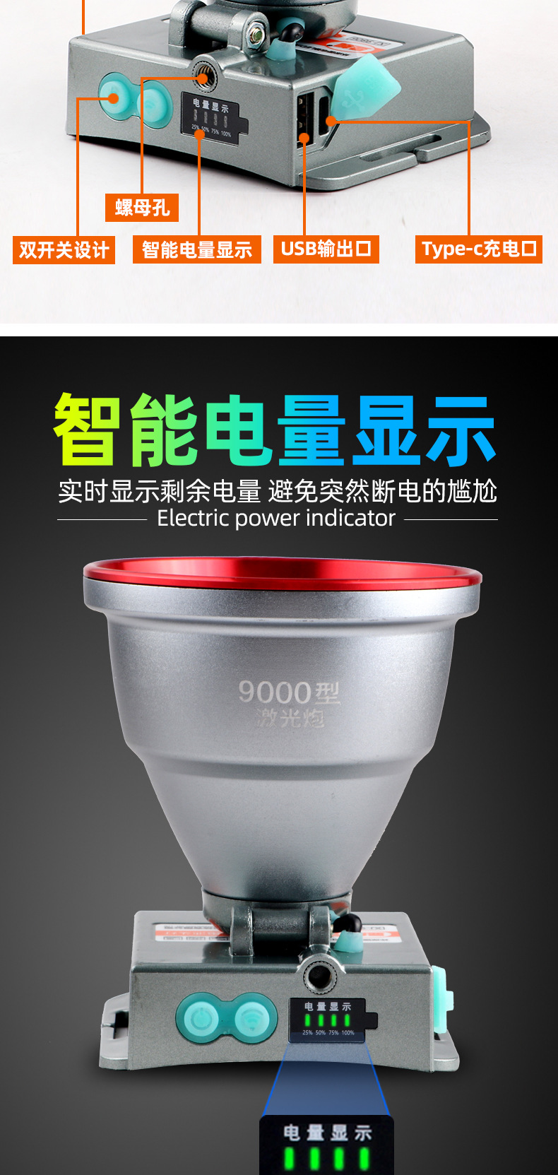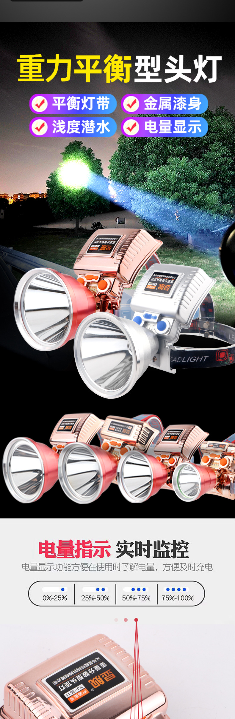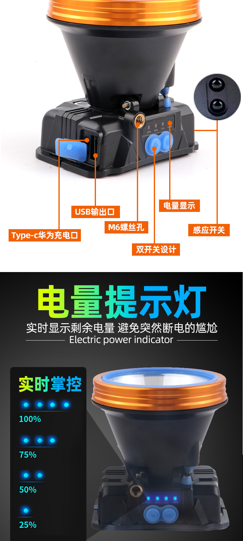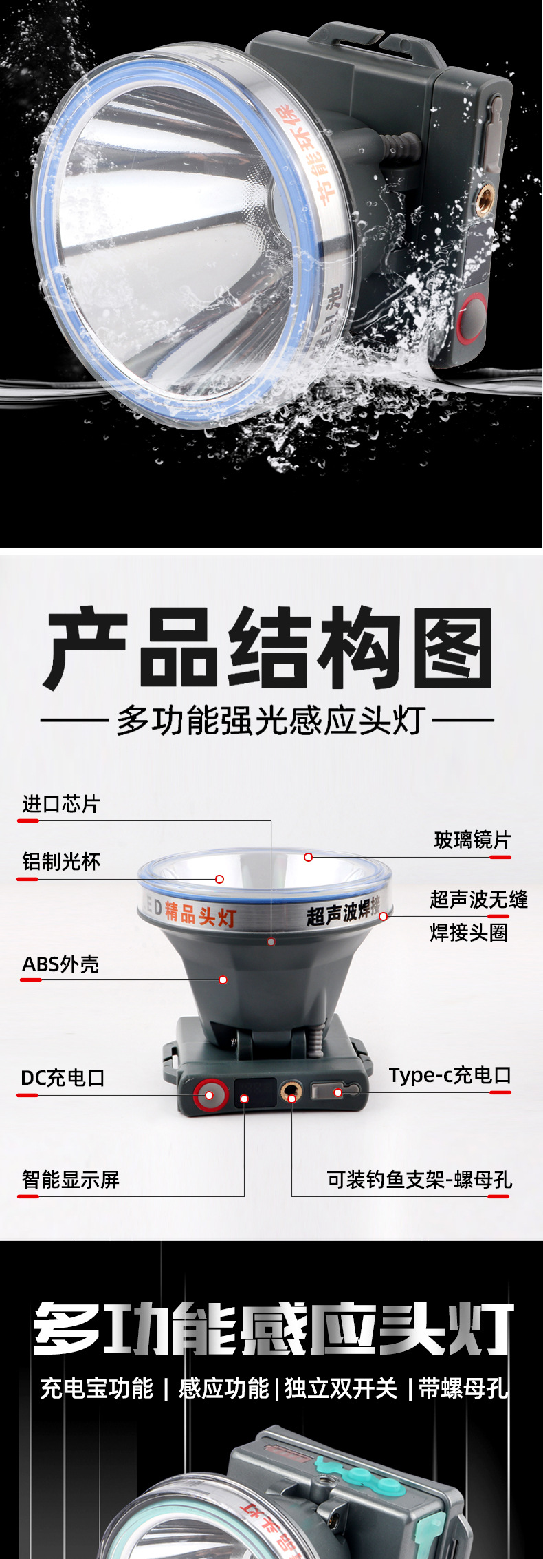 • 7819 다기능 유도 헤드 라이트 배터리 수명 8-10 시간