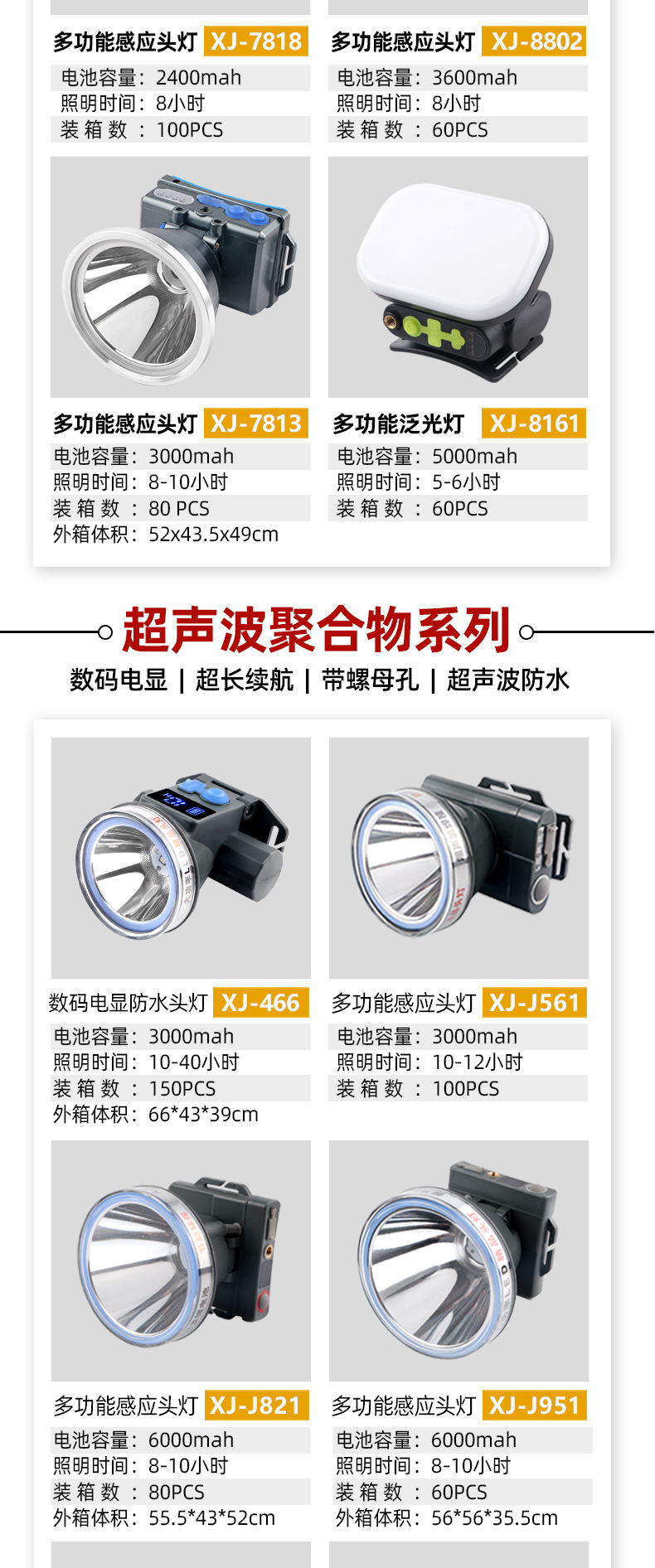 • J561 폴리머 방수 헤드 라이트 배터리 수명 8-10 시간