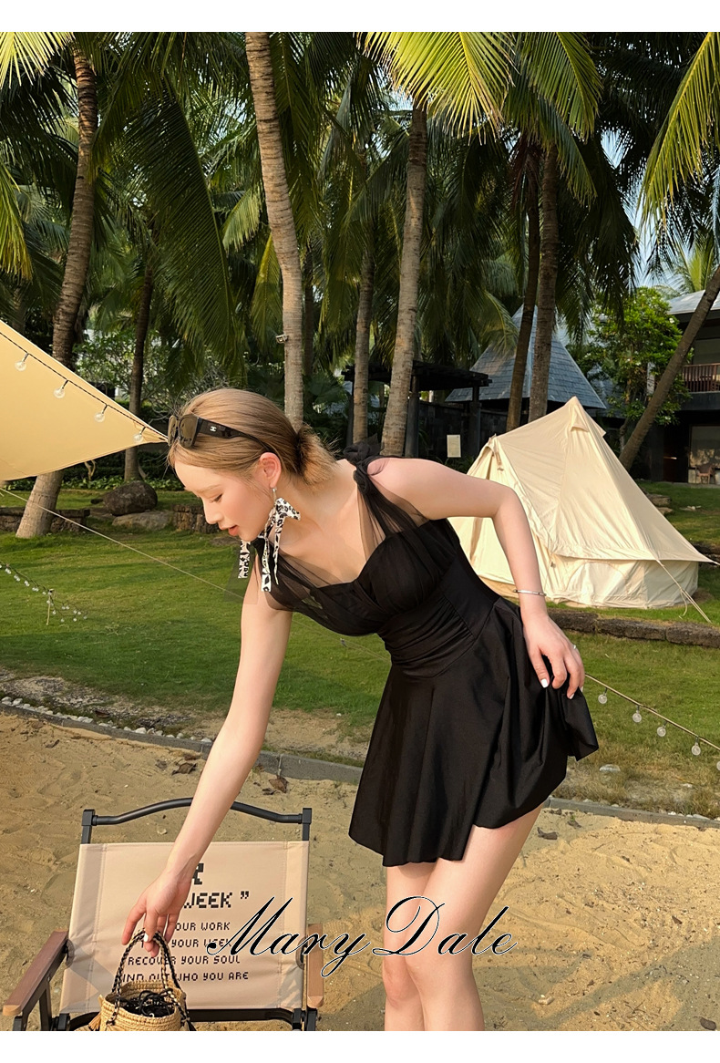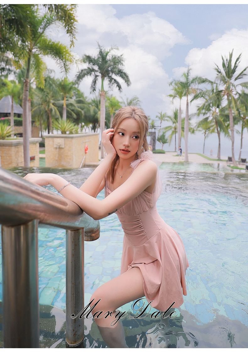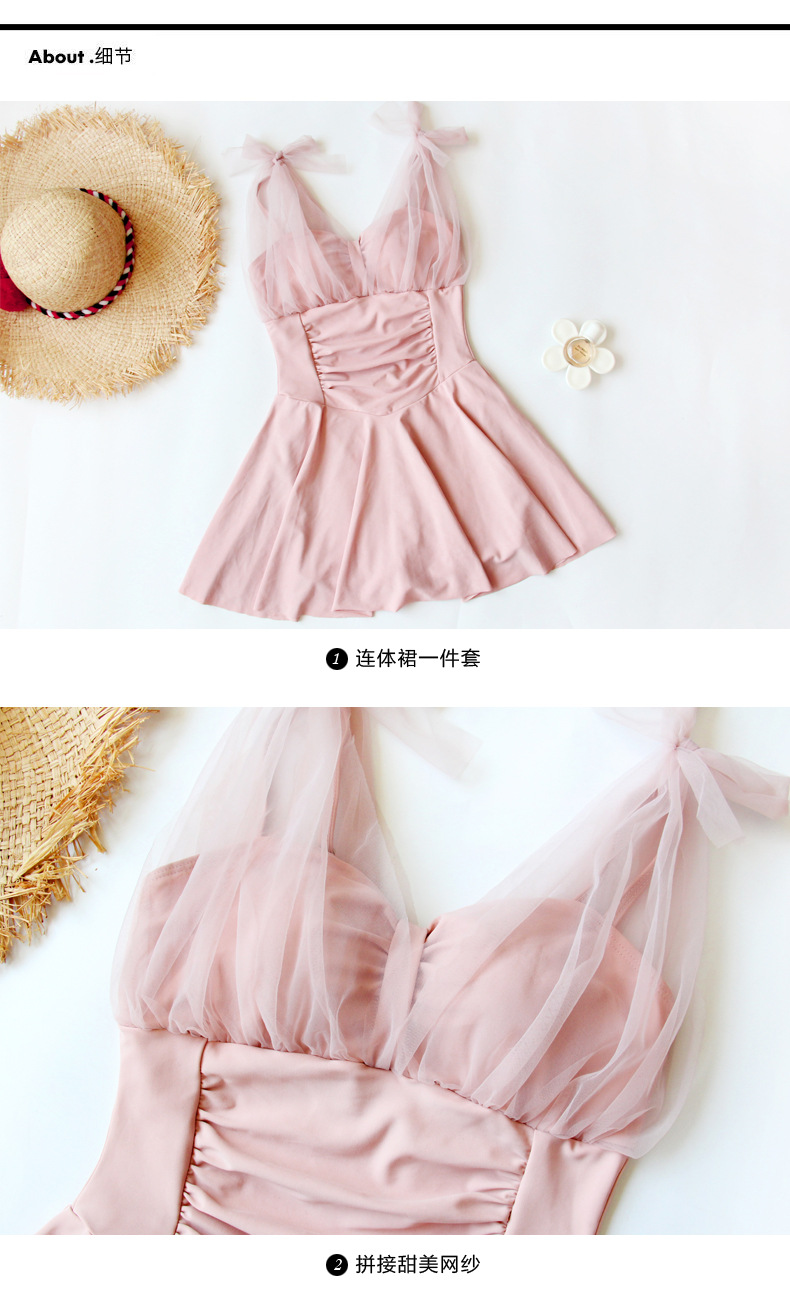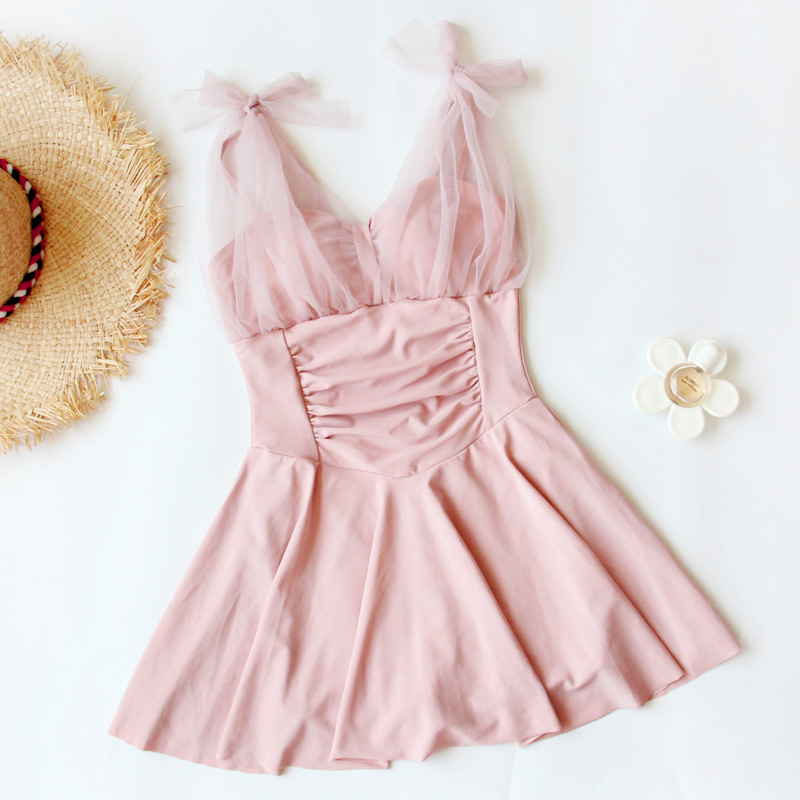 2023 여름 새로운 원피스 수영복 여성의 배꼽 커버 보수적 인 온천 핑크 흰색 고급 스커트 수영복스토어 가기
