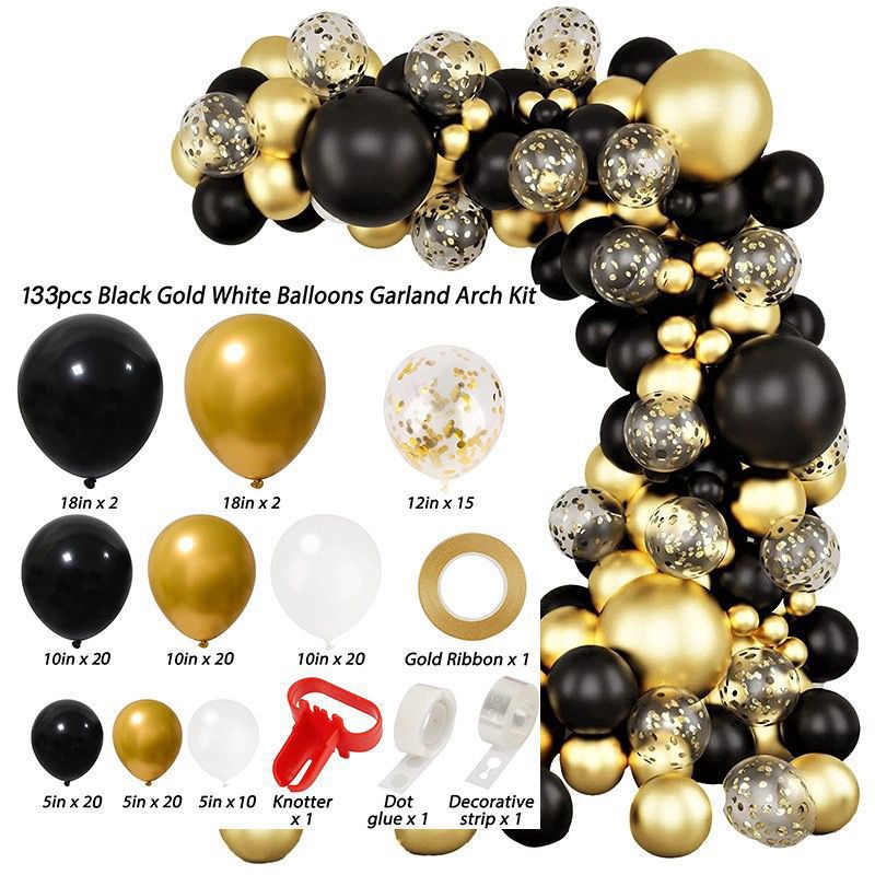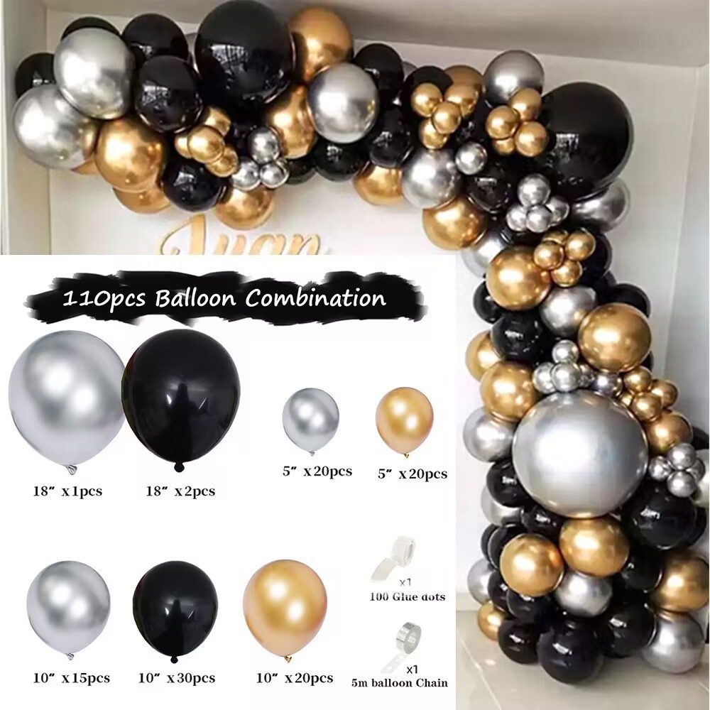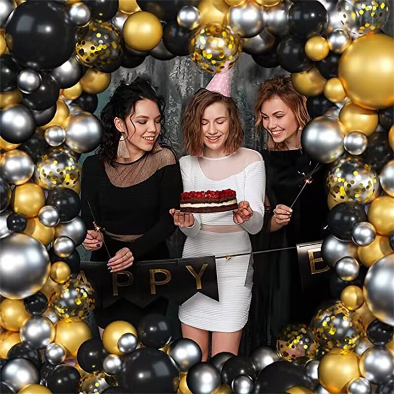 아마존의 새로운 블랙 골드 풍선 세트 생일 테마 풍선 조합 휴일 파티 장식 풍선