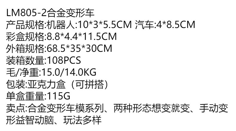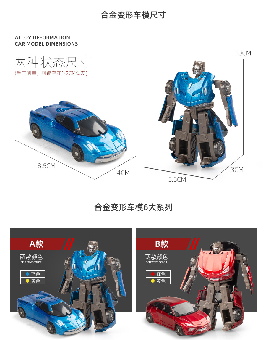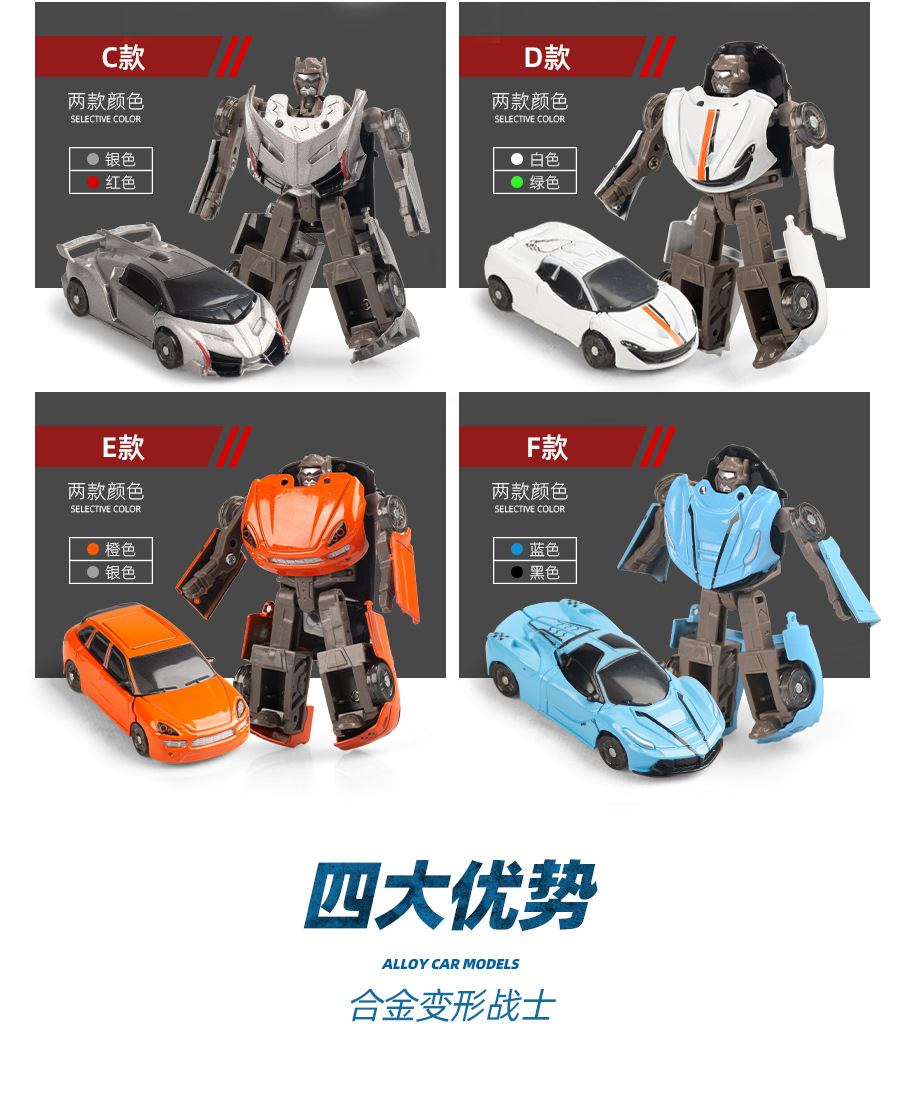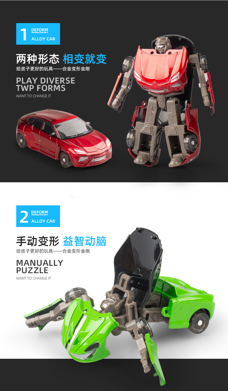 합금 변형 자동차 로봇 모델 어린이 금속 경주 자동차 슬라이딩 장난감 자동차 소년 유치원 선물 도매