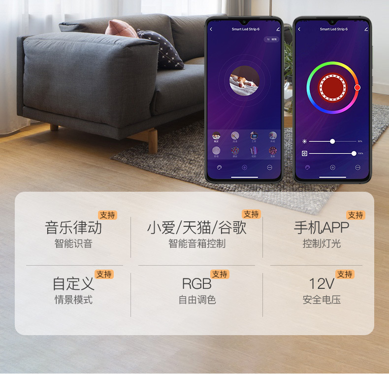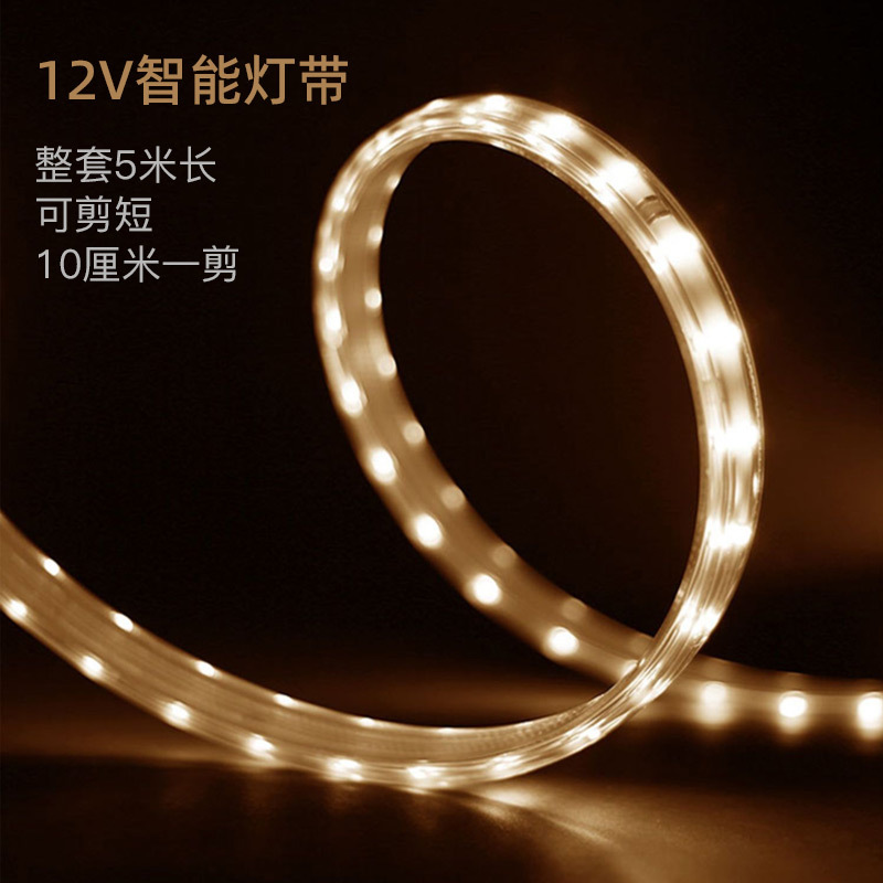 • 12v 지능형 라이트 벨트 1 세트 (길이 5 미터, 짧게자를 수 있음, 절단 10cm