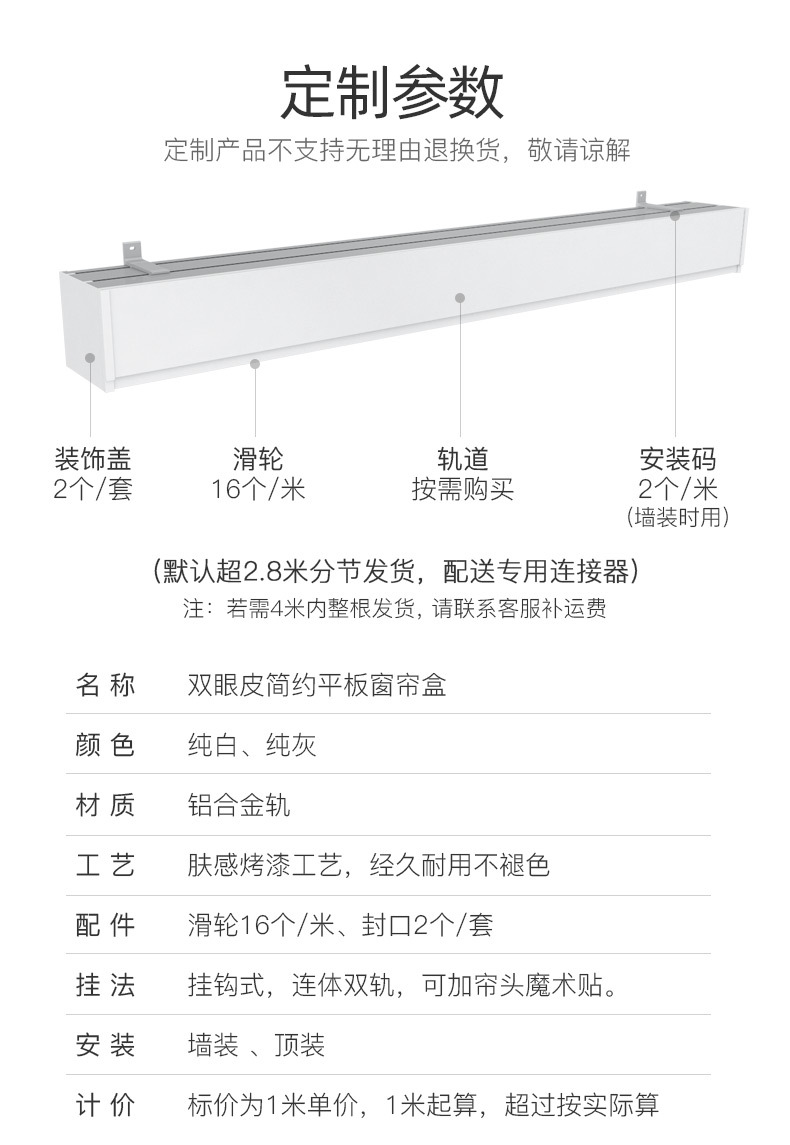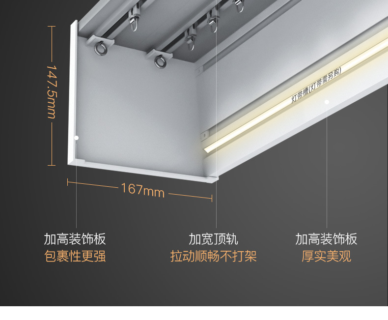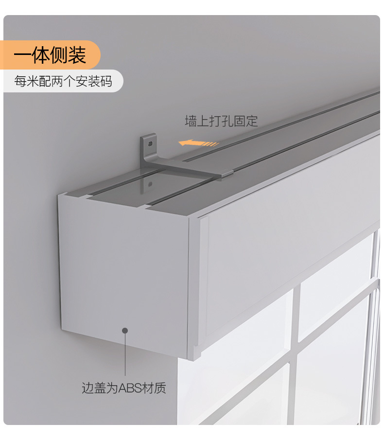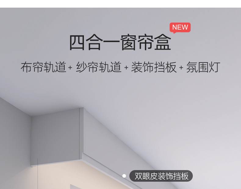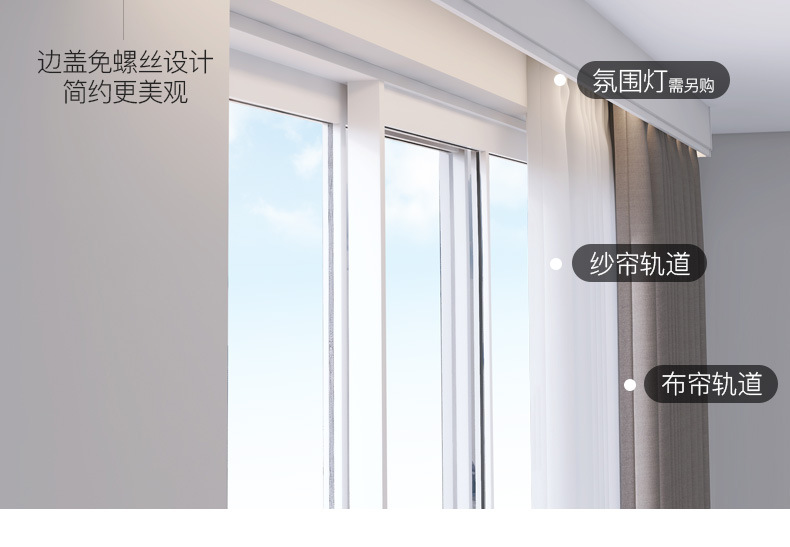 이중 커튼 박스, 베젤 일체형 박스, 상단 장착형 스마트 라이트, 베젤이 있는 알루미늄 합금 무소음 이중 트랙 박스