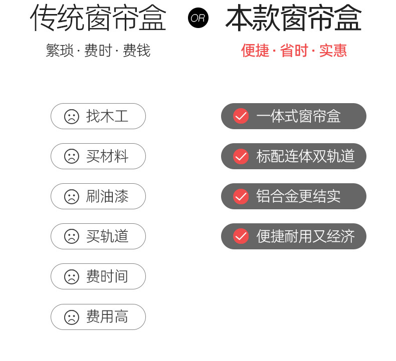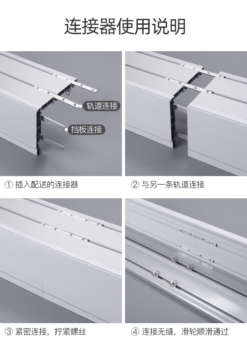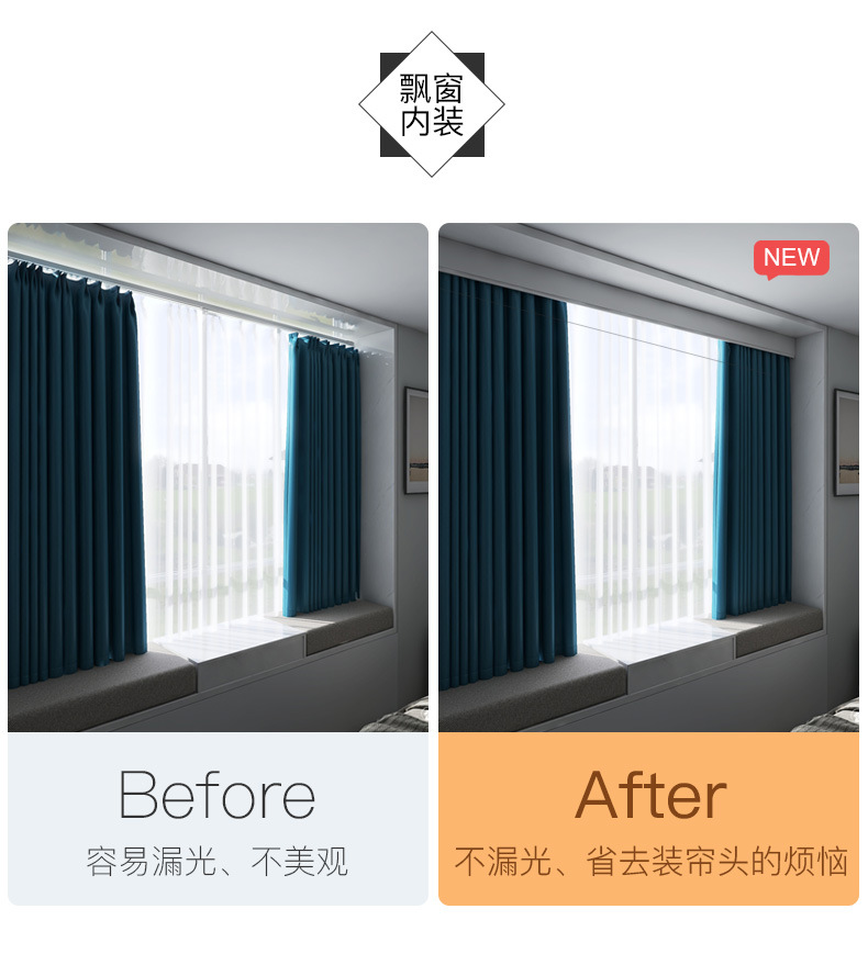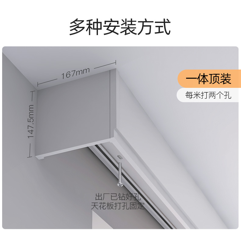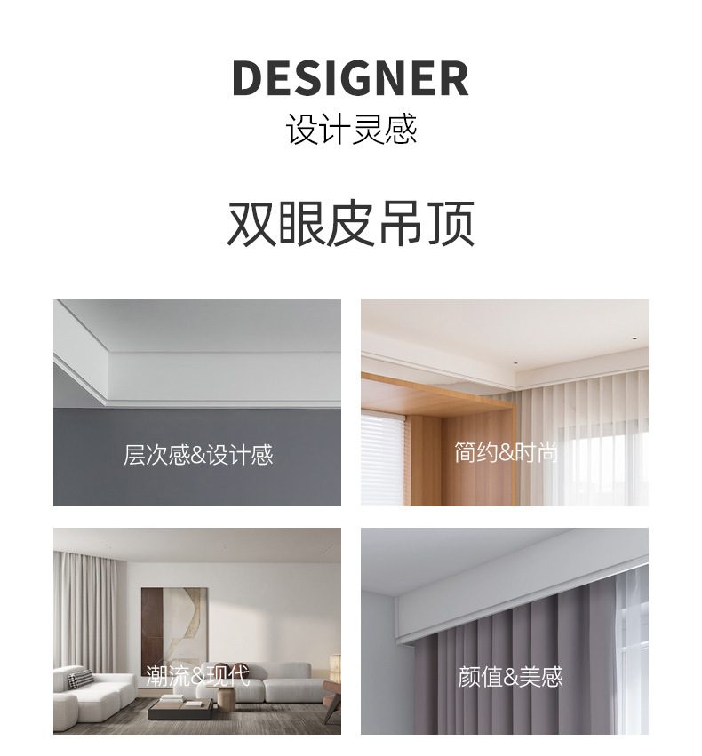 이중 커튼 박스, 베젤 일체형 박스, 상단 장착형 스마트 라이트, 베젤이 있는 알루미늄 합금 무소음 이중 트랙 박스