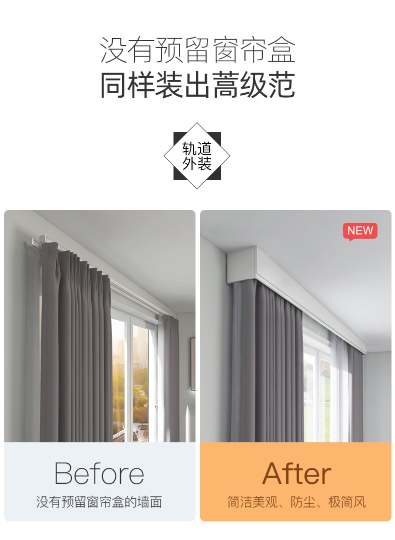 이중 커튼 박스, 베젤 일체형 박스, 상단 장착형 스마트 라이트, 베젤이 있는 알루미늄 합금 무소음 이중 트랙 박스스토어 가기