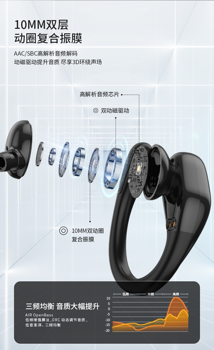 New Tide 전기 운동 미친 무선 귀를 던질 수 없습니다 지능형 소음 감소 헤드셋 편리한 블루투스 헤드셋
