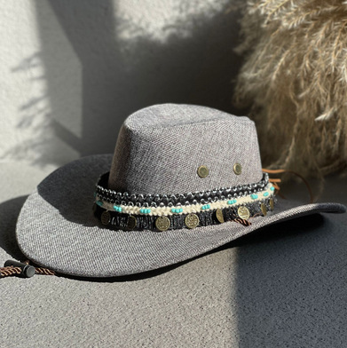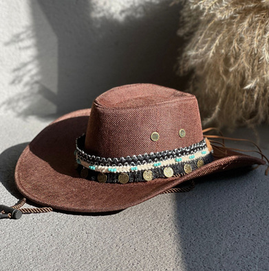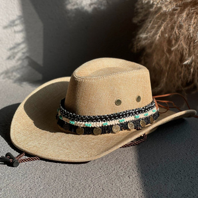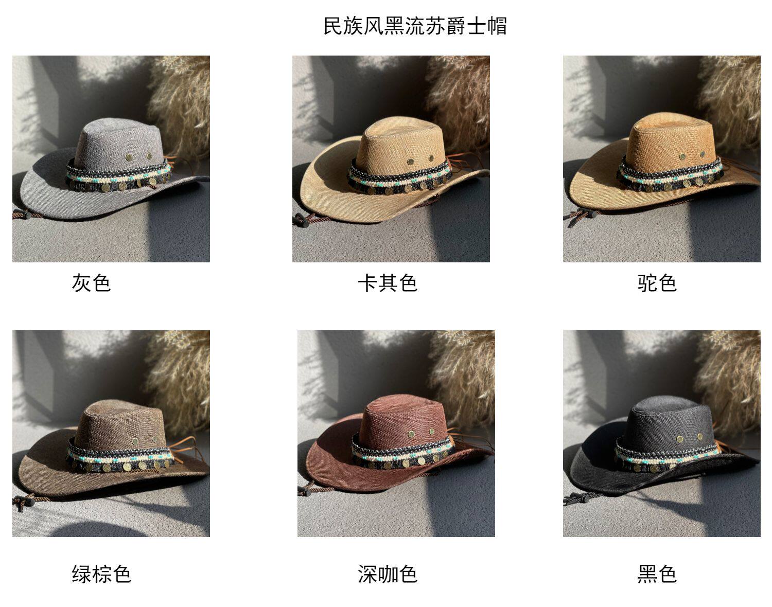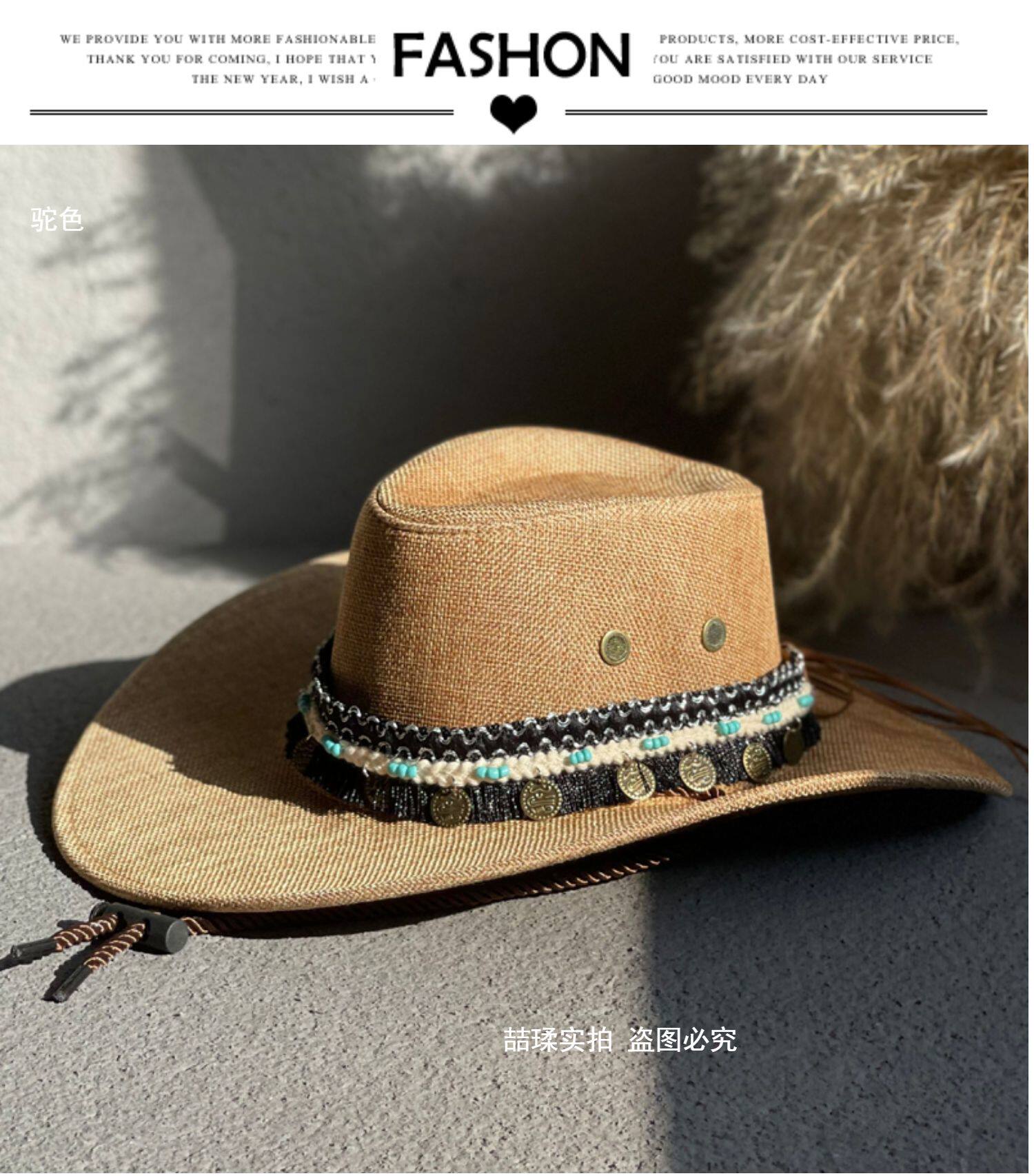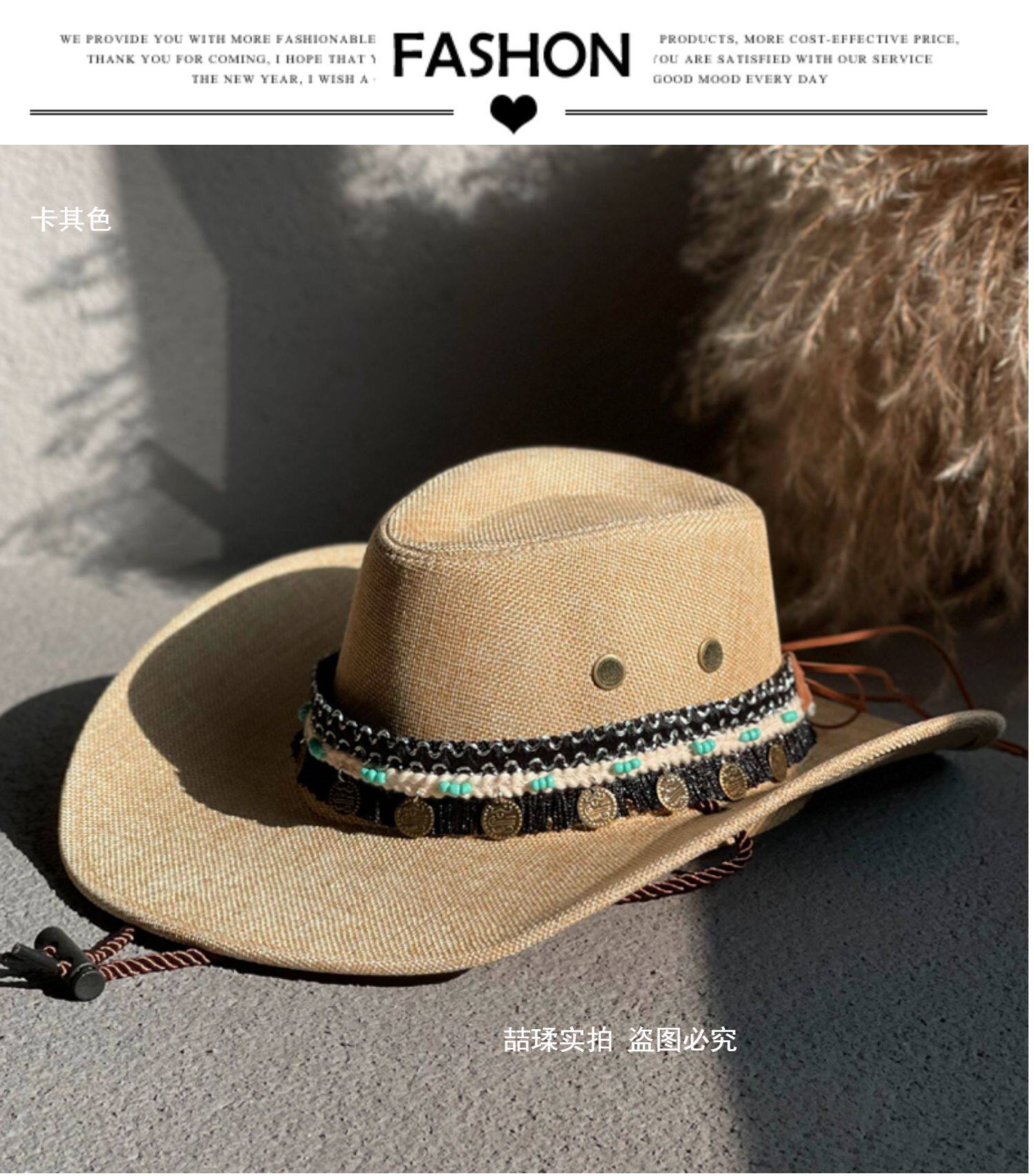 에스닉 스타일 재즈 밀짚 모자 여자의 봄과 여름 야외 자외선 차단제 모자 웨스턴 데님 모자 남자의 등산 태양 모자