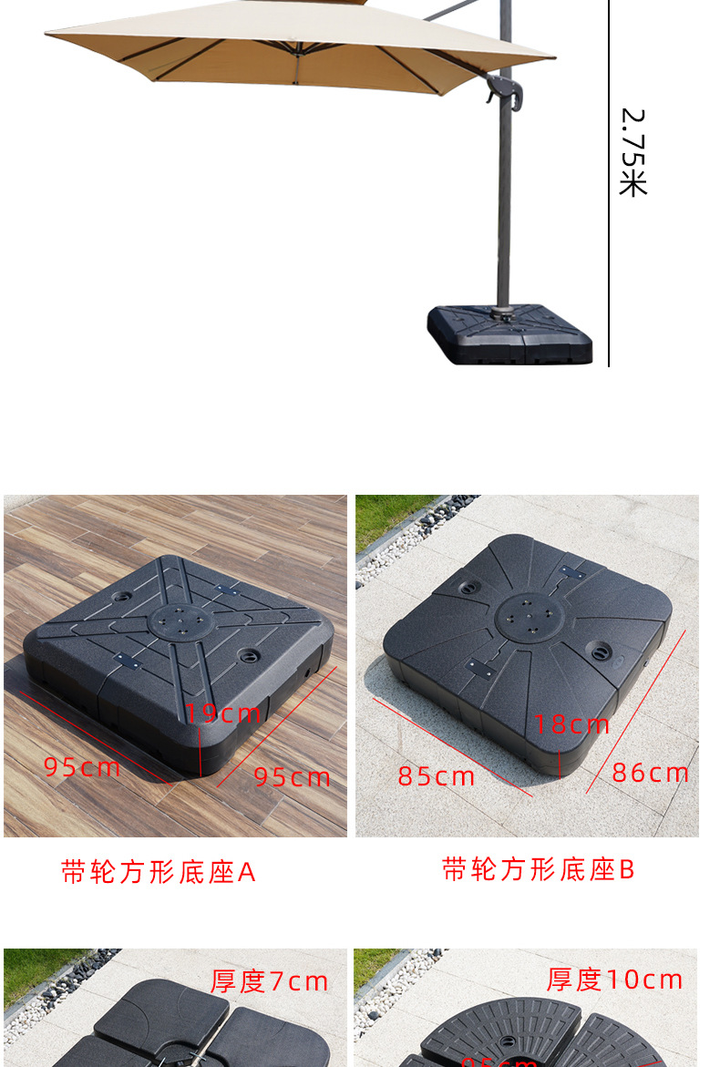 • [2.5*2.5 m 사각] 알루미늄 합금 기둥 8cm + 60kg 대리석 밑면 360 도 회전 가능