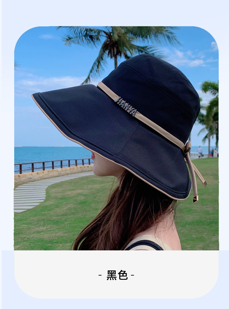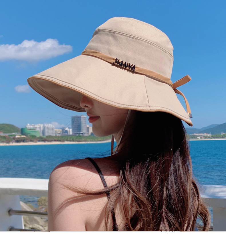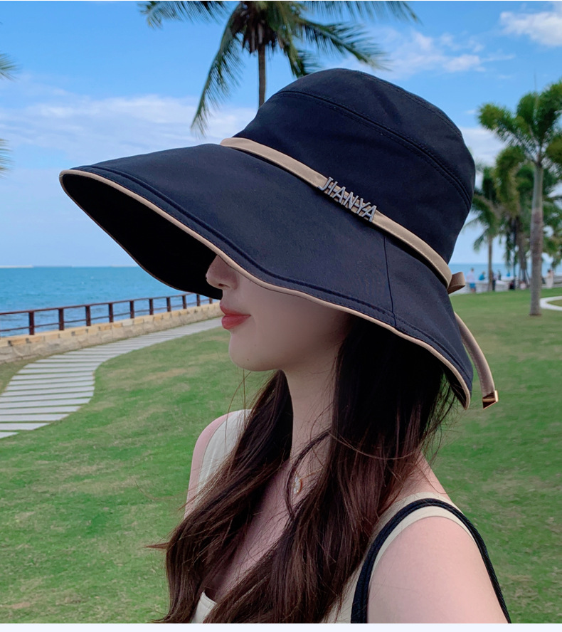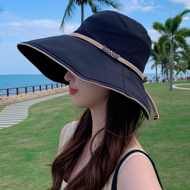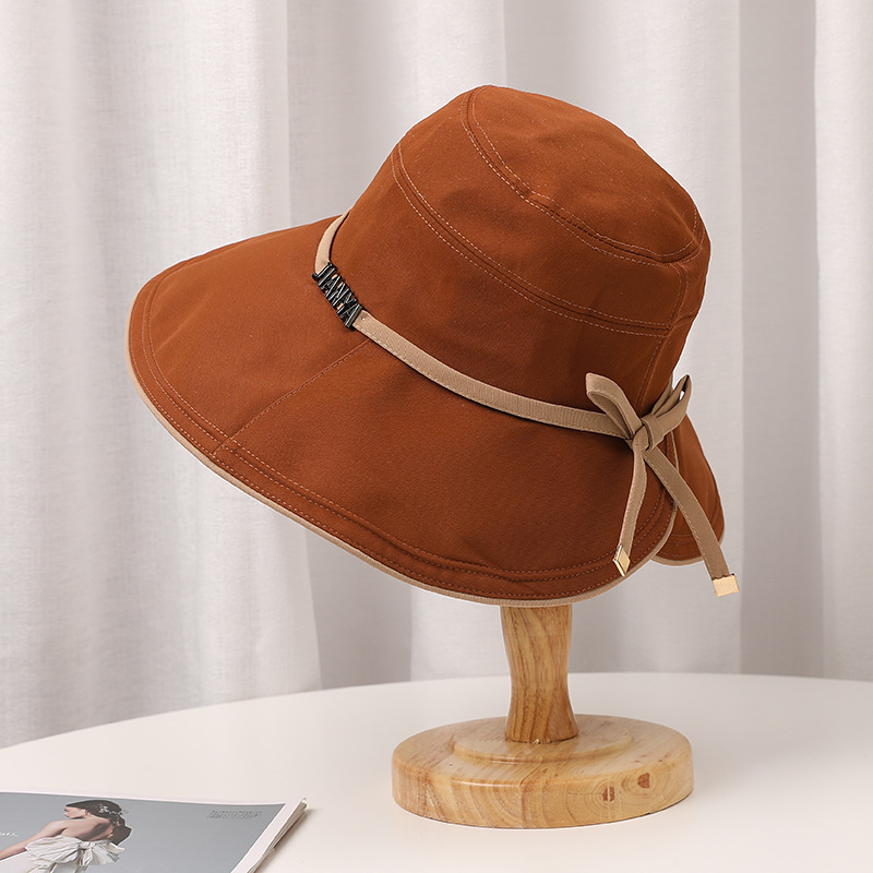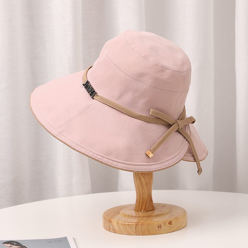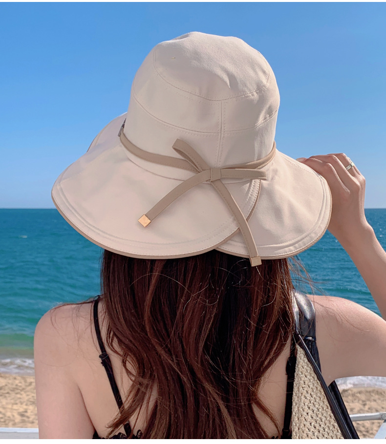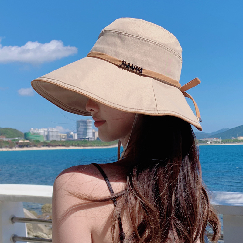 디자인 감각 크로스 테더 보우 부티크 천 모자 여자의 한국 여름 자외선 방지 큰 가장자리 차양 모자 패션