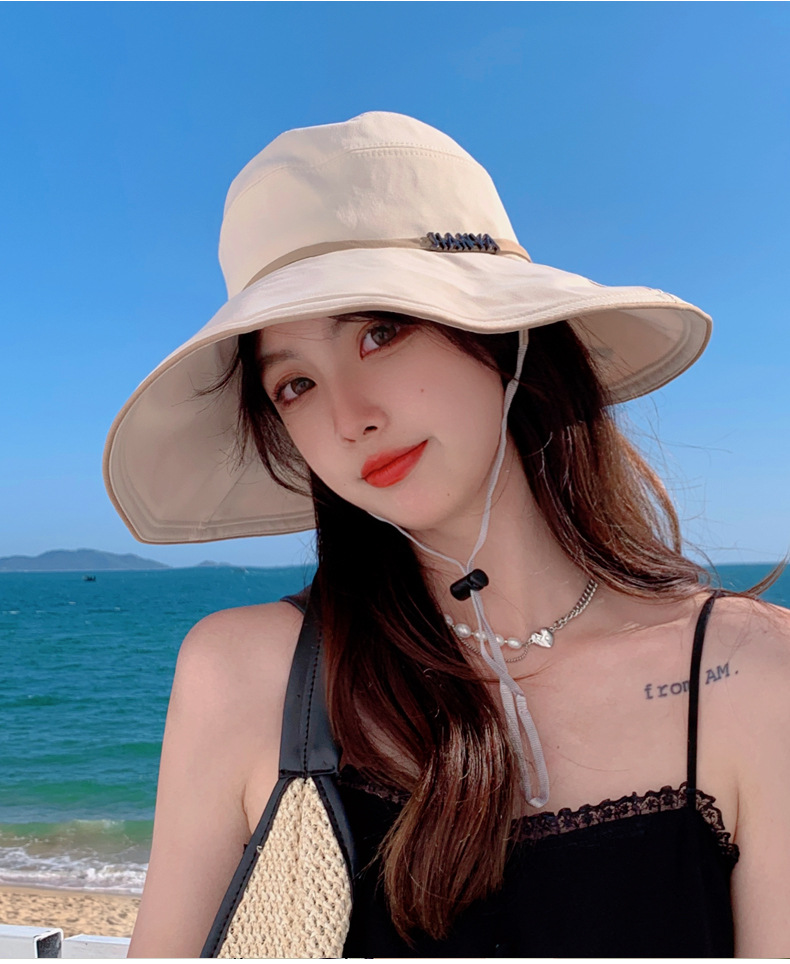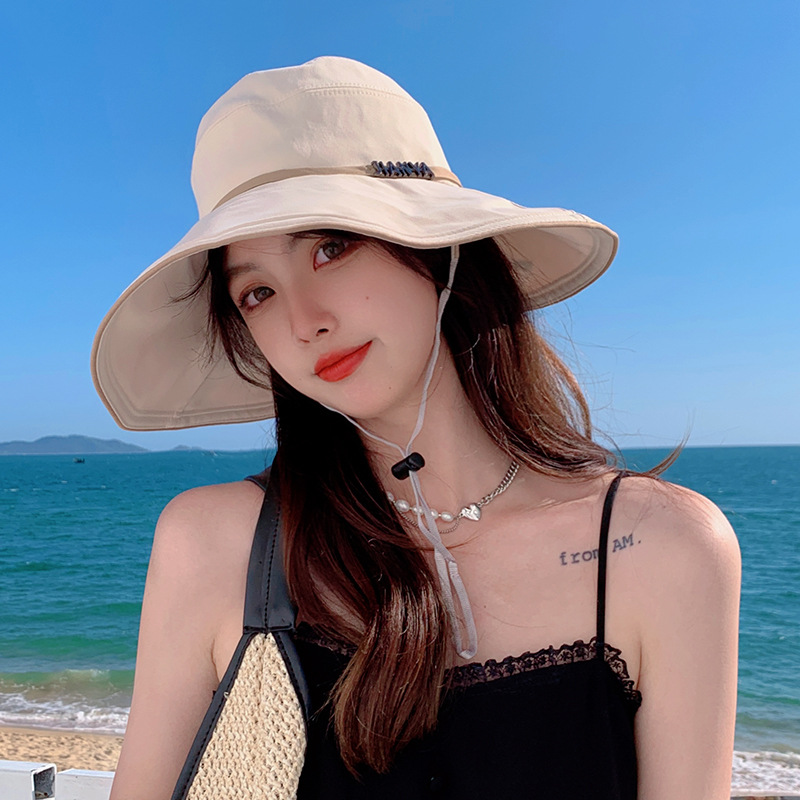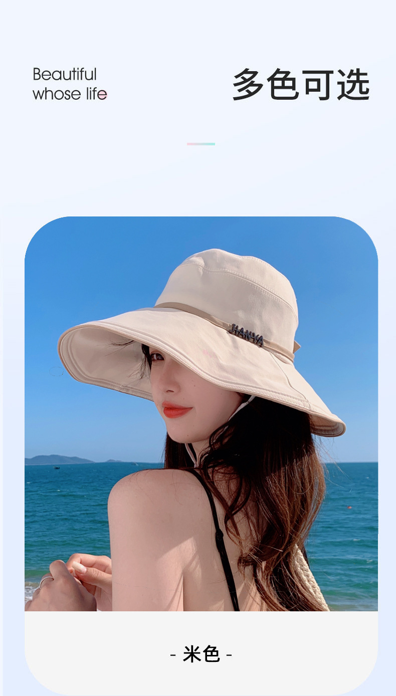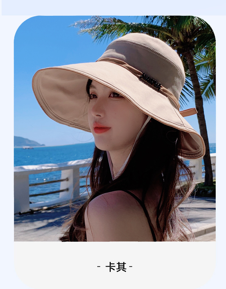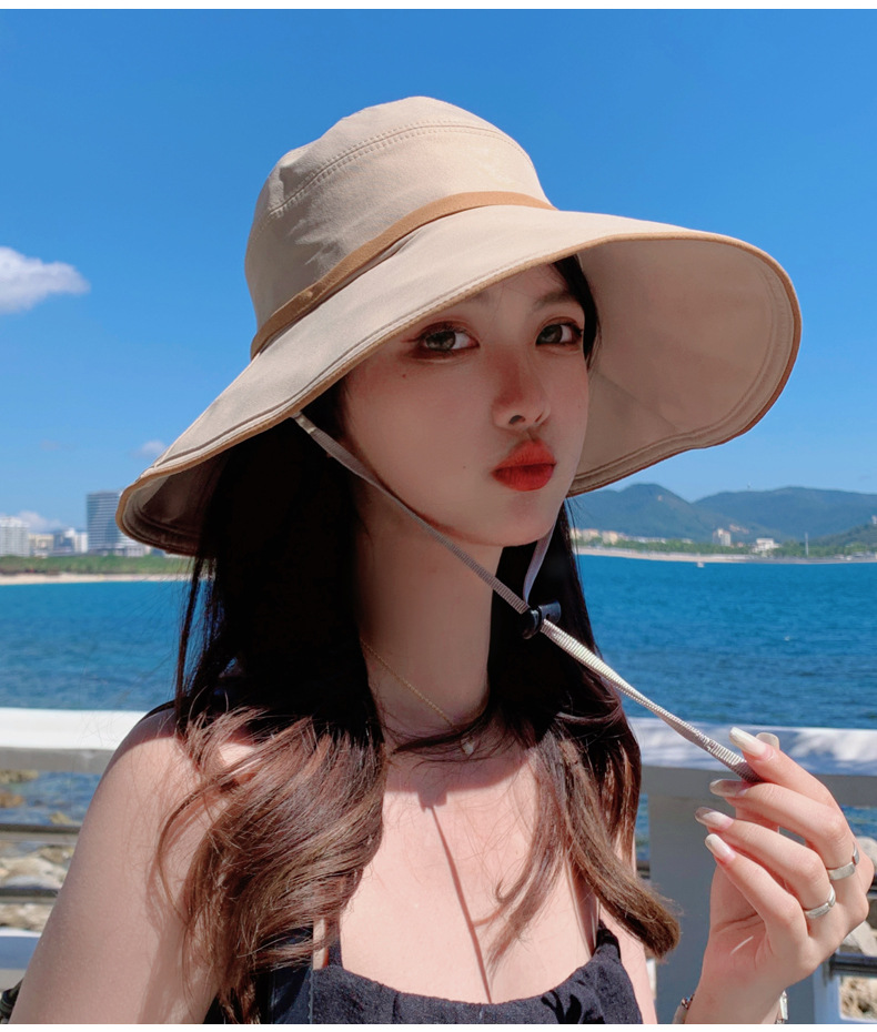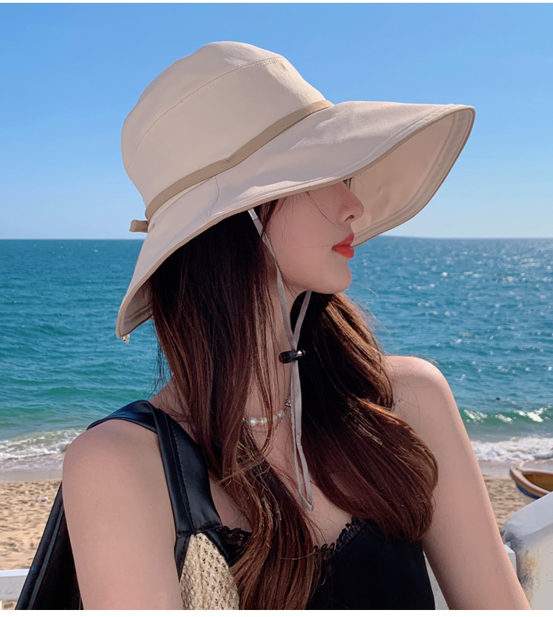 디자인 감각 크로스 테더 보우 부티크 천 모자 여자의 한국 여름 자외선 방지 큰 가장자리 차양 모자 패션