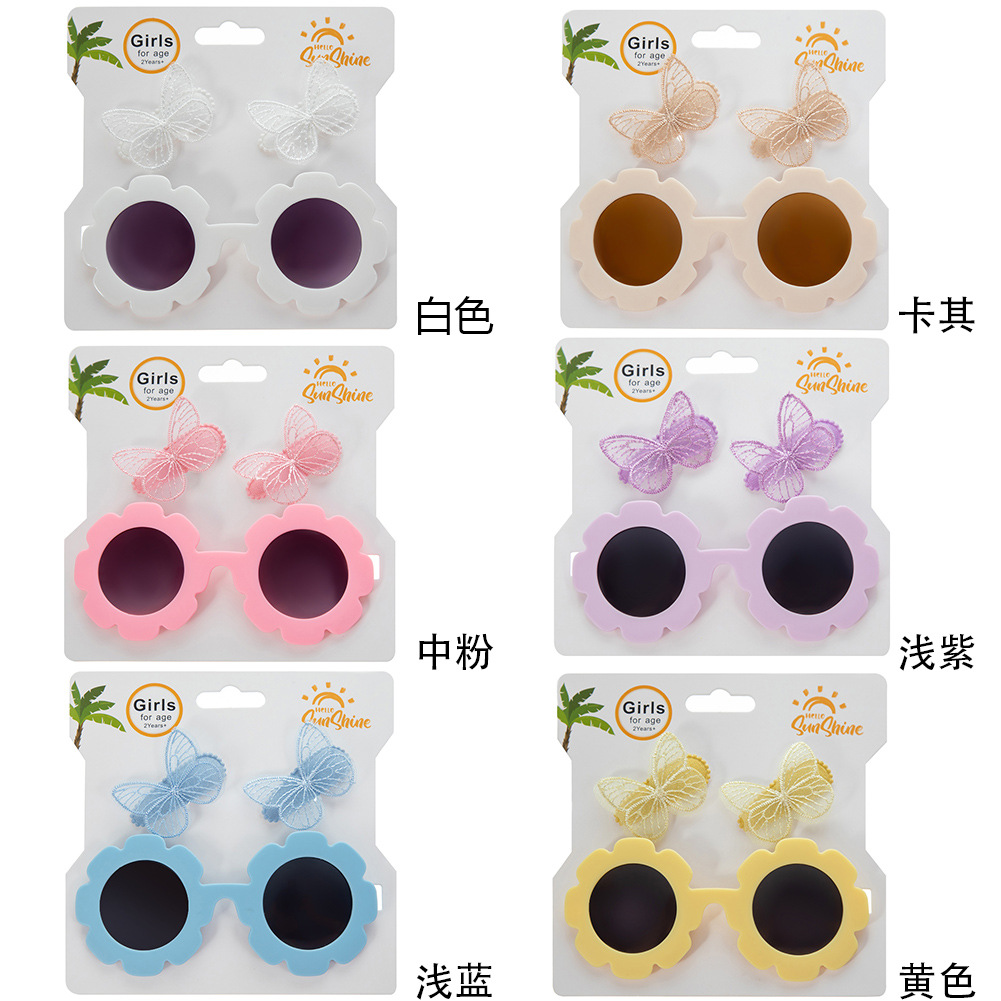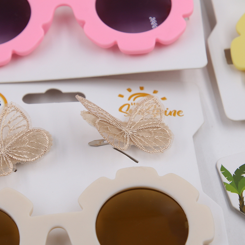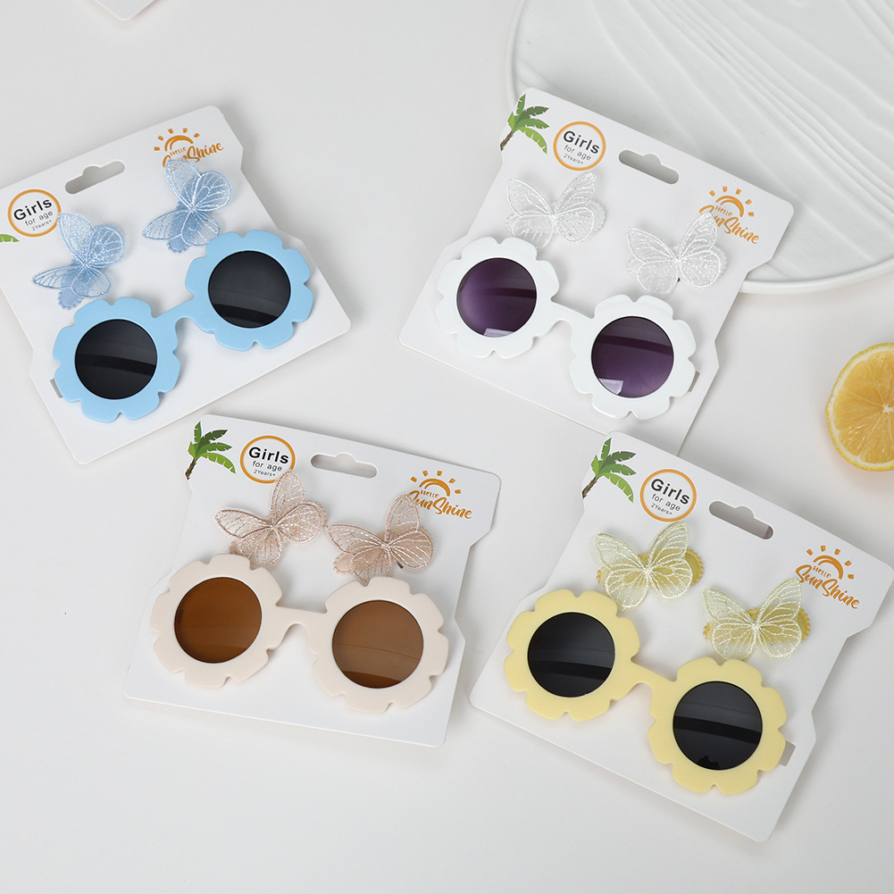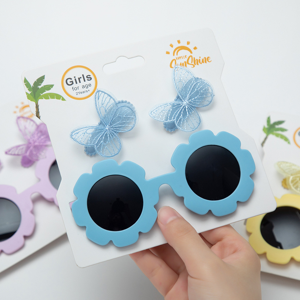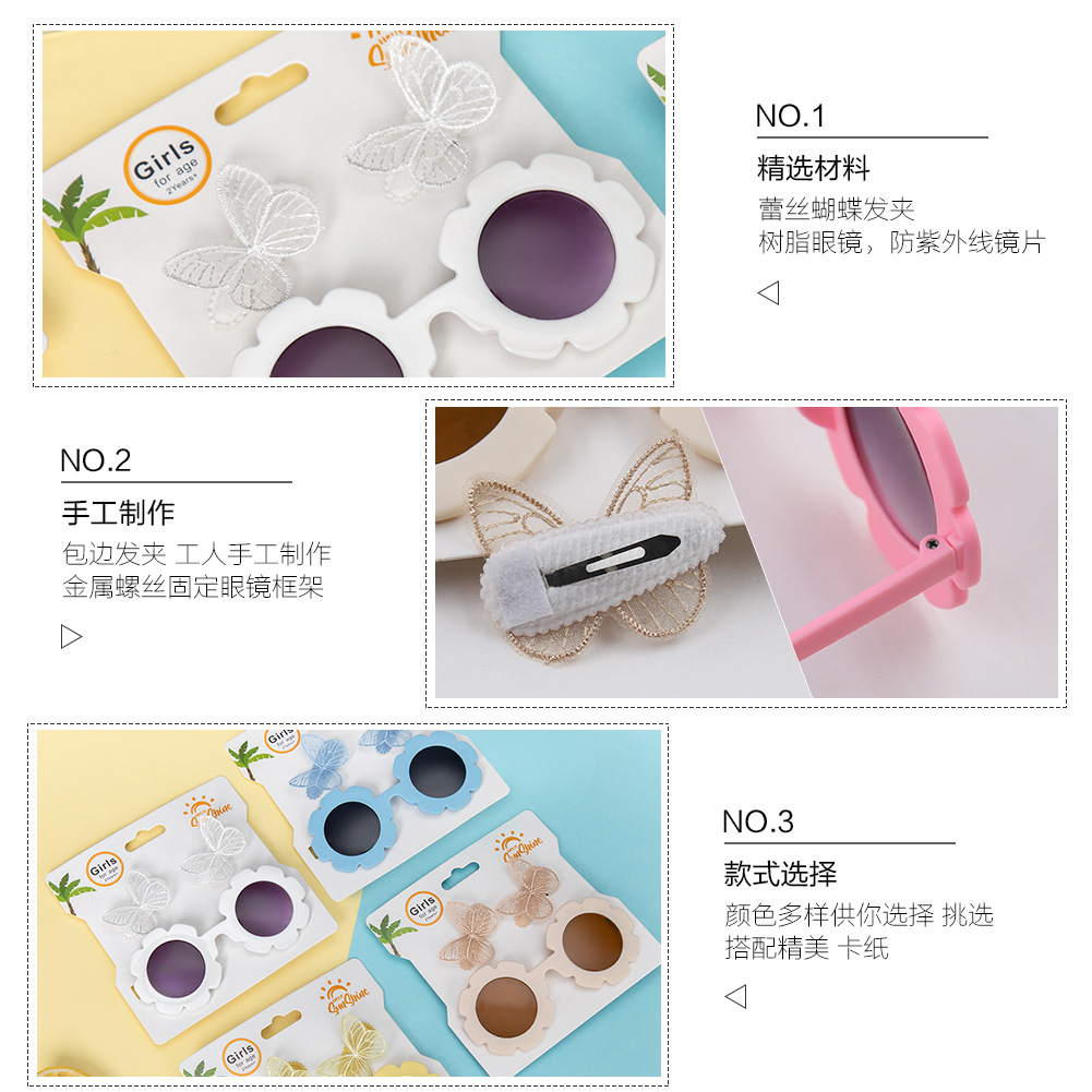 크로스보더 뉴 어린이 선글라스 자수 나비 베이비 드롭 클립 베이비 플라워 선글라스 헤어 액세서리 3 종 세트