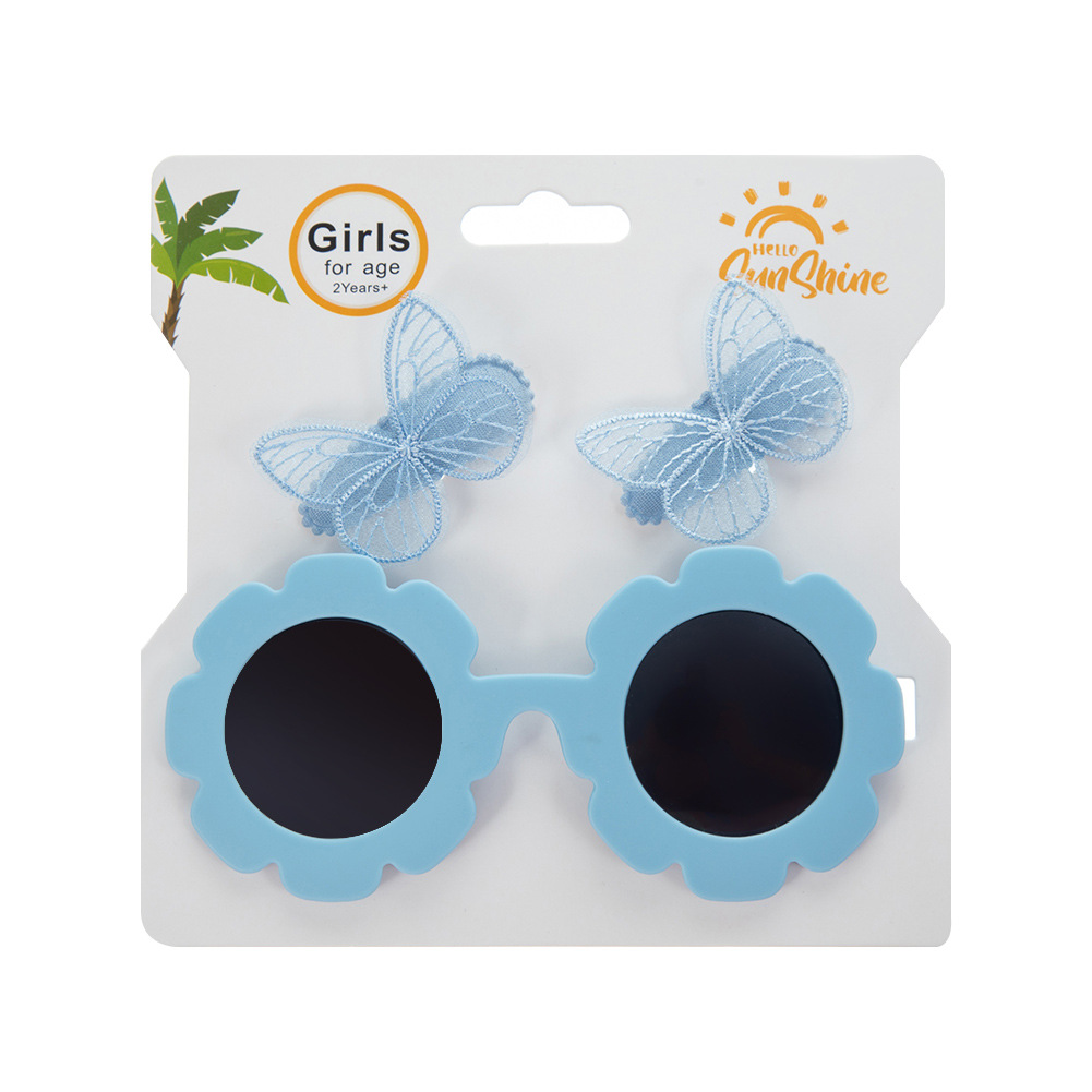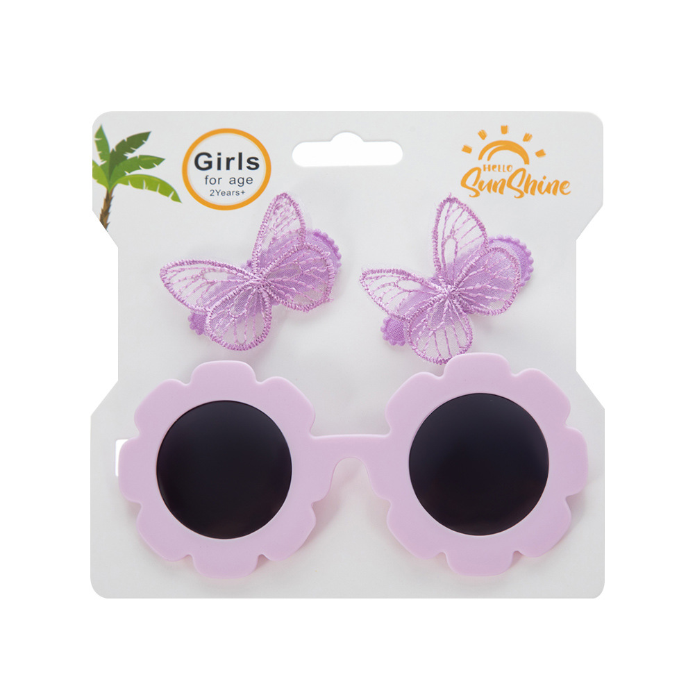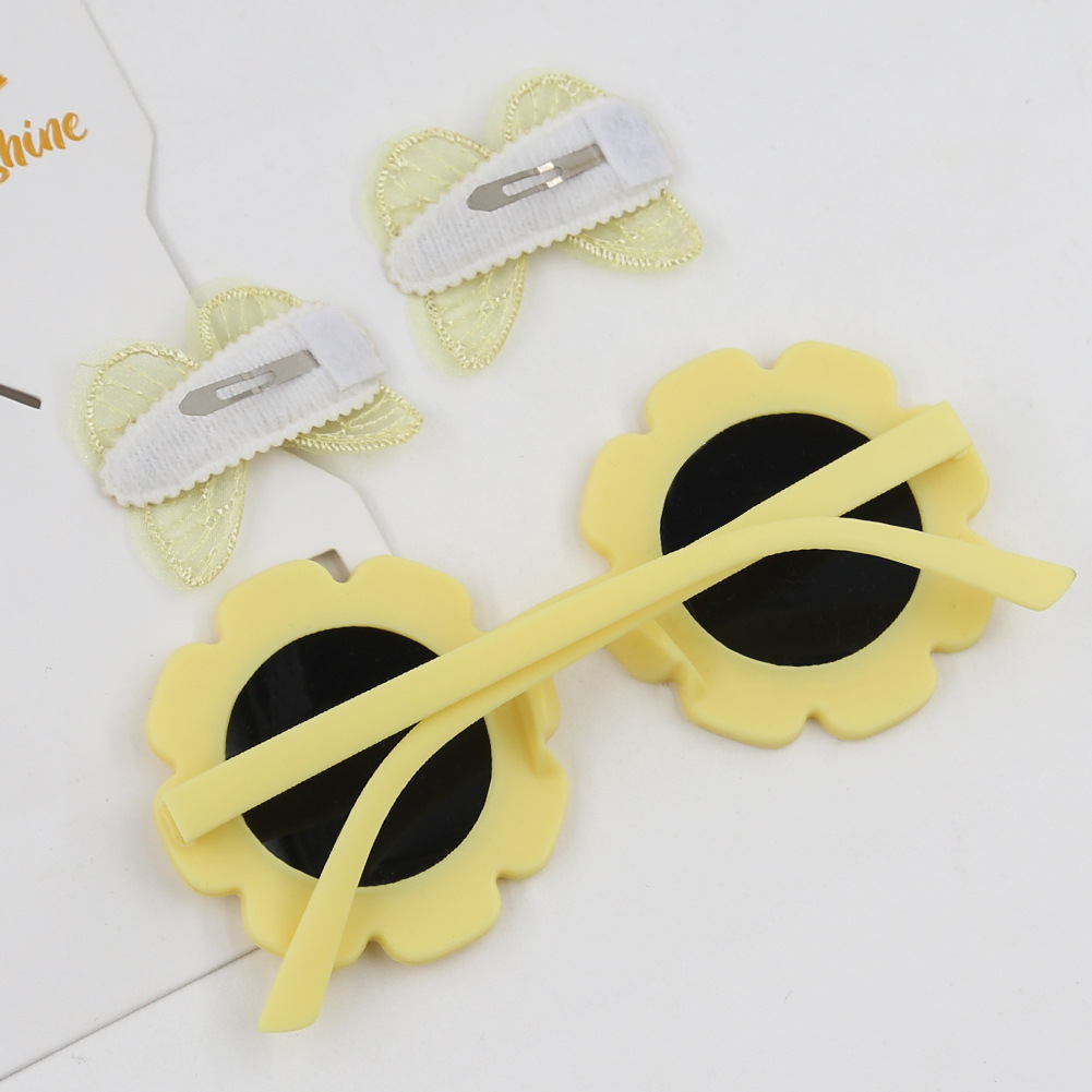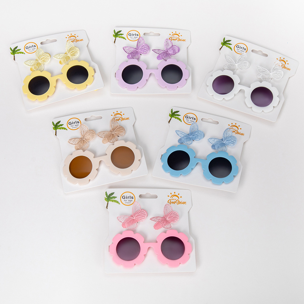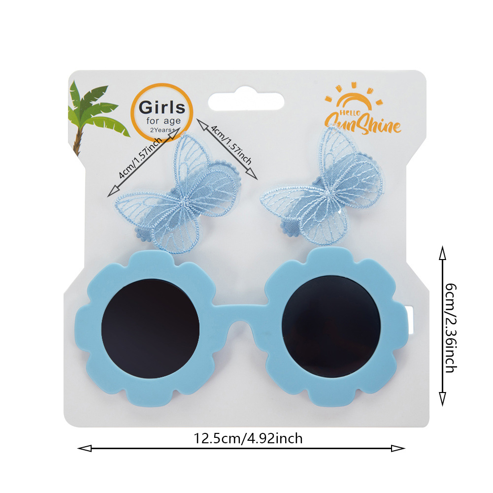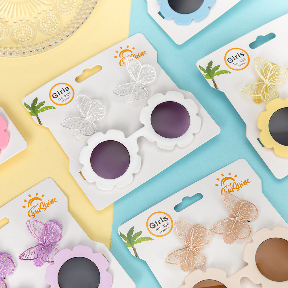 크로스보더 뉴 어린이 선글라스 자수 나비 베이비 드롭 클립 베이비 플라워 선글라스 헤어 액세서리 3 종 세트
