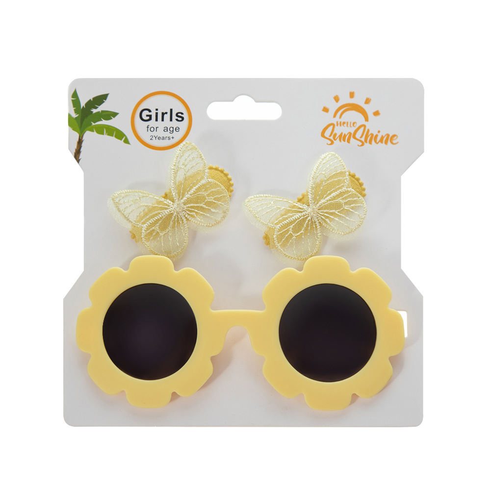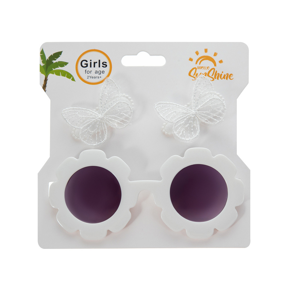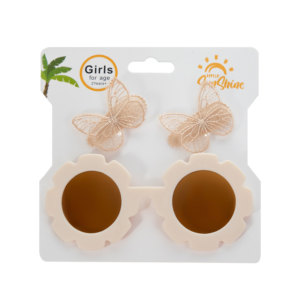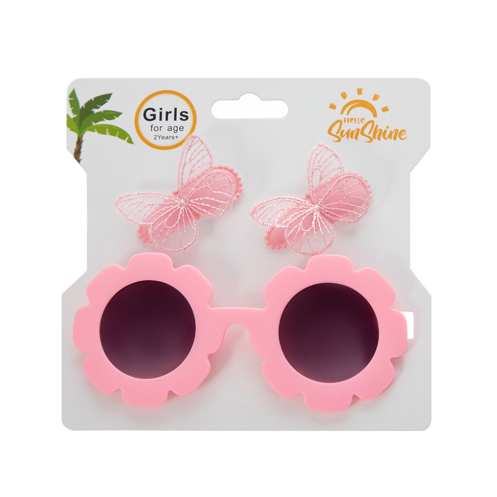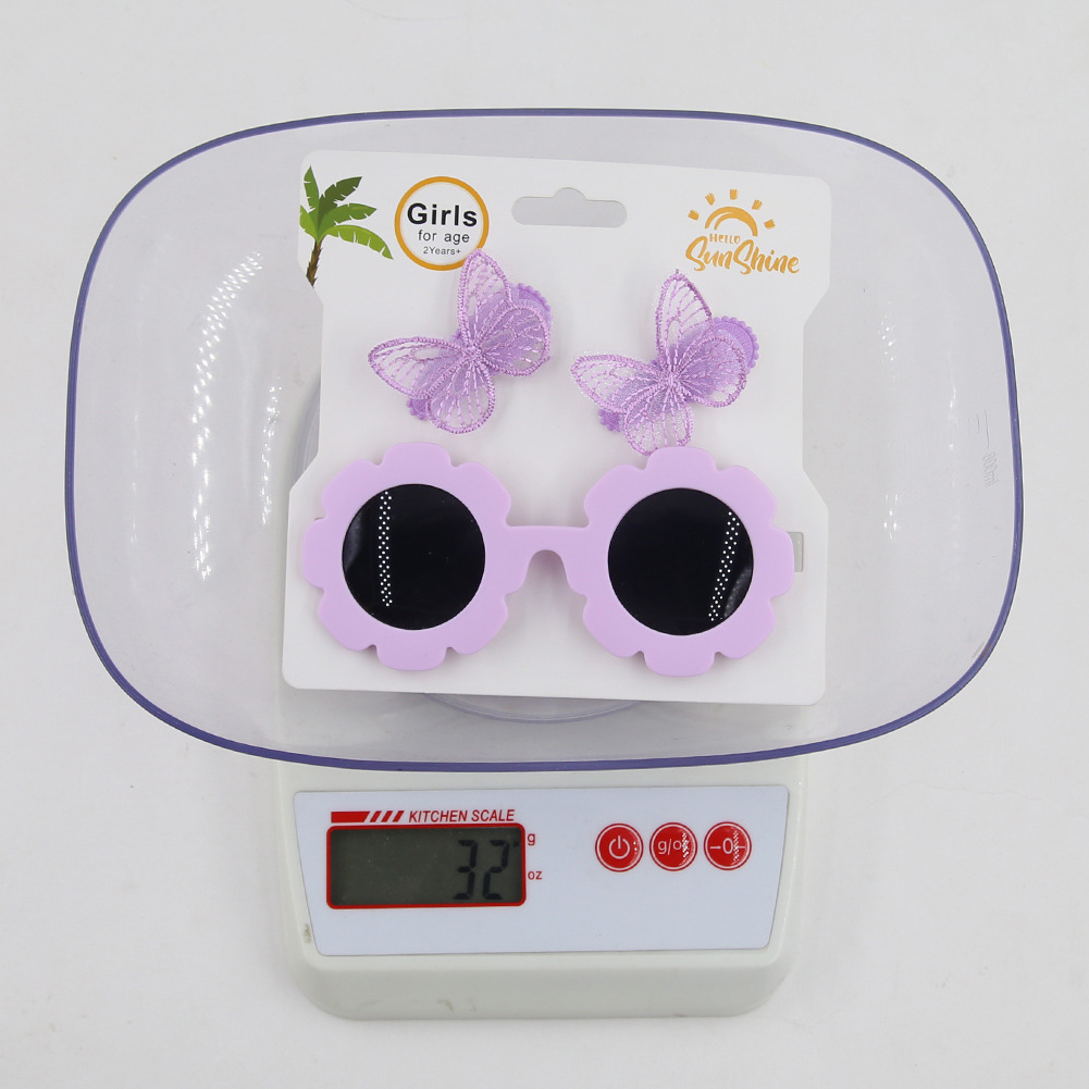 크로스보더 뉴 어린이 선글라스 자수 나비 베이비 드롭 클립 베이비 플라워 선글라스 헤어 액세서리 3 종 세트
