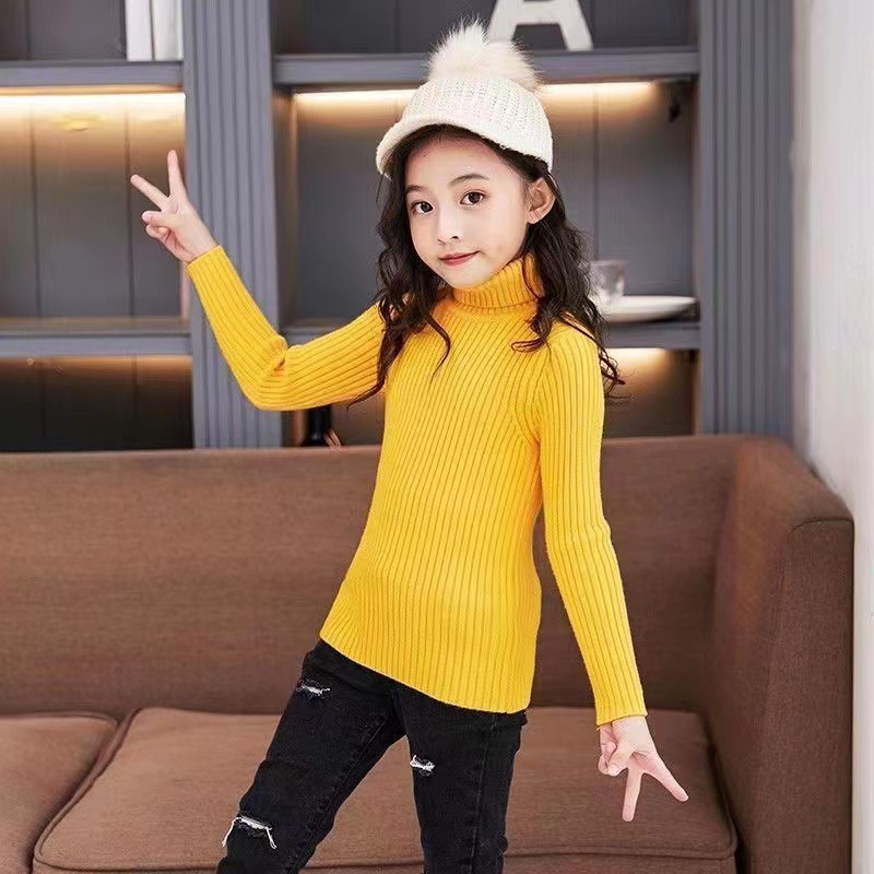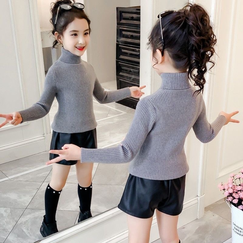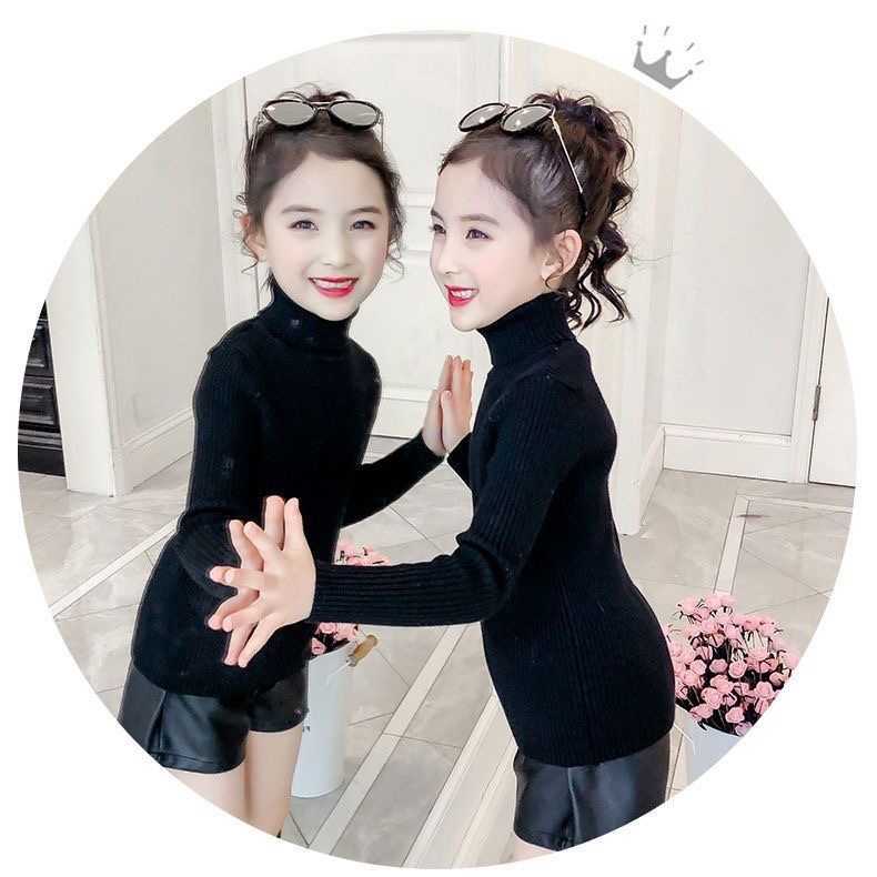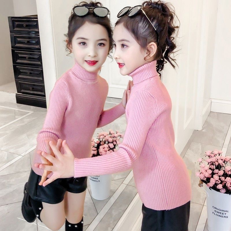 가을과 겨울 새로운 여아 스웨터 터틀넥 베이스 셔츠 어린이 니트 셔츠 인터넷 인기 외국 스타일 모든 경기 아동복 두 옷깃