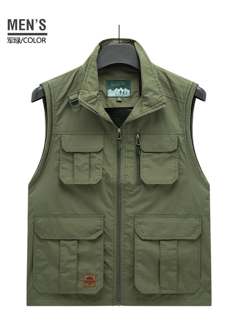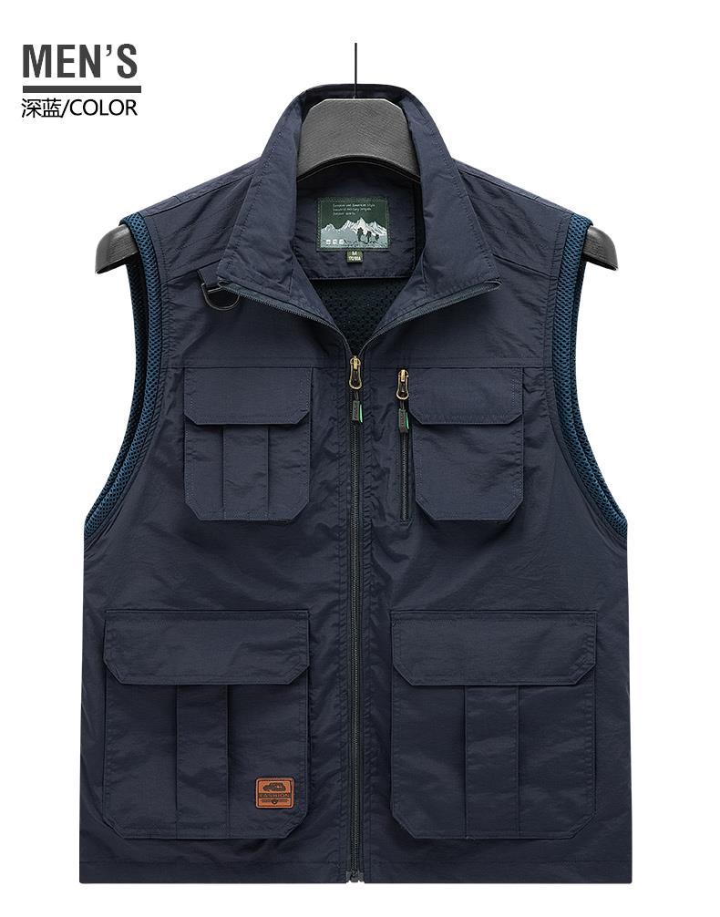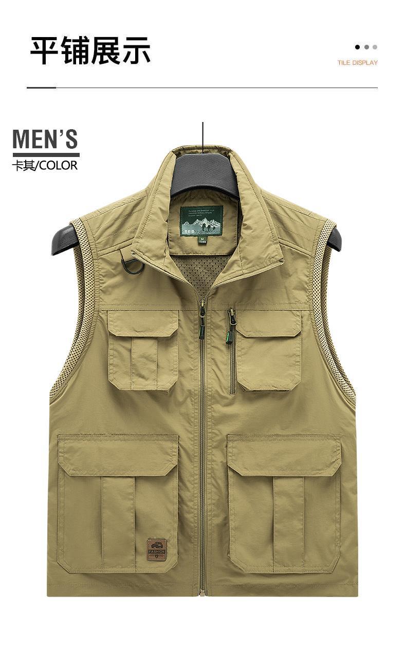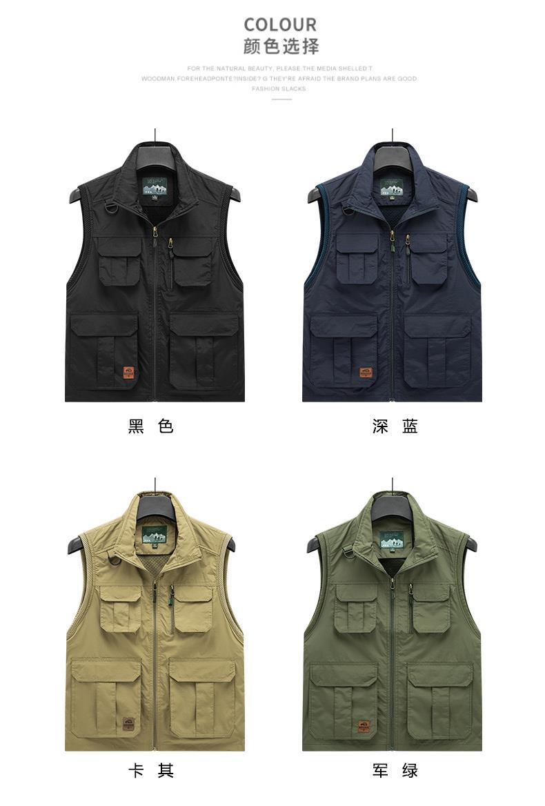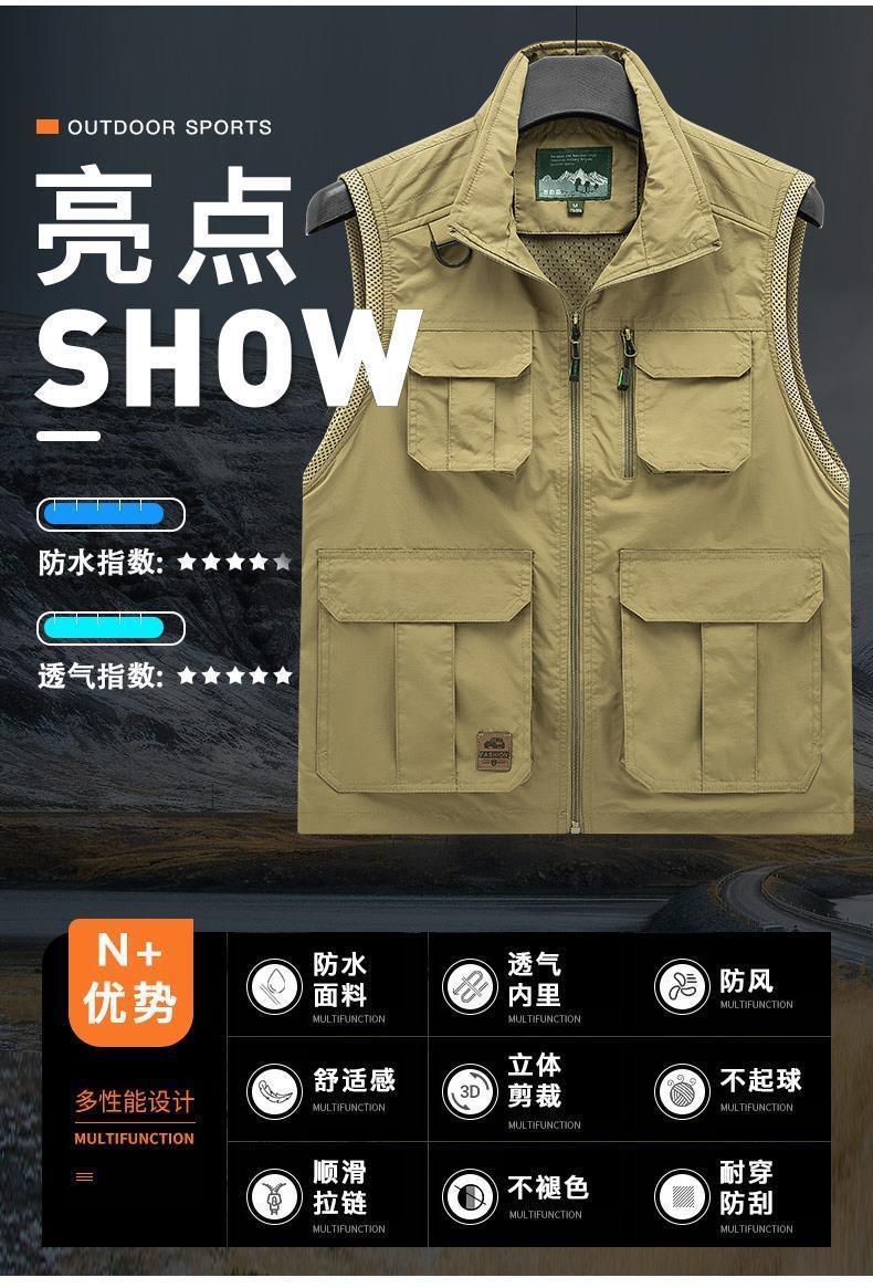 야외 속건 도구 조끼 남자의 멀티 포켓 낚시 등산 사진 조끼 느슨한 플러스 사이즈 조끼 재킷