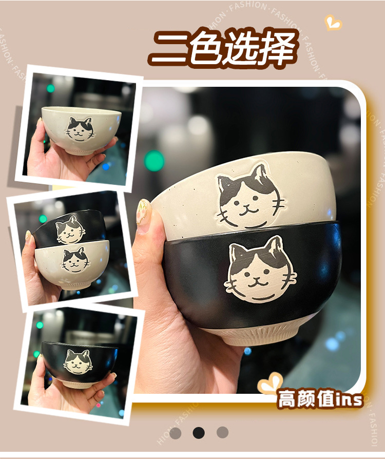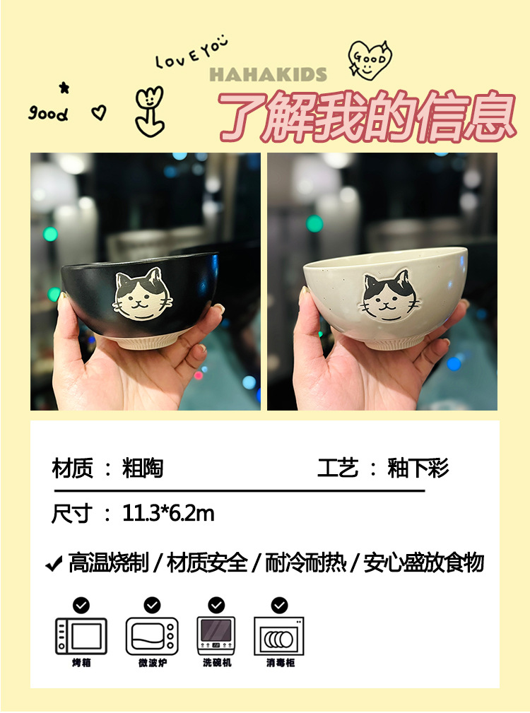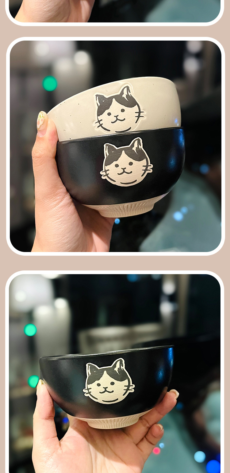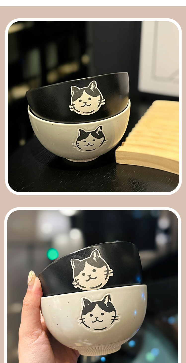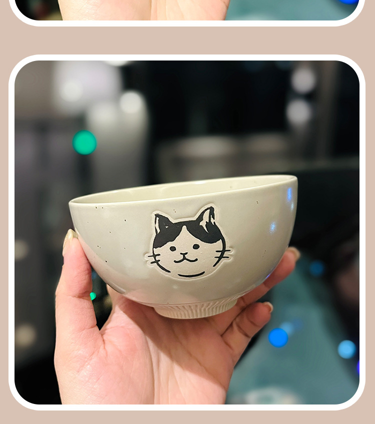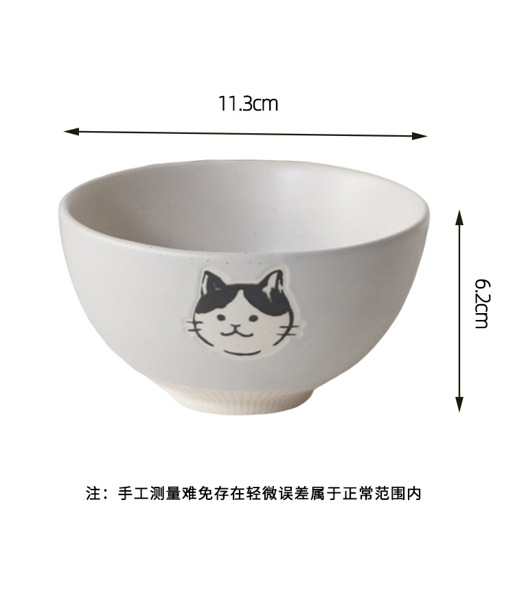 일본식 손으로 그린 고양이 4.5 인치 석기 밥 그릇 귀여운 만화 어린이 가정용 세라믹 언더 글레이즈 컬러 밥 그릇스토어 가기