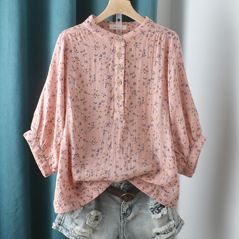 2026 봄 더블 레이어 면사 셔츠 꽃무늬 스탠드 칼라 베이비 면사 루즈핏 대형 사이즈 일본 및 한국 스타일 셔츠 도매