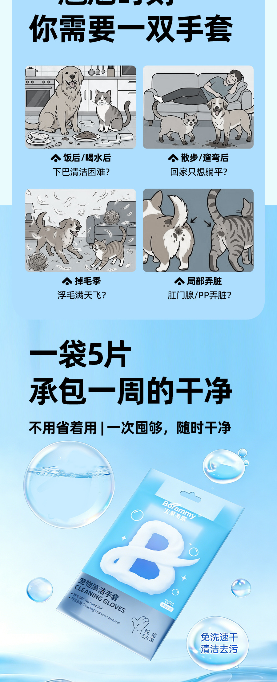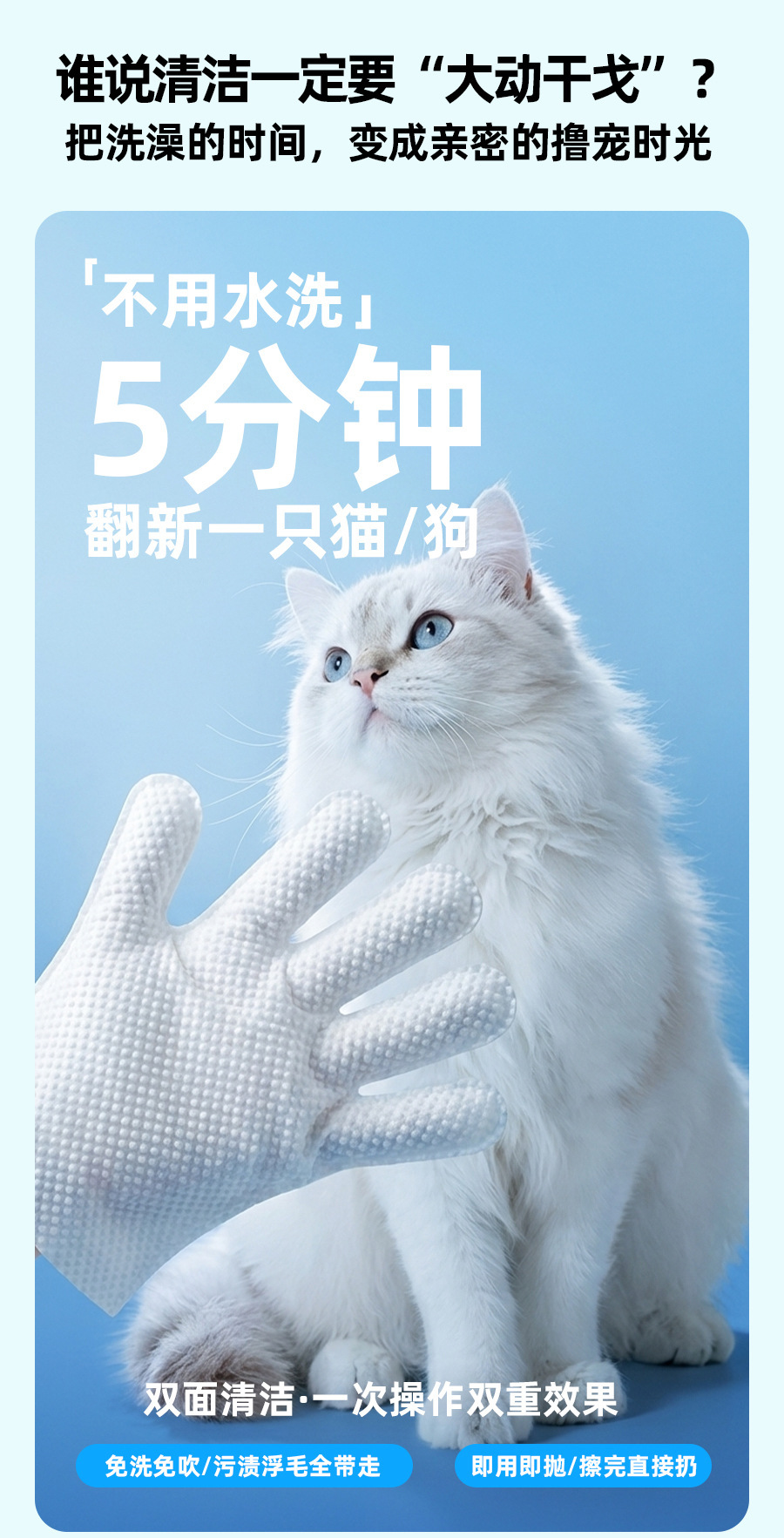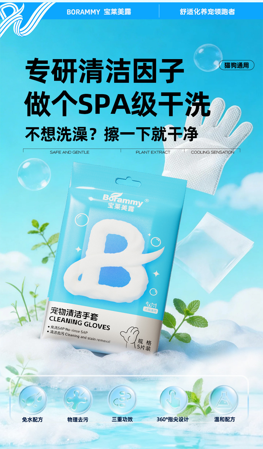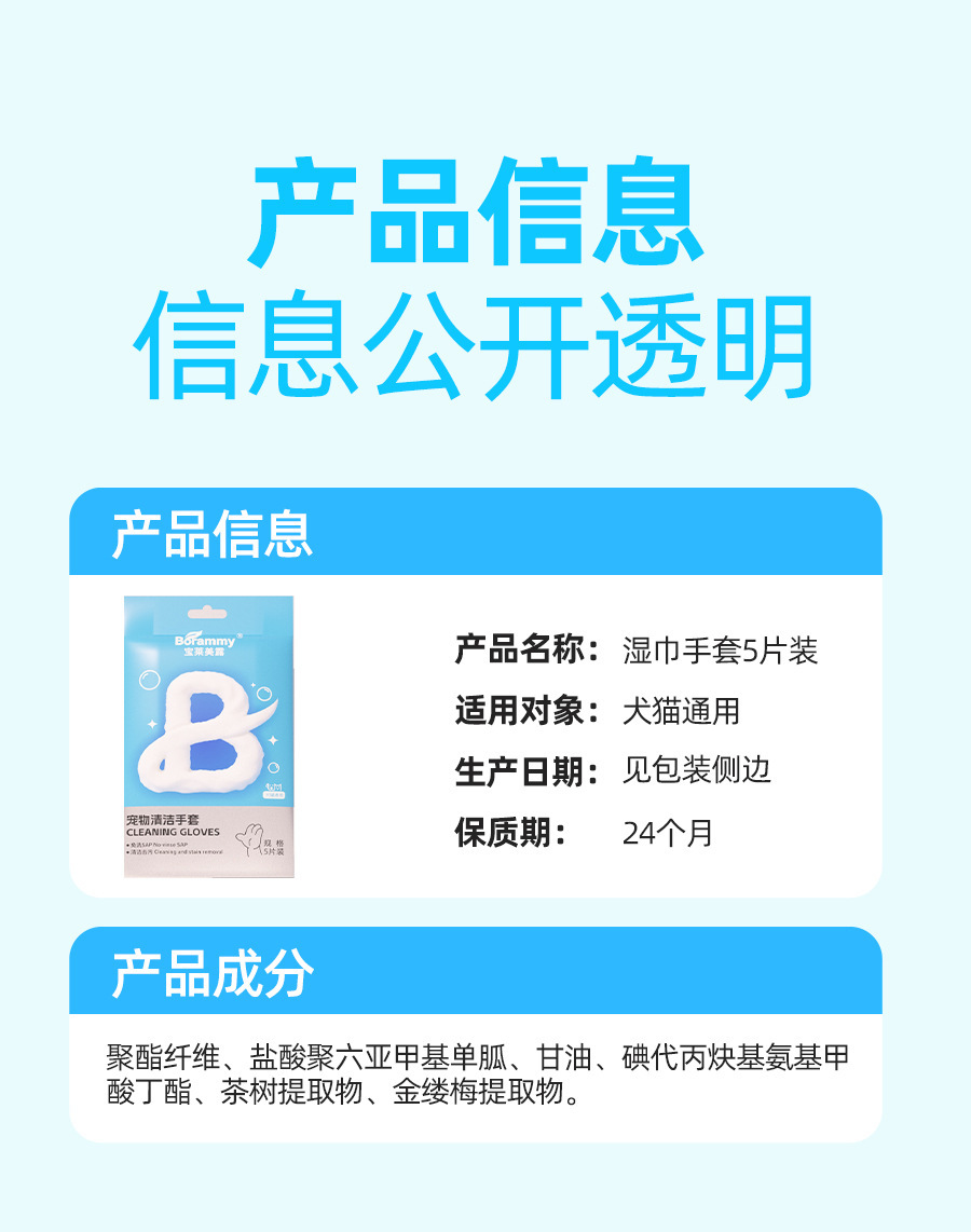 바오라이멜루 애완동물 청소 장갑 5개입 스파 고양이 물티슈 건식 세척 강아지 고양이용 히알루론산스토어 가기