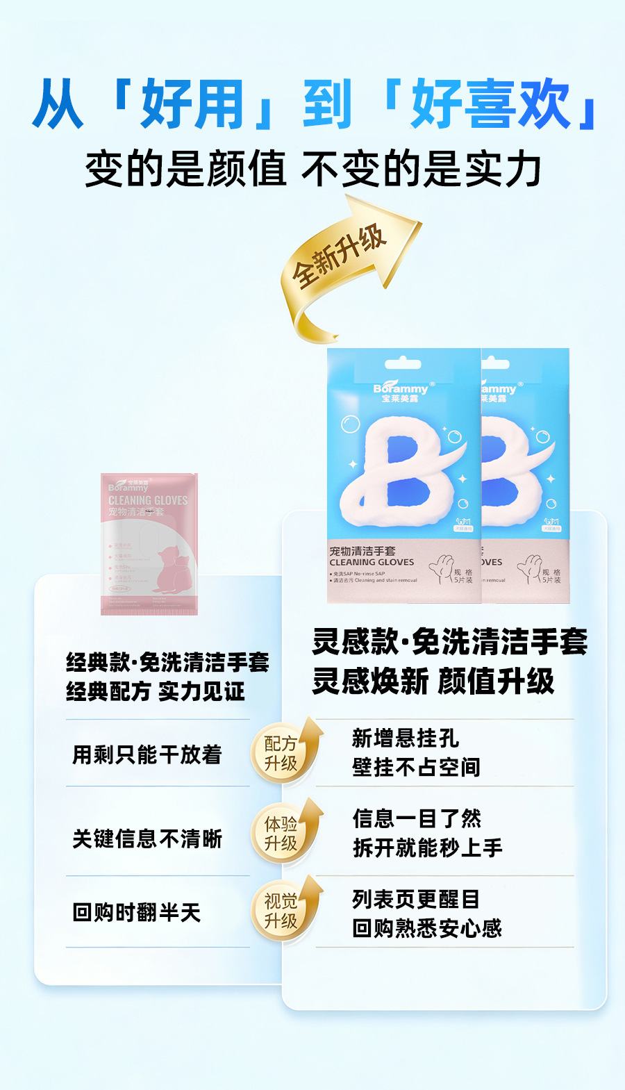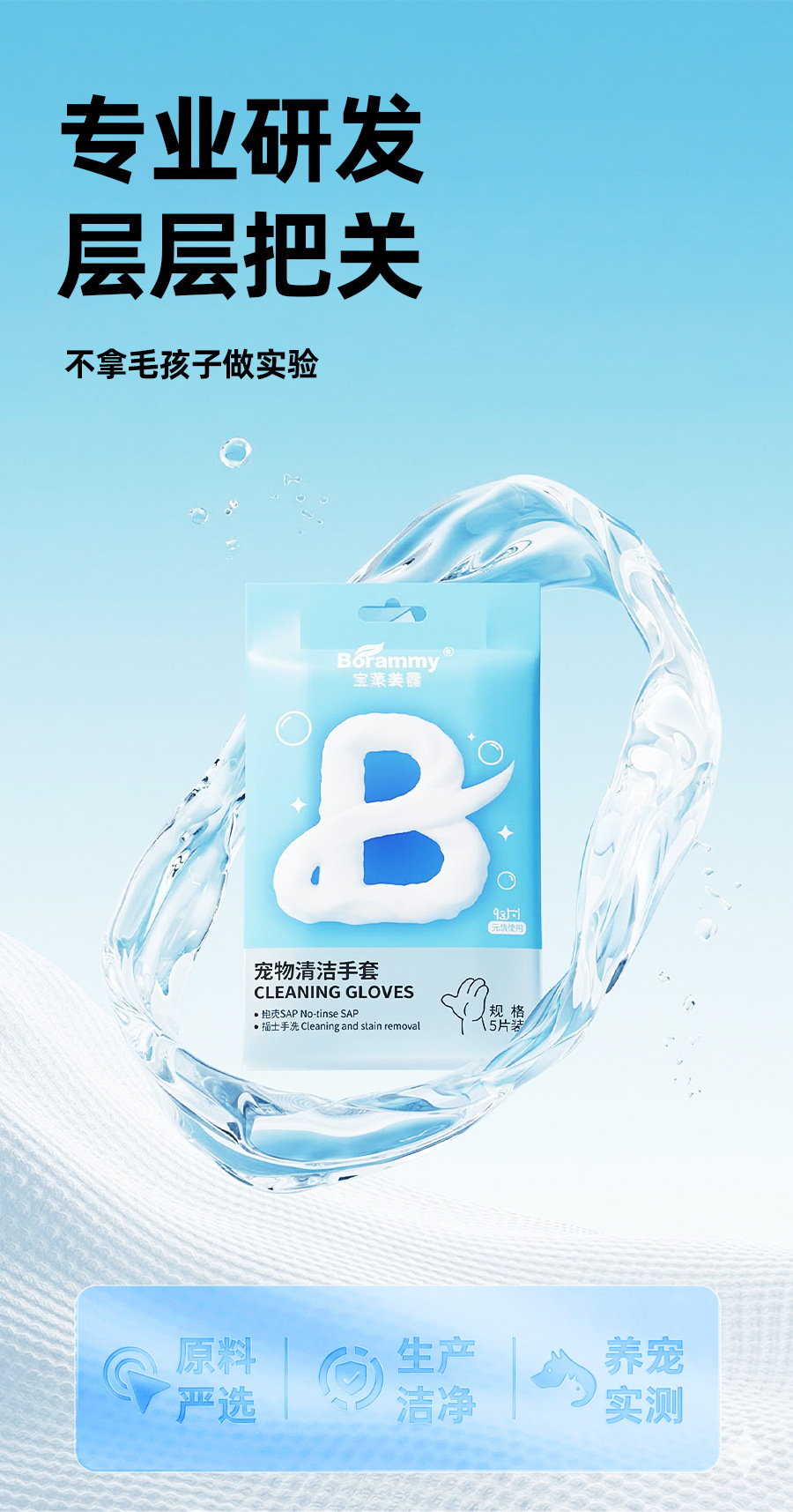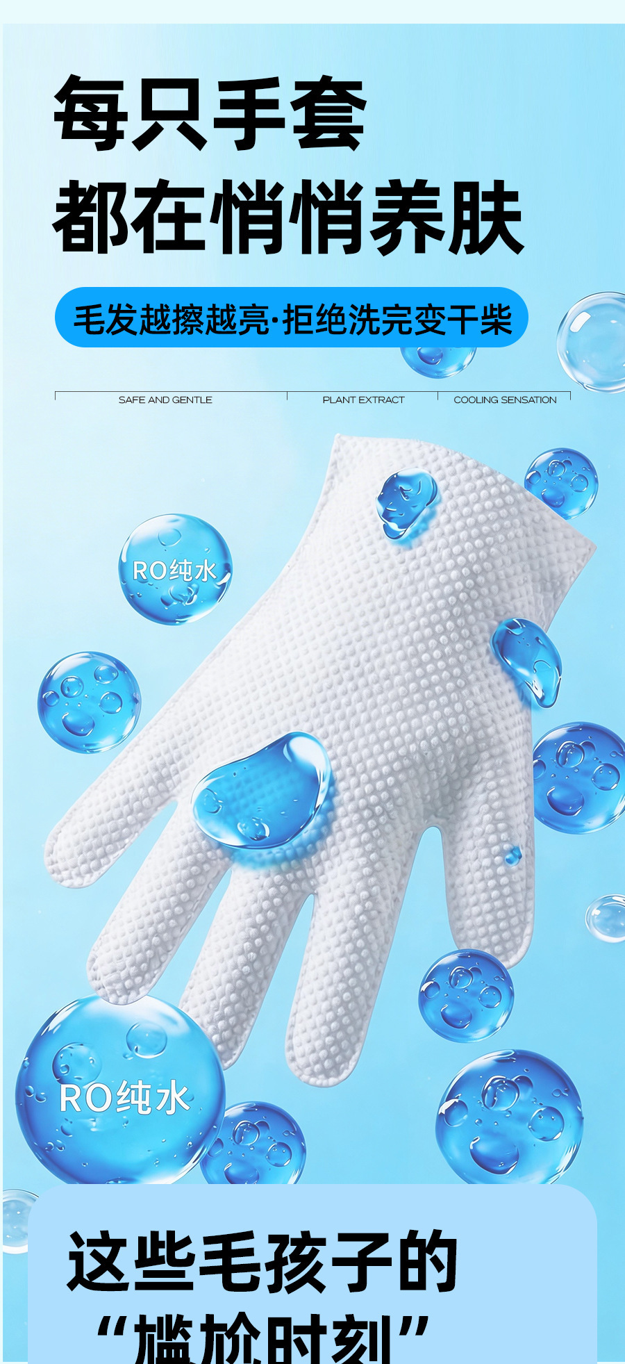 바오라이멜루 애완동물 청소 장갑 5개입 스파 고양이 물티슈 건식 세척 강아지 고양이용 히알루론산스토어 가기