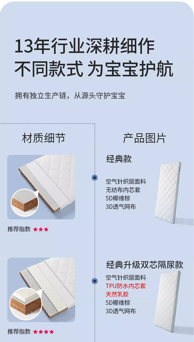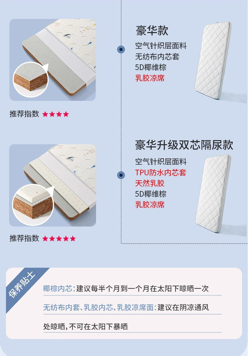 주문 유치원 매트리스 어린이 신생아 아기 접합 침대 천연 코코넛 에멀젼 포름 알데히드 프리 매트리스스토어 가기