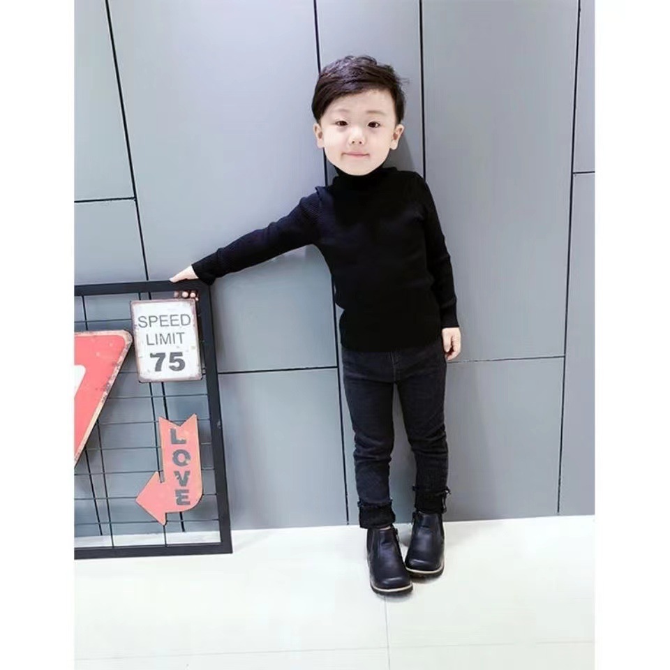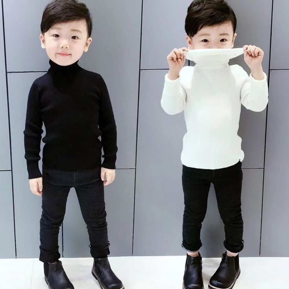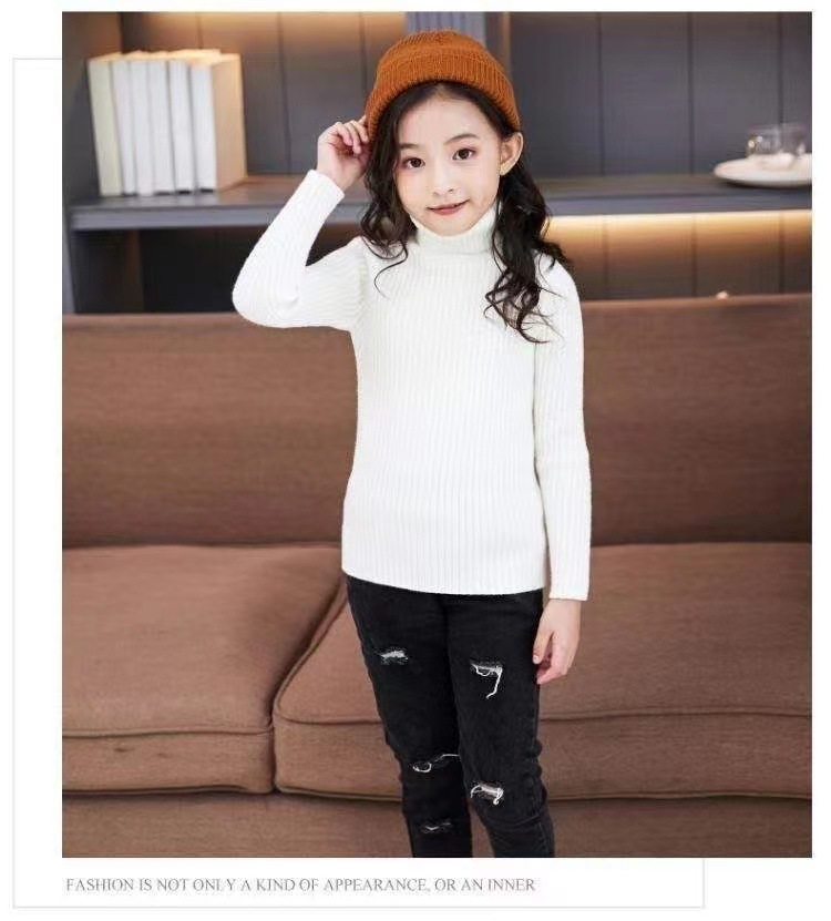 소년과 소녀 바닥 셔츠 가을과 겨울 새로운 하이 칼라 니트 풀오버 단색 어린이 바닥 스웨터 외국 스타일 모든 매치스토어 가기