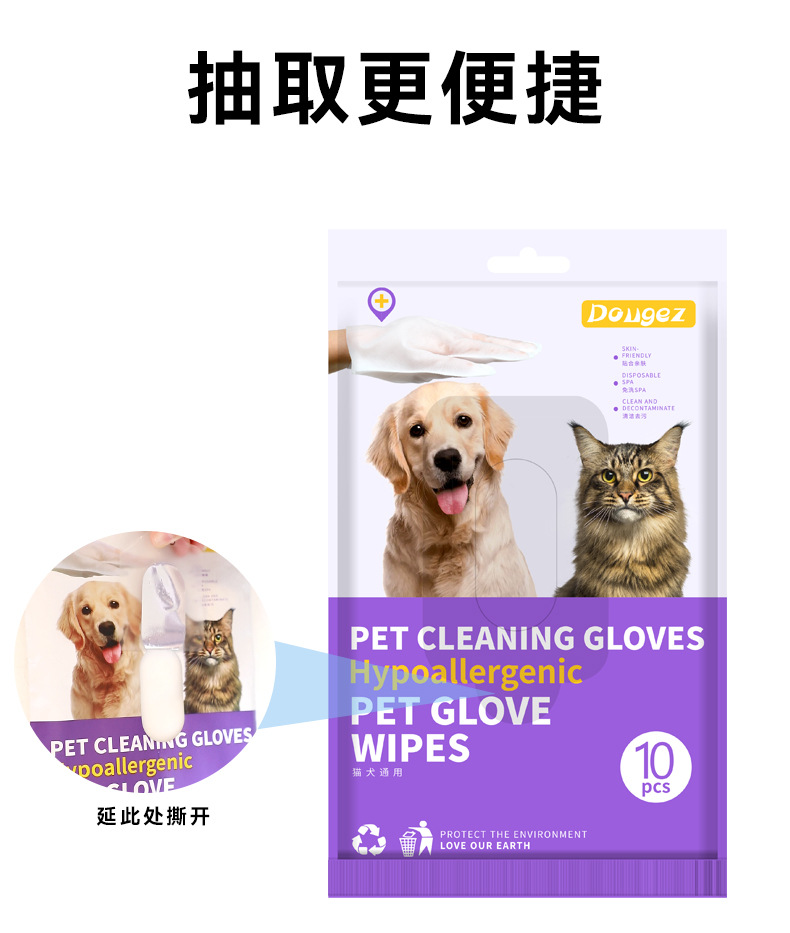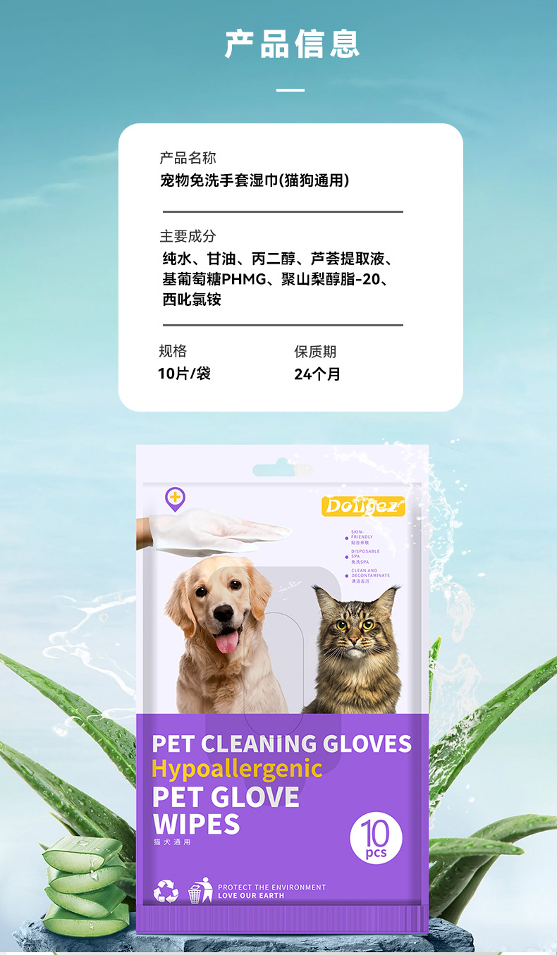 애완동물 워시 프리 장갑 고양이 개 목욕 애완동물 물티슈 개 드라이 클리닝 소독 종이 탈취제 애완동물 용품 10 개