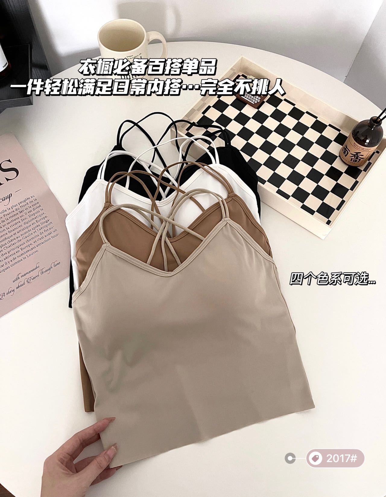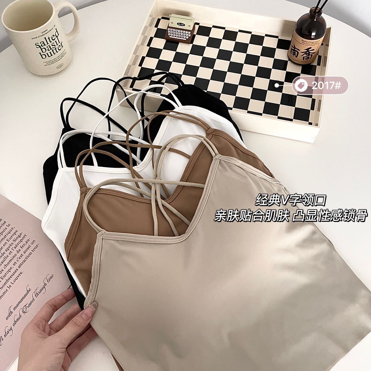 고정 가슴 패드 아이스 실크 슬링 아름다운 등이없는 끈이없는 슬링 조끼 겉옷 내부 크로스베이스 탑 여름