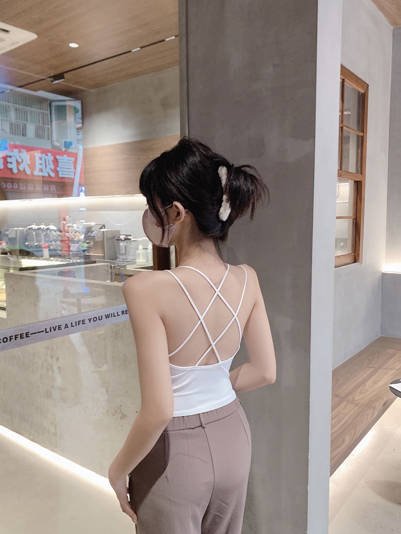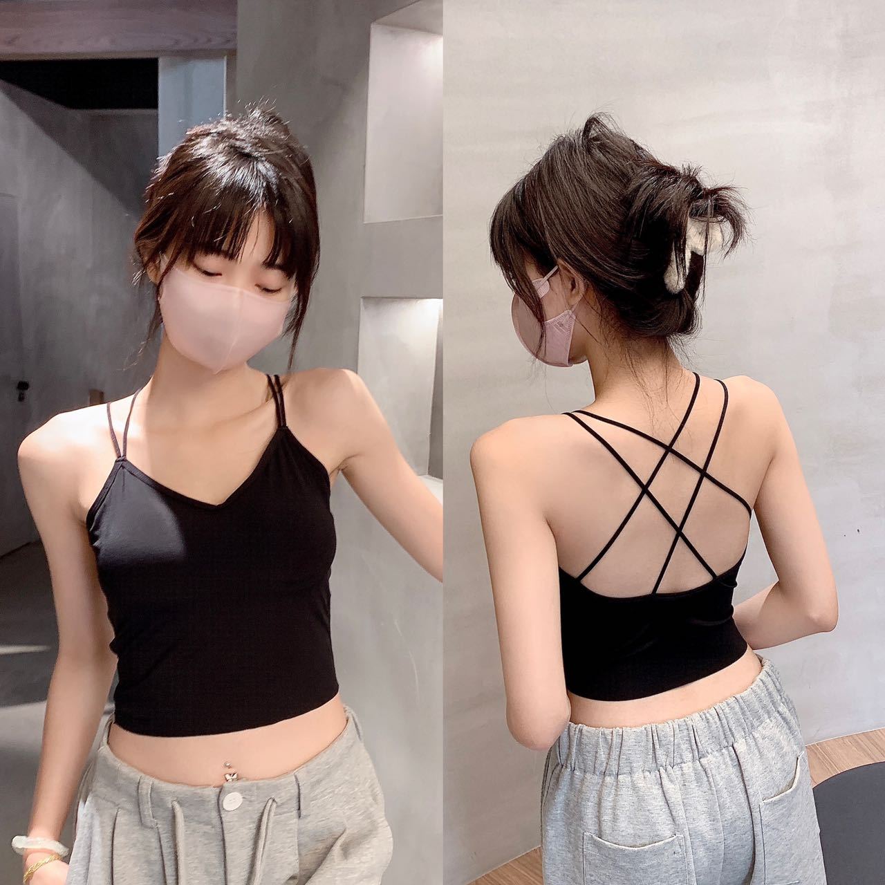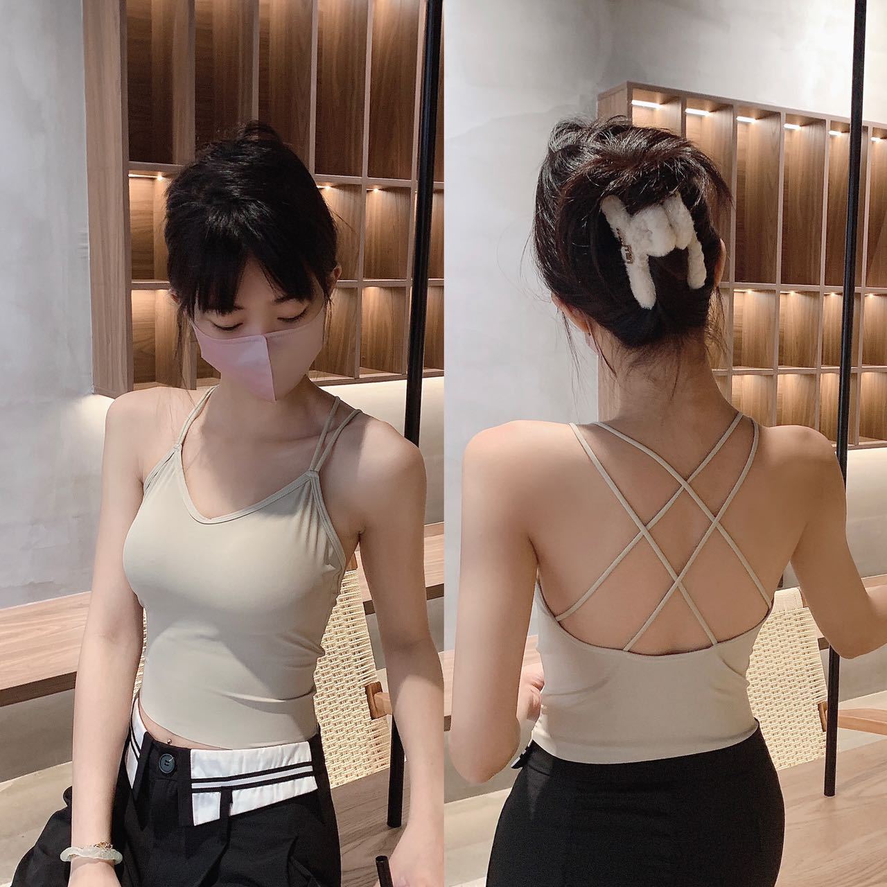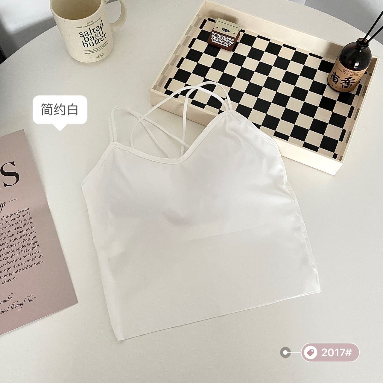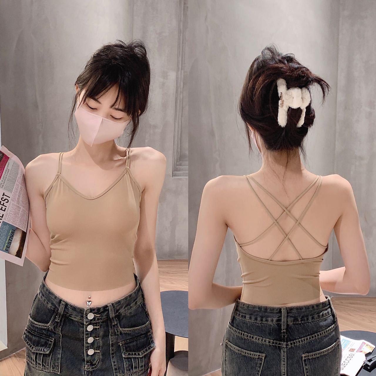 고정 가슴 패드 아이스 실크 슬링 아름다운 등이없는 끈이없는 슬링 조끼 겉옷 내부 크로스베이스 탑 여름스토어 가기
