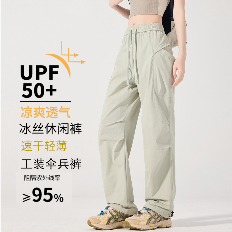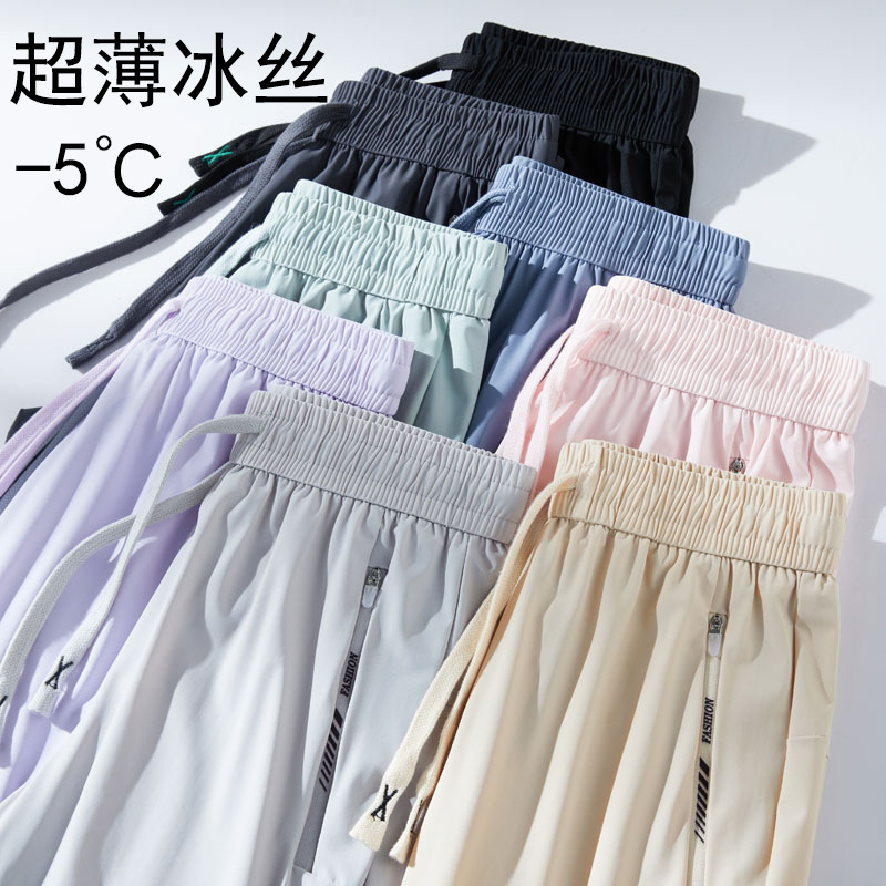 오리지널 원사 선 스크린 바지 여름 빠른 건조 아이스 실크 바지 남녀 슬리밍 얼음에 민감한 경량 바지 스포츠 캐주얼 바지