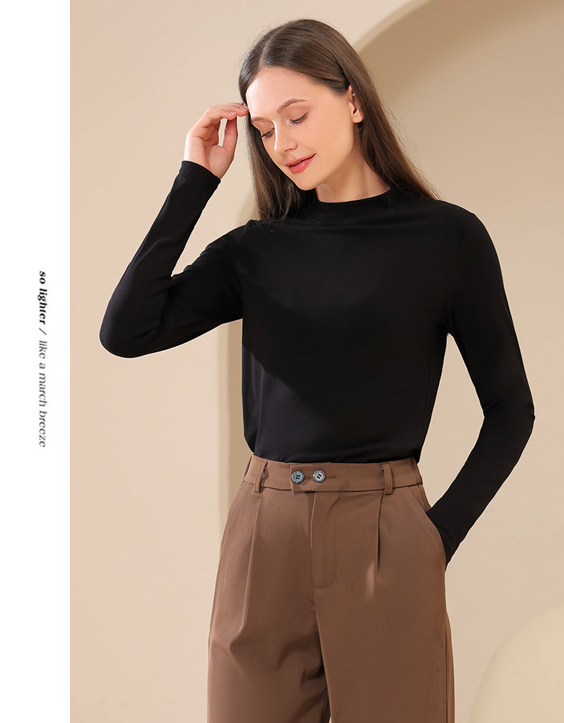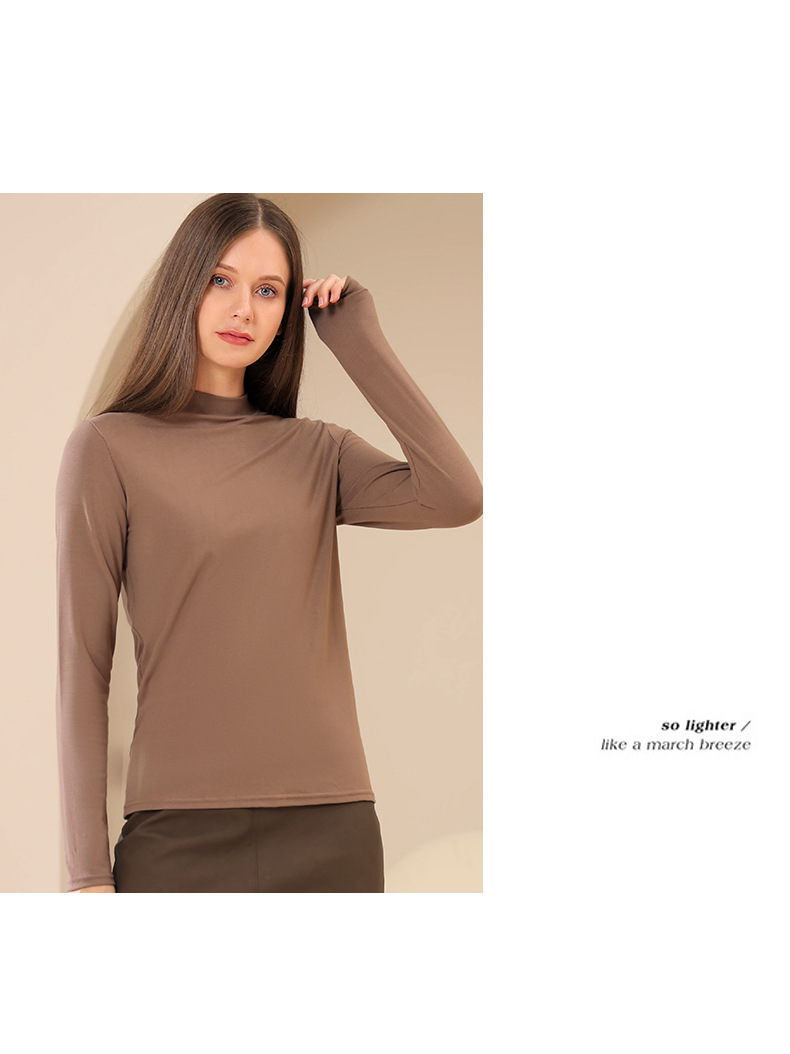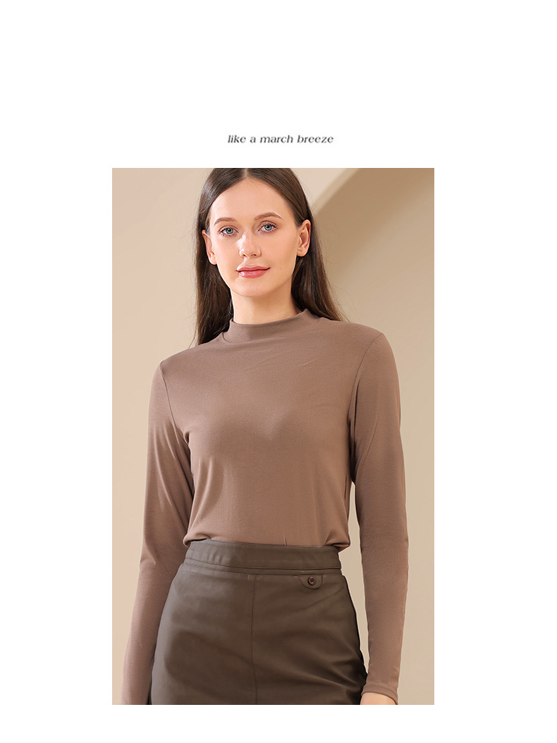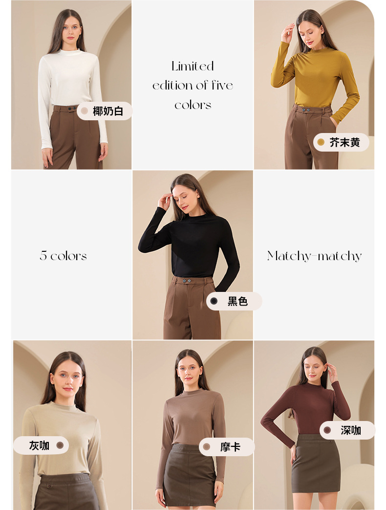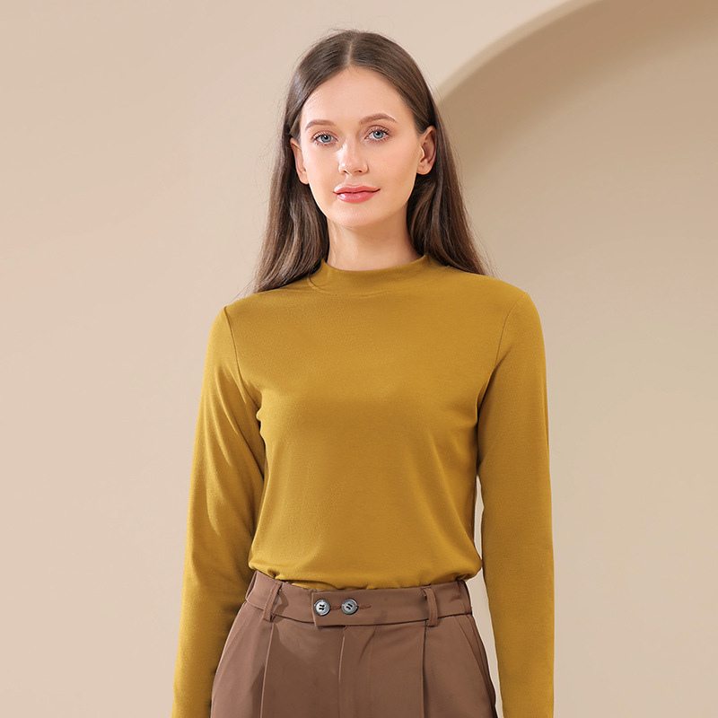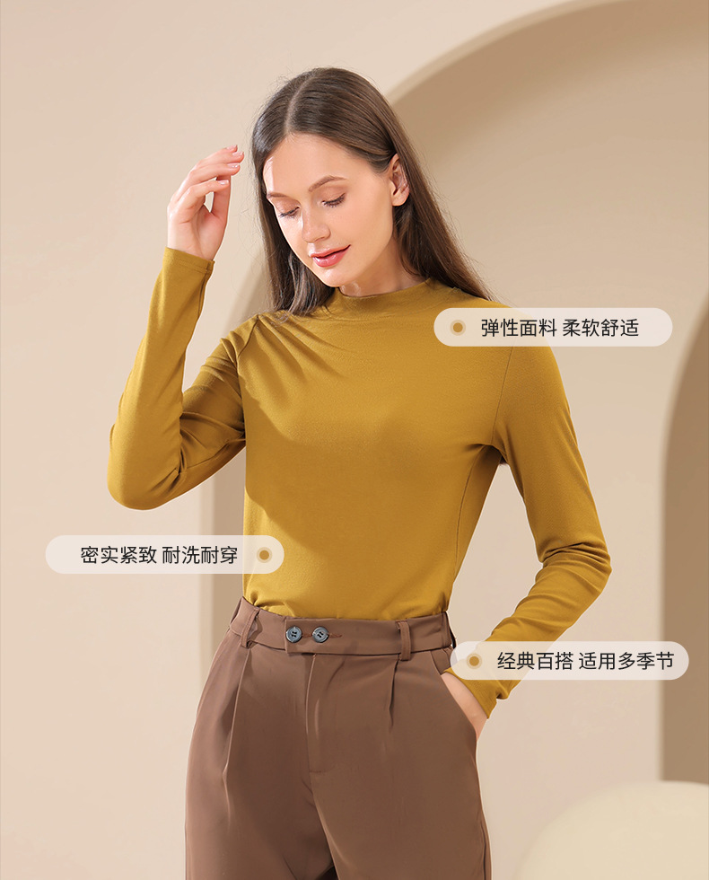 가을 겨울 작은 스탠드 칼라 긴팔 가을 의류 내부 및 외부 미드 칼라 탑 여성용 기본 하프 터틀넥 바닥 셔츠