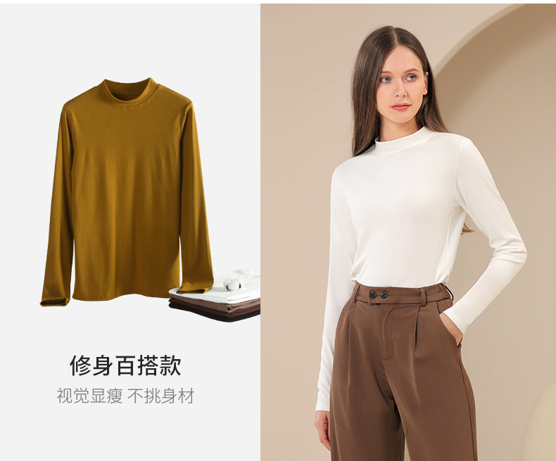 가을 겨울 작은 스탠드 칼라 긴팔 가을 의류 내부 및 외부 미드 칼라 탑 여성용 기본 하프 터틀넥 바닥 셔츠스토어 가기