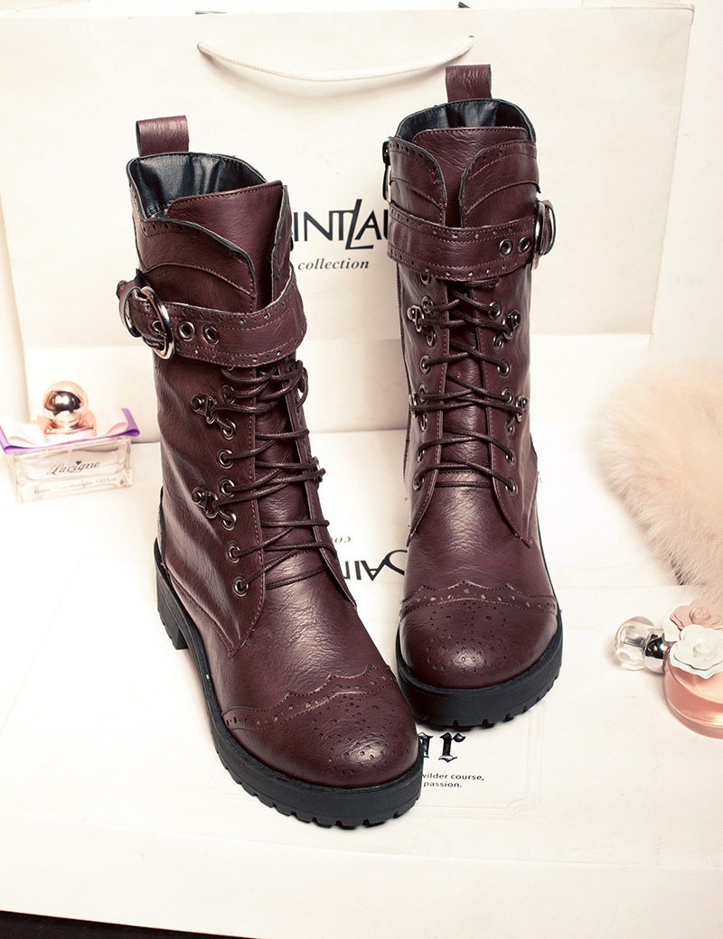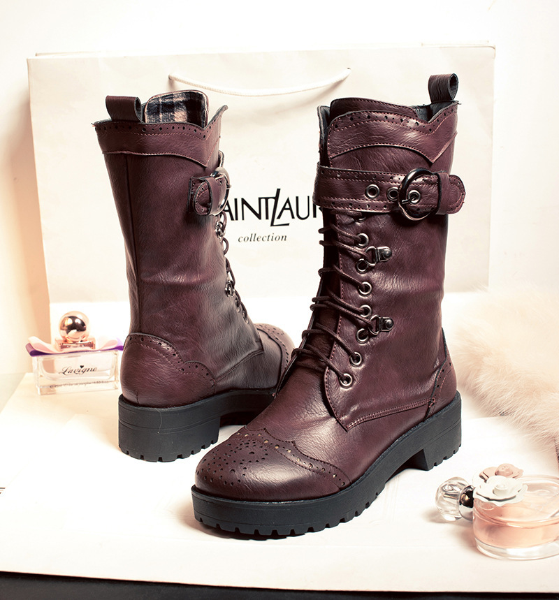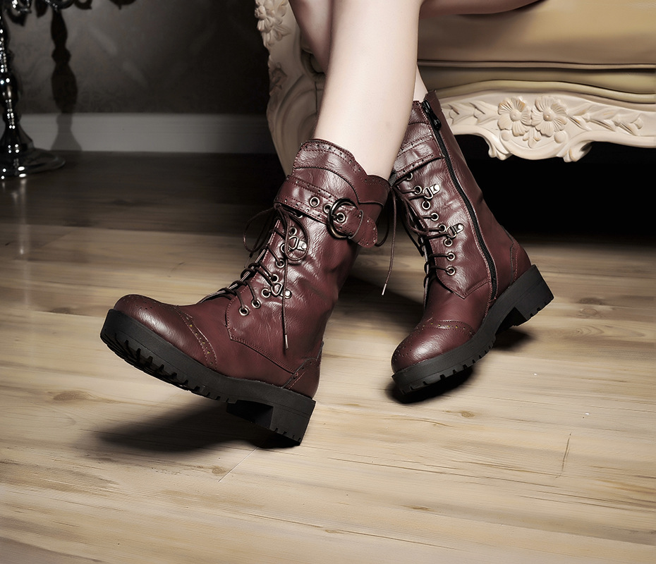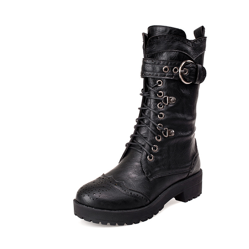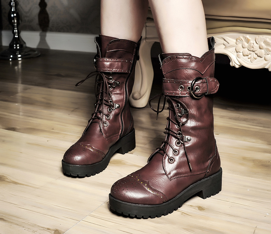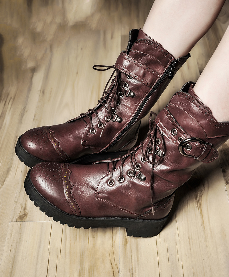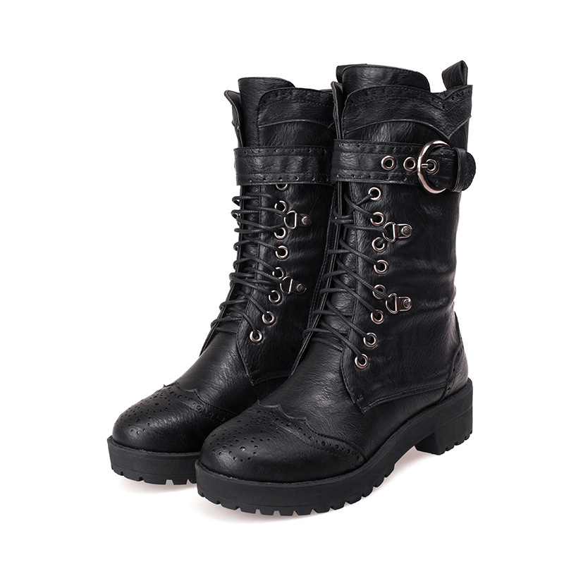 전면 레이스 업 여성 부츠 복고풍 마틴 부츠 플러스 사이즈 40-43 청두 여성 신발 해외 무역 크로스 보더 X2301030