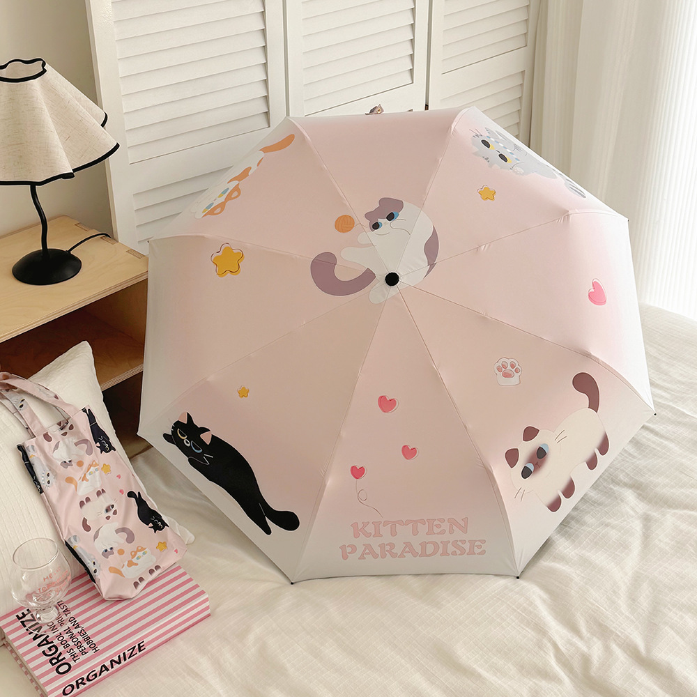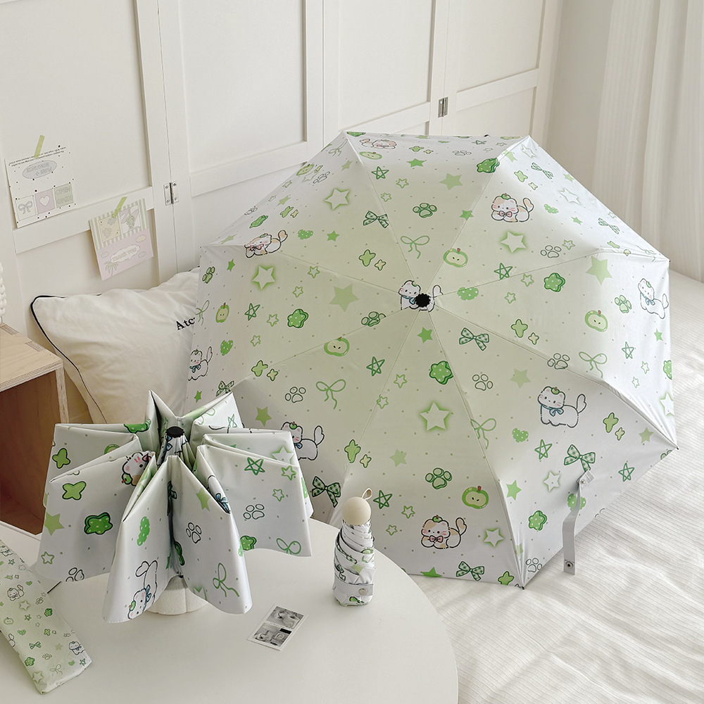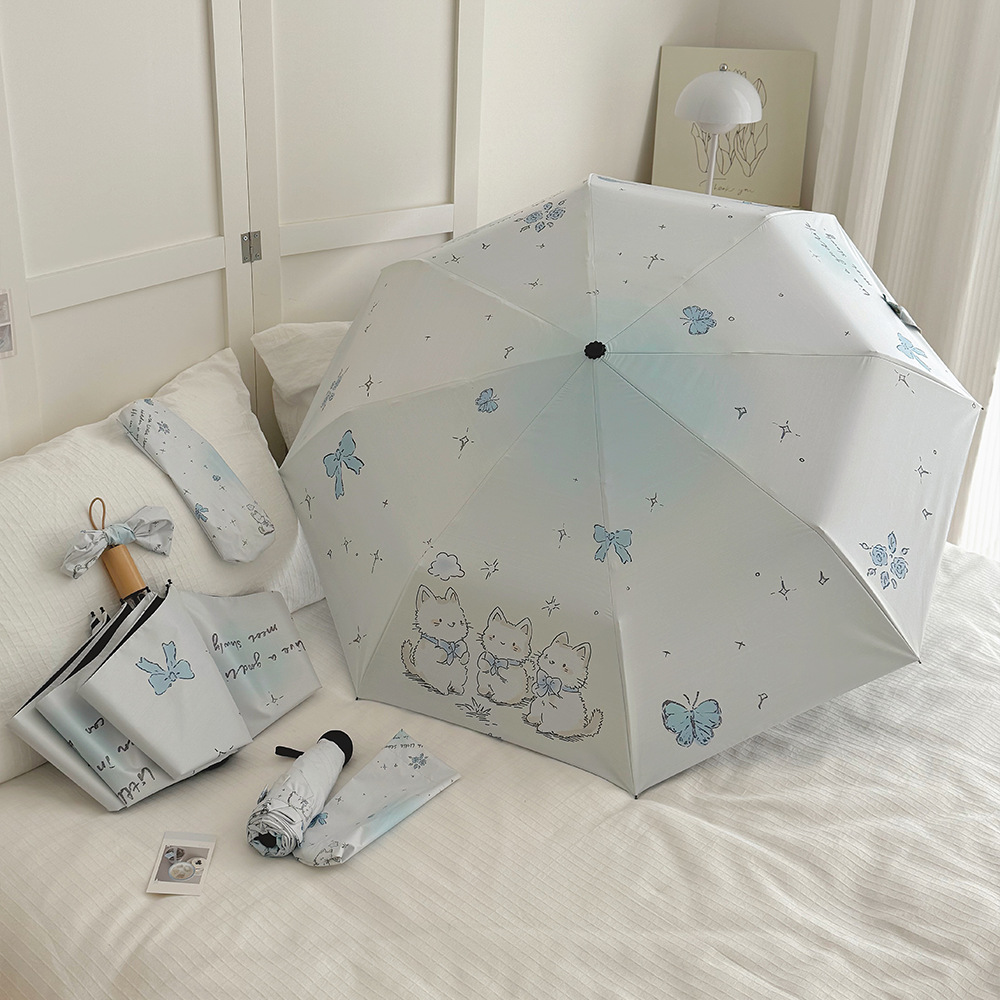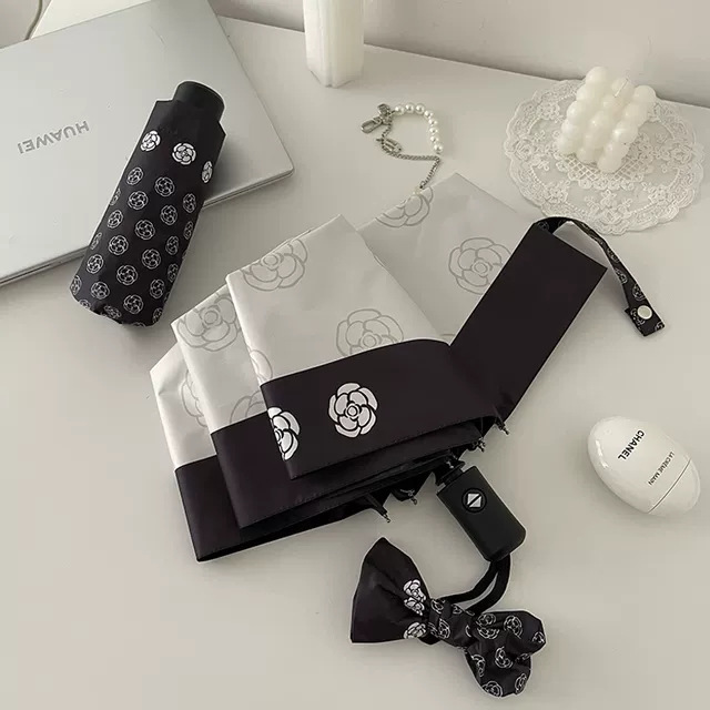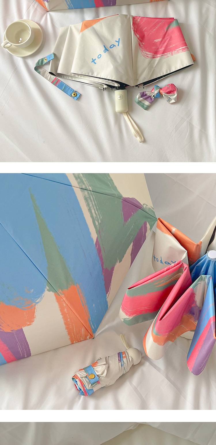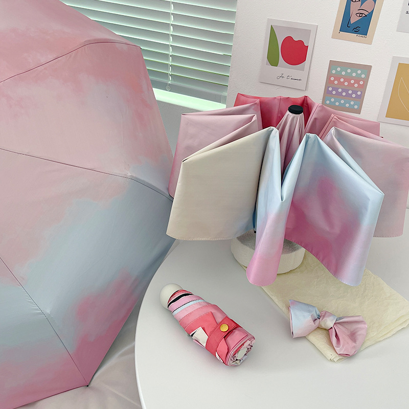 국경 간 일본 및 한국 자동 차양 우산 여성의 작은 신선한 색 선 스크린 우산 맑고 비오는 이중 사용 블랙 고무 50% 접은 태양 우산