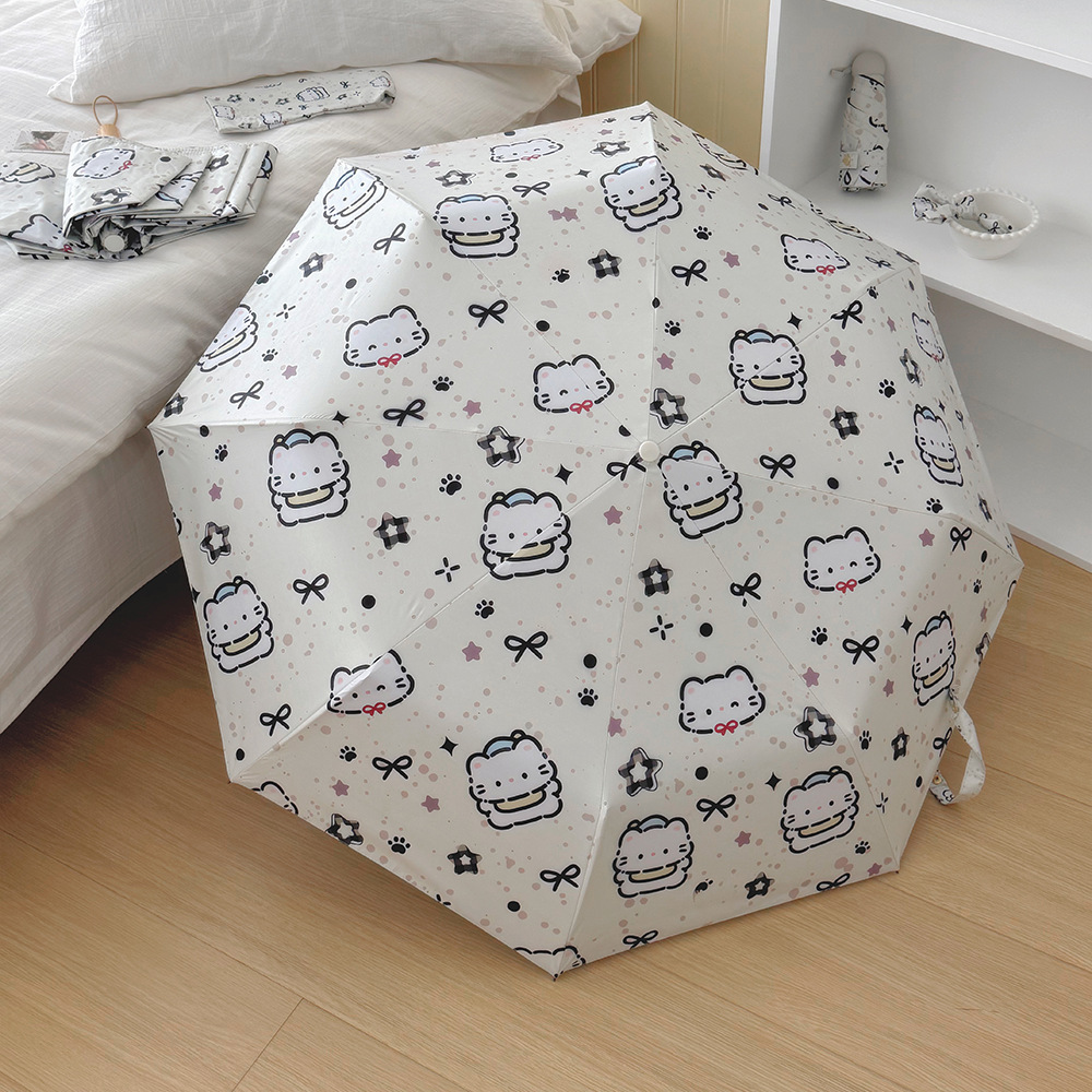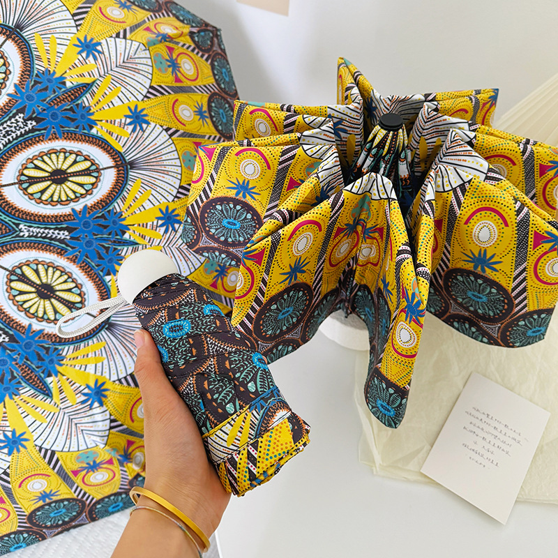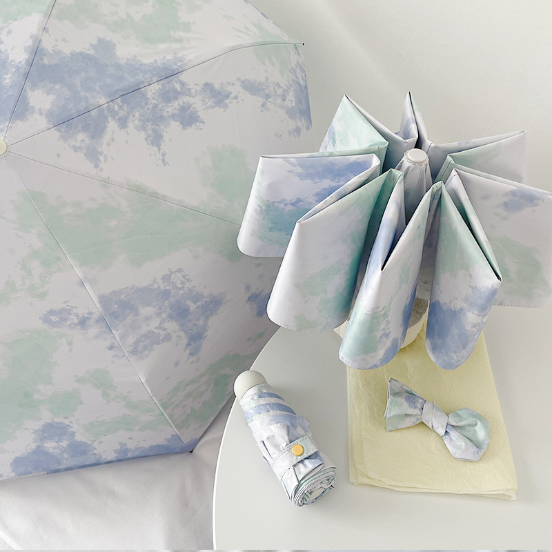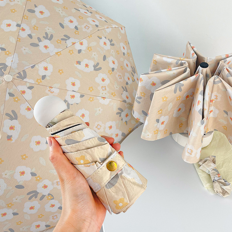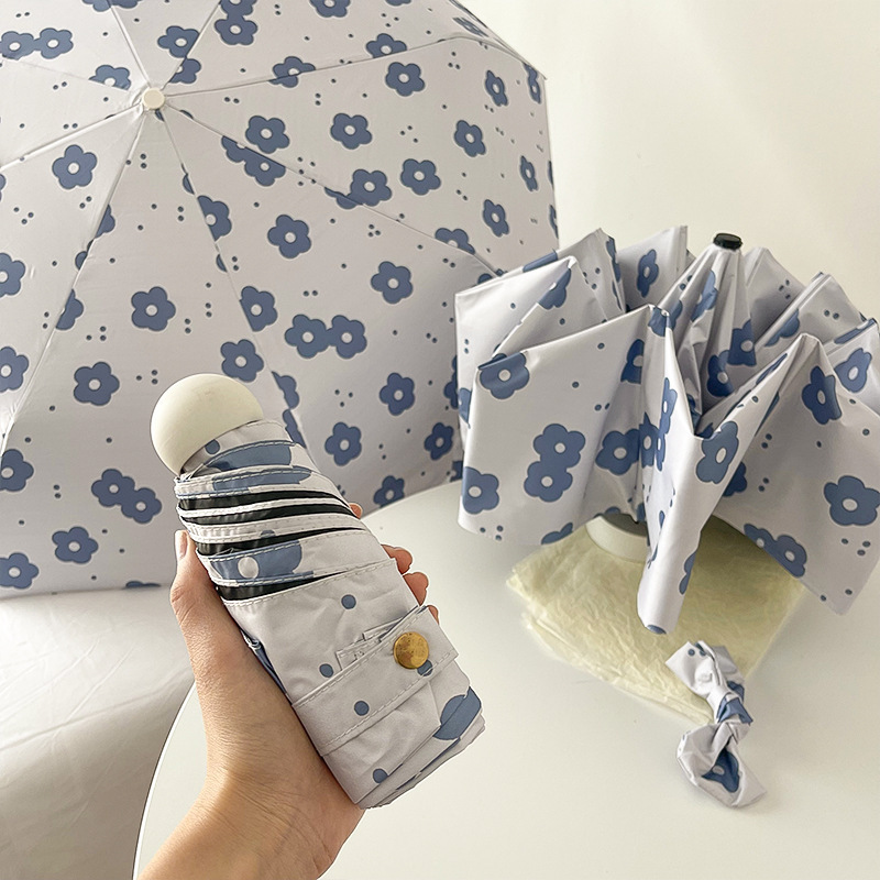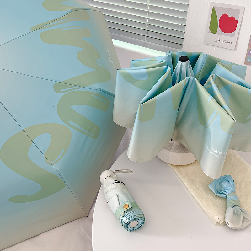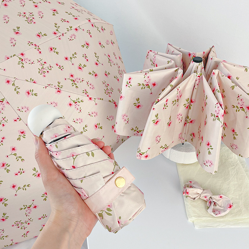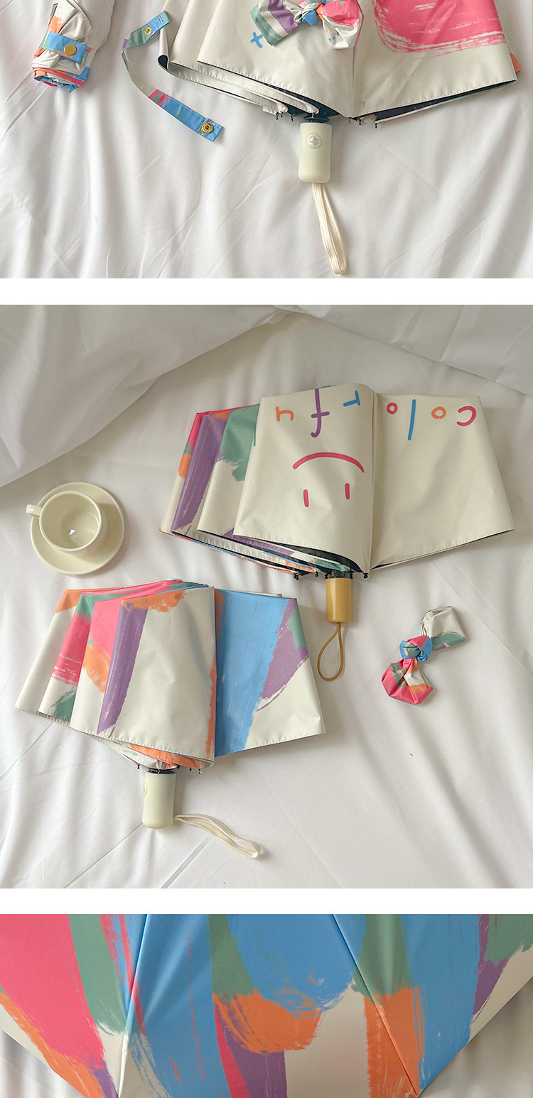 국경 간 일본 및 한국 자동 차양 우산 여성의 작은 신선한 색 선 스크린 우산 맑고 비오는 이중 사용 블랙 고무 50% 접은 태양 우산