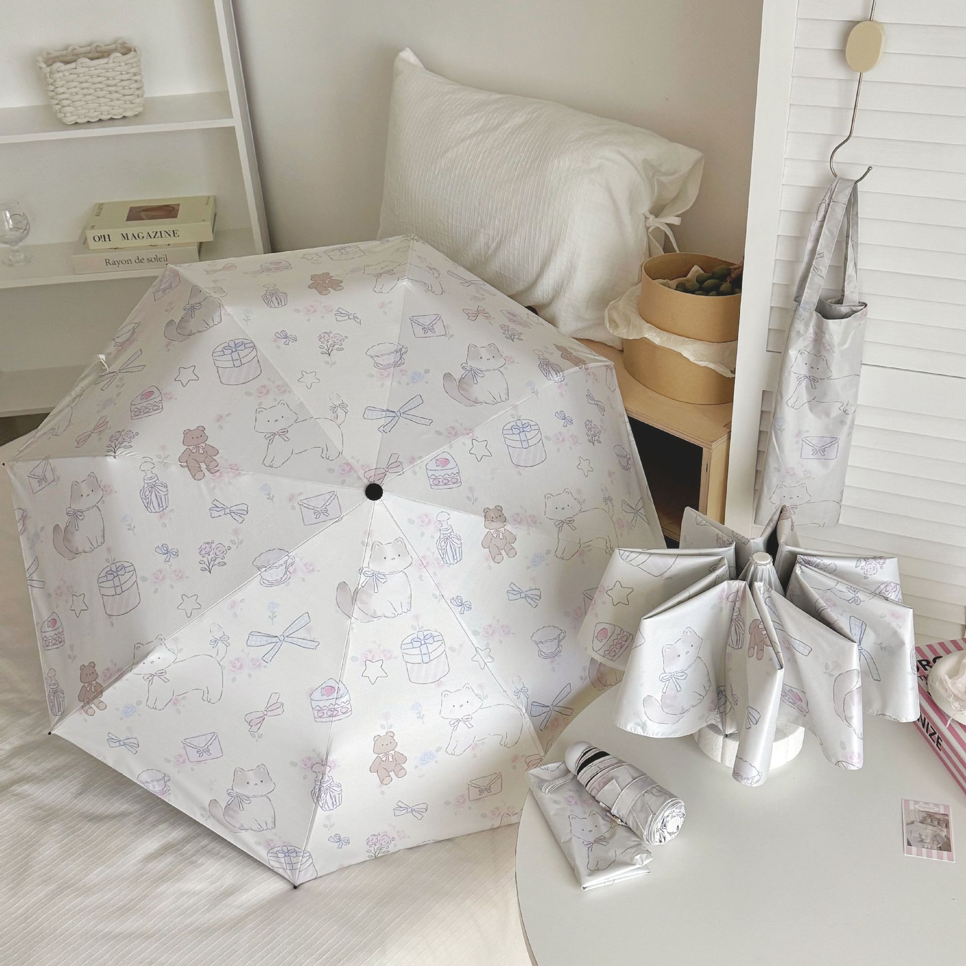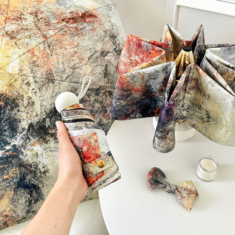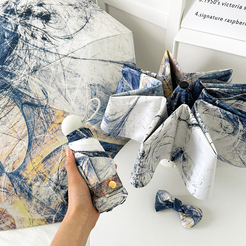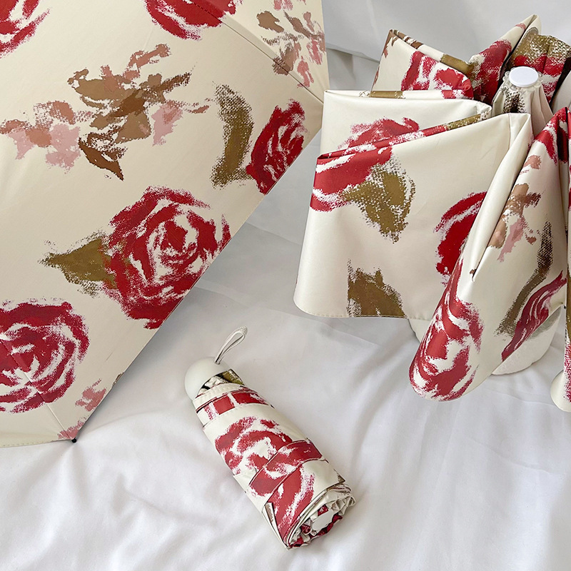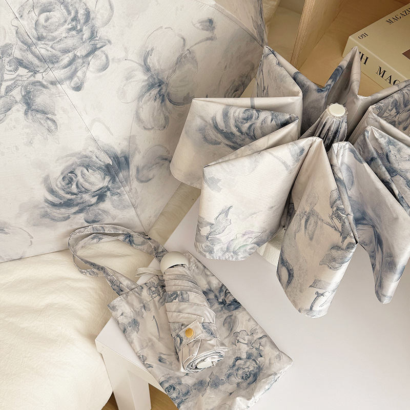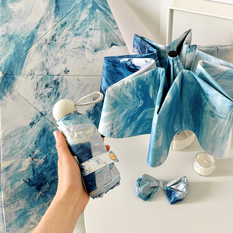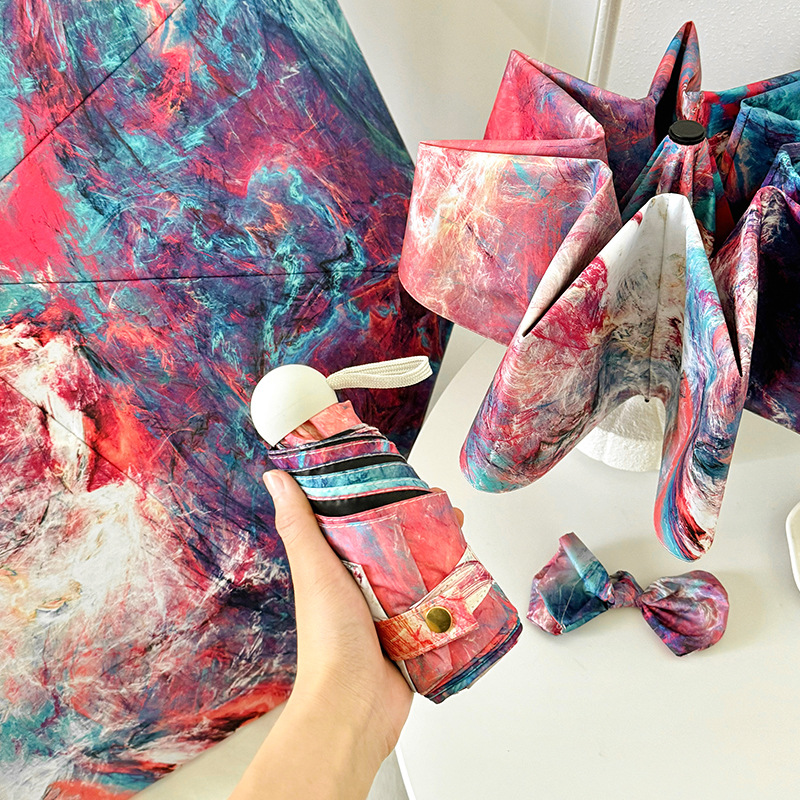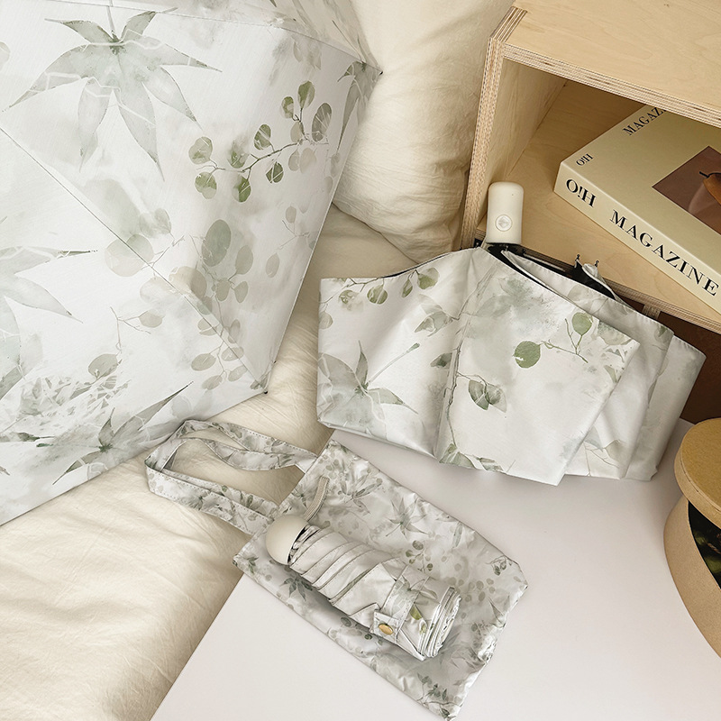 국경 간 일본 및 한국 자동 차양 우산 여성의 작은 신선한 색 선 스크린 우산 맑고 비오는 이중 사용 블랙 고무 50% 접은 태양 우산