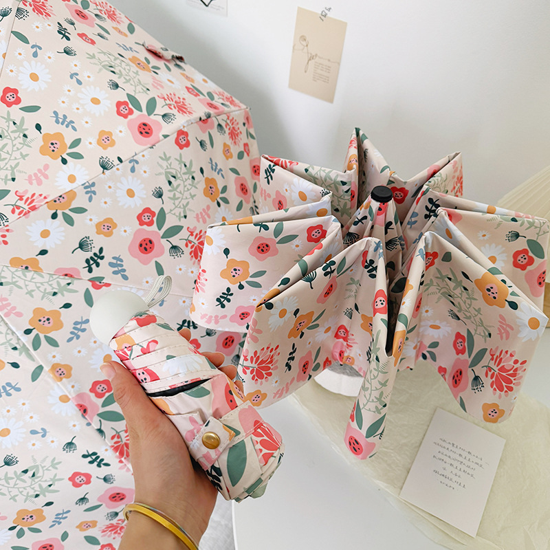 국경 간 일본 및 한국 자동 차양 우산 여성의 작은 신선한 색 선 스크린 우산 맑고 비오는 이중 사용 블랙 고무 50% 접은 태양 우산스토어 가기