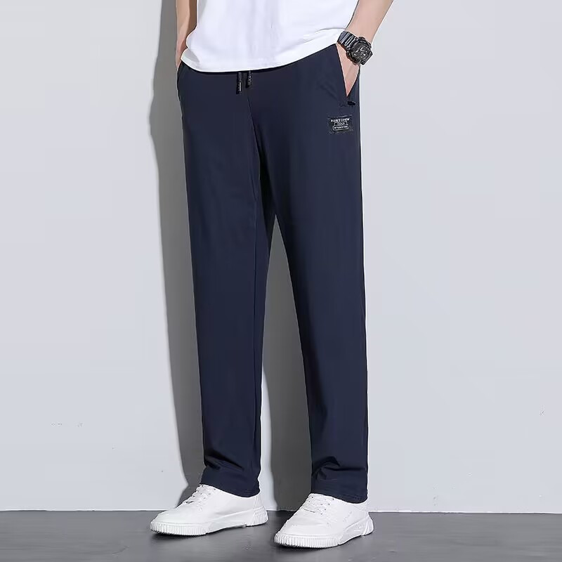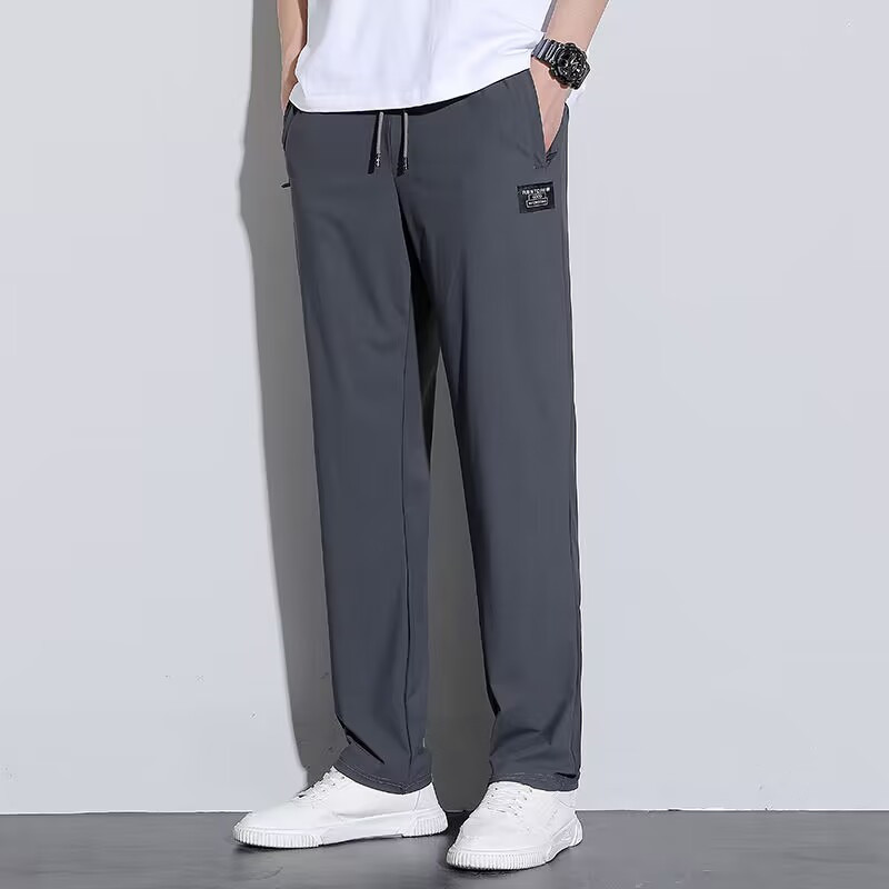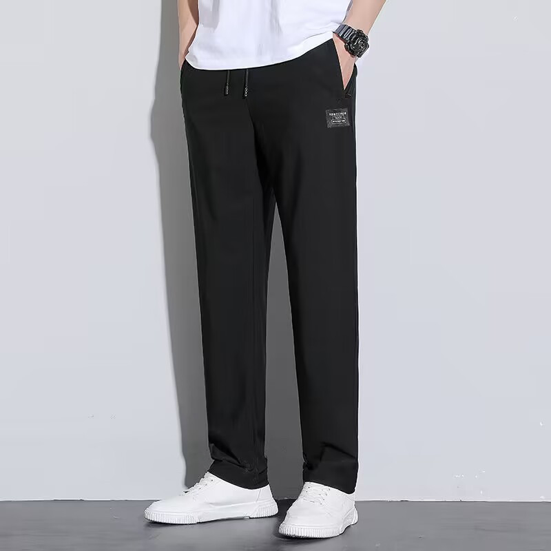 여름 아이스 실크 캐주얼 바지 남성용 탄성 속건 스포츠 바지 얇은 통기성 느슨한 스트레이트 바지 플러스 사이즈 남성용 바지스토어 가기
