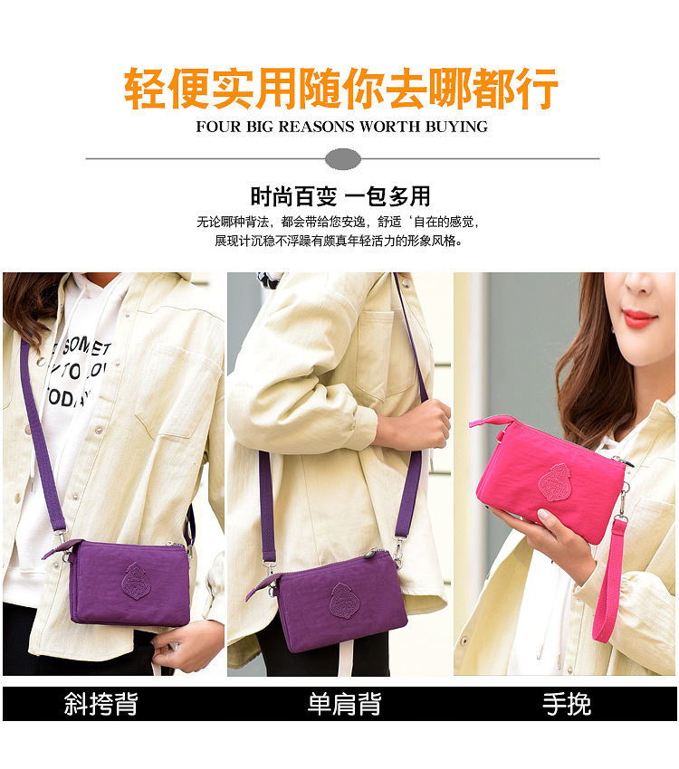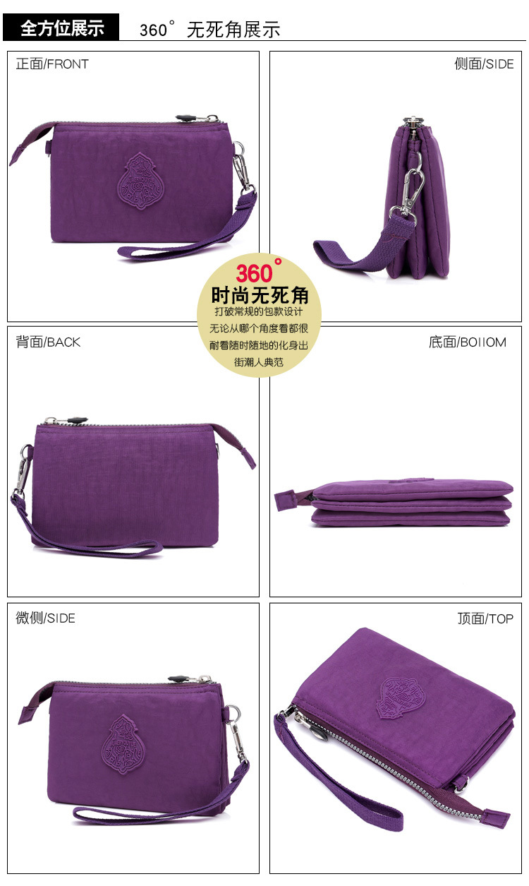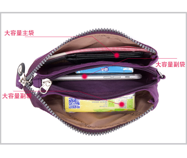 여성용 크로스바디 백 경량 워싱 나일론 숄더백 다단계 휴대폰 교체 키백 핸드백