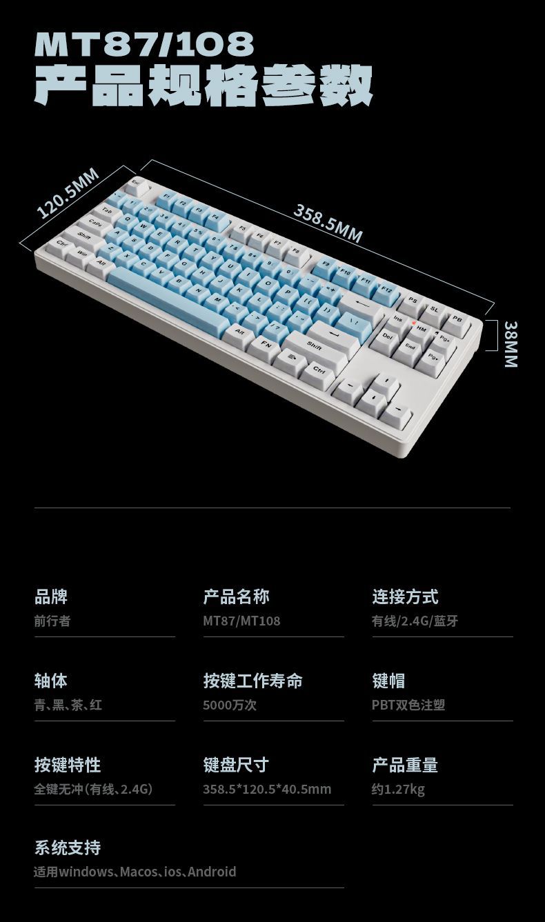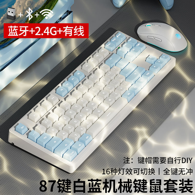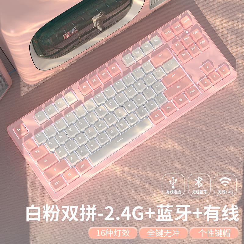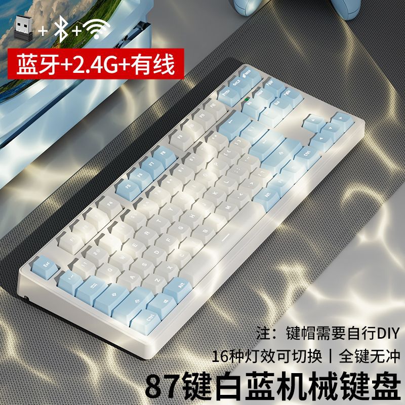 선두 주자 MT87 무선 블루투스 3 모드 기계식 키보드 녹색 축 검정색 컴퓨터 전자 스포츠 게임 사무실 유선 87 키스토어 가기