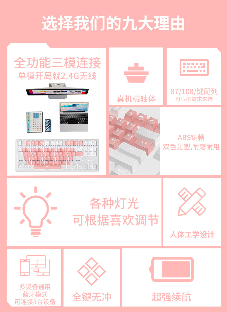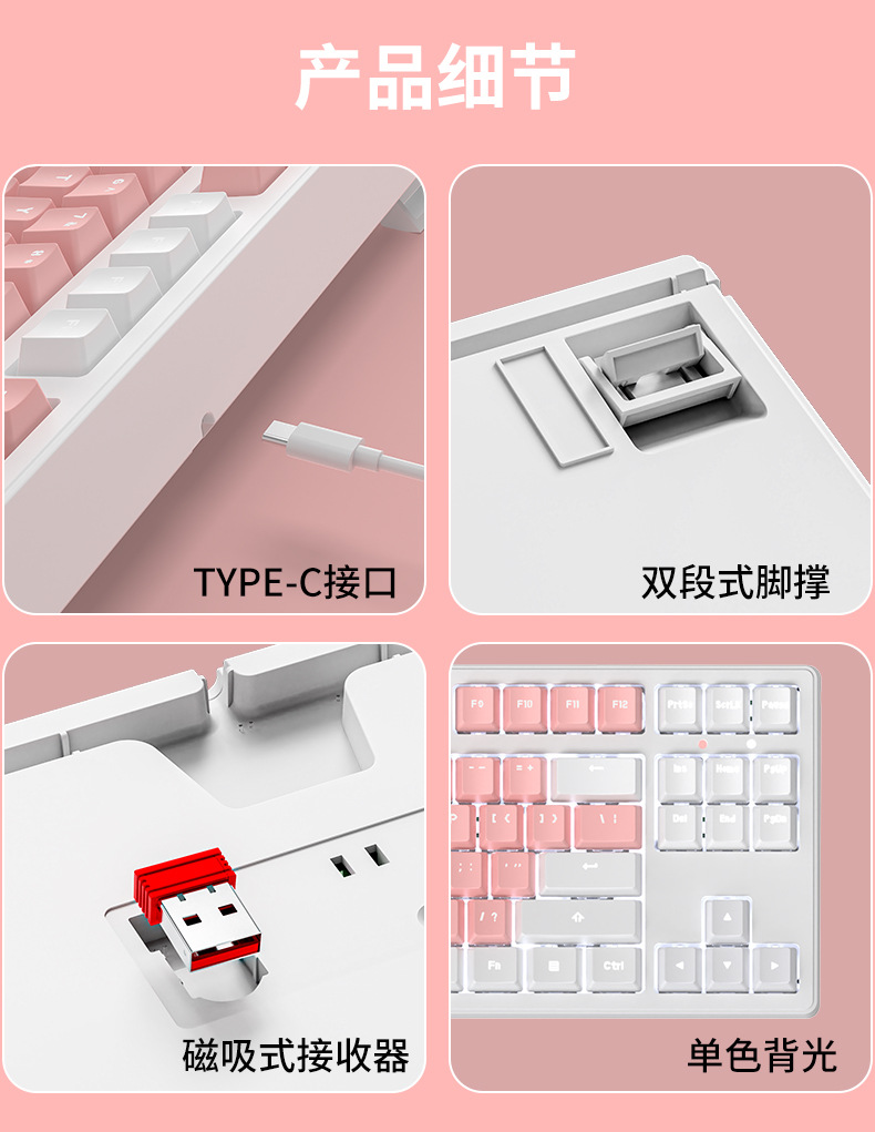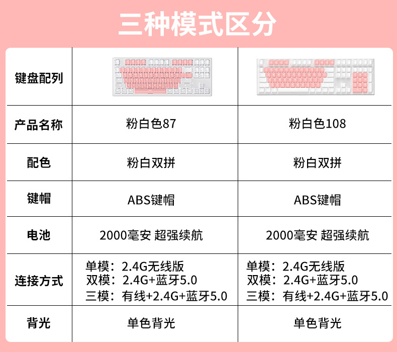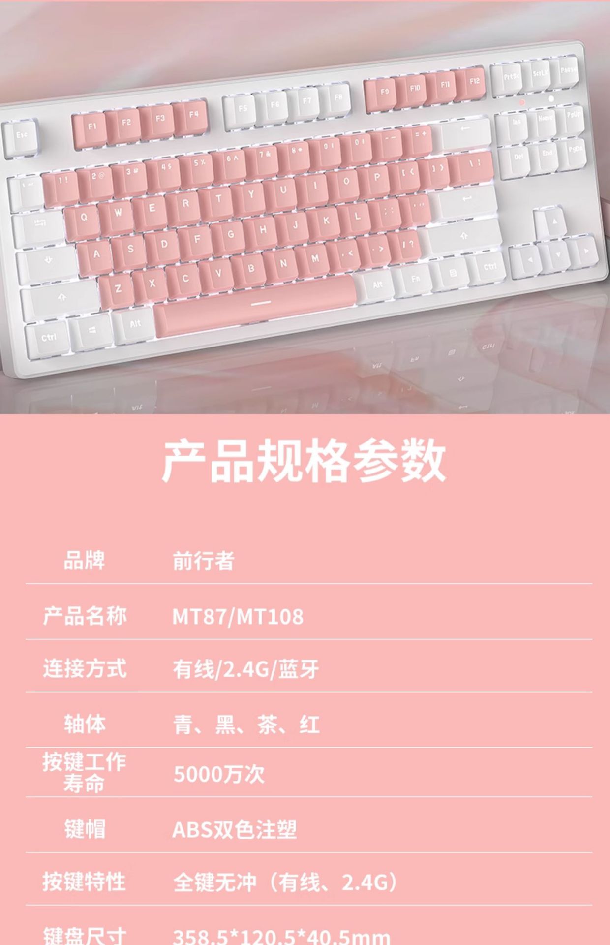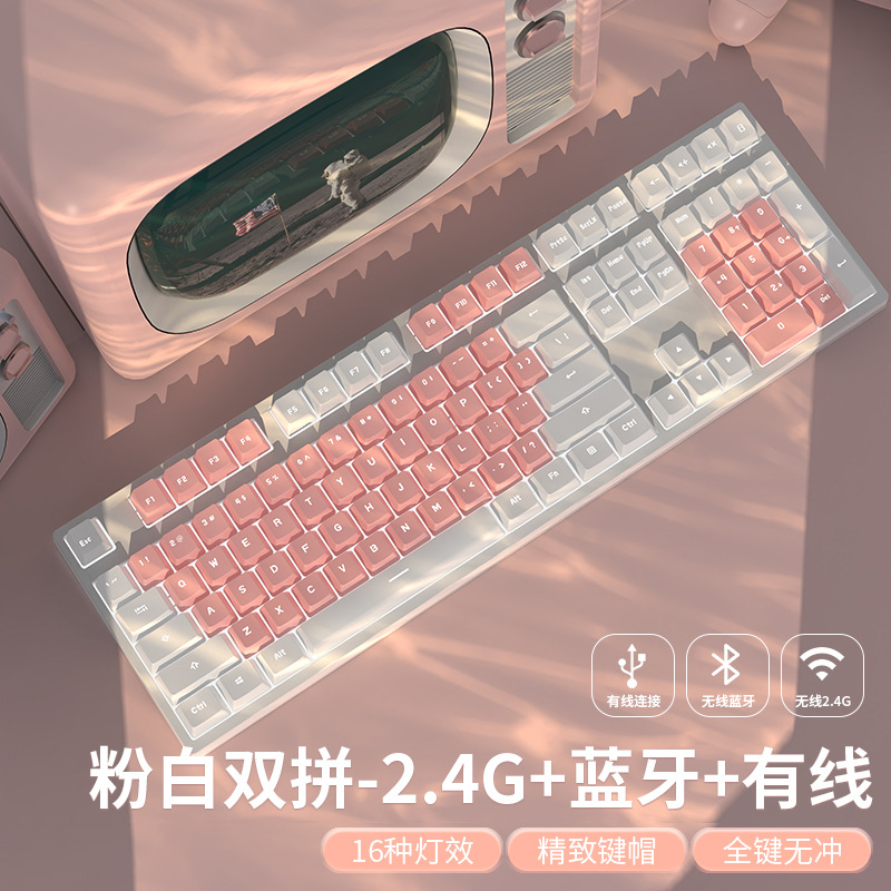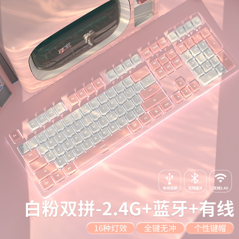 • 핑크 & 화이트 마카롱 [108 키-화이트 라이트-2.4g 무선 버전 // 블루투스 5.0/유선 버전]]