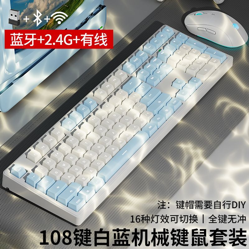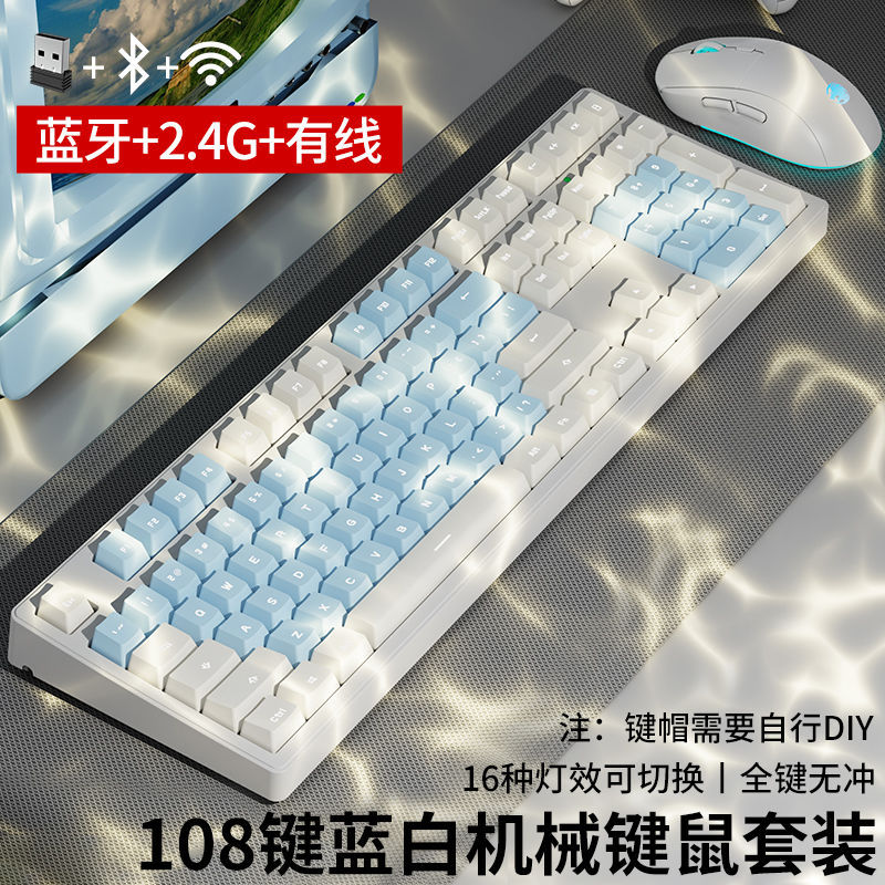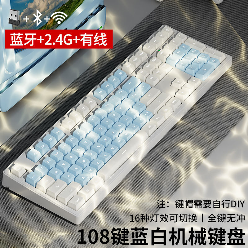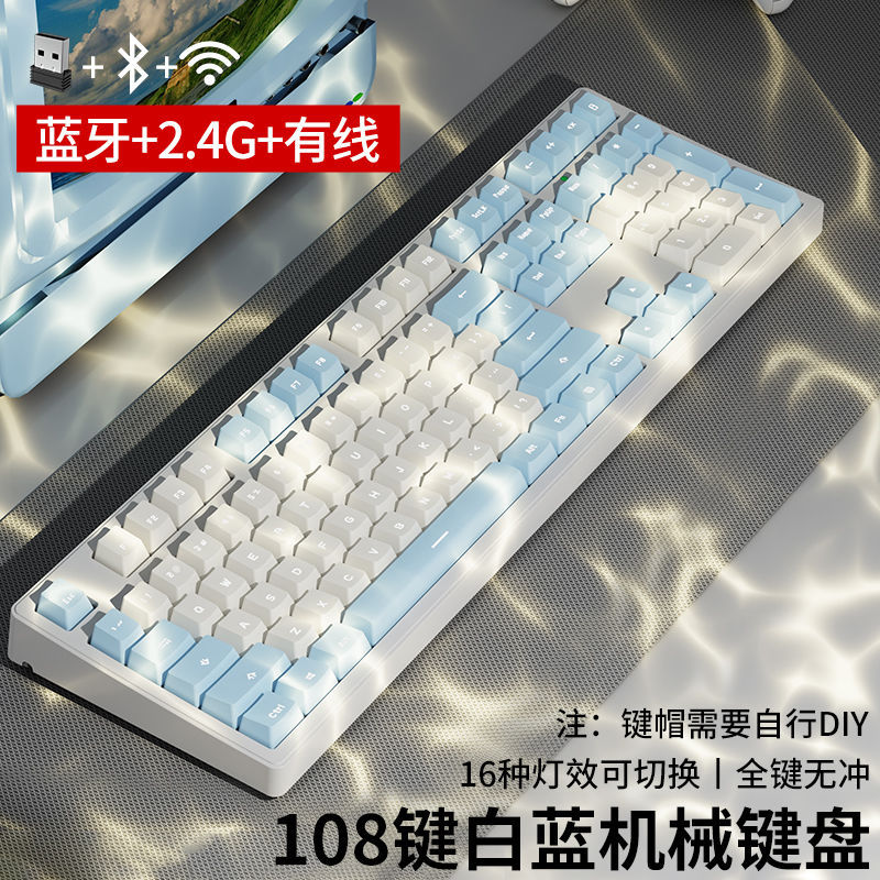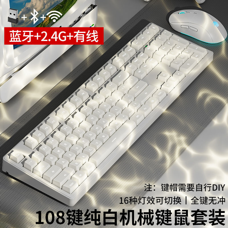 • 화이트 파우더 마카롱 [108 키-화이트 라이트-2.4g 무선 버전 // 블루투스 5.0 // 유선
