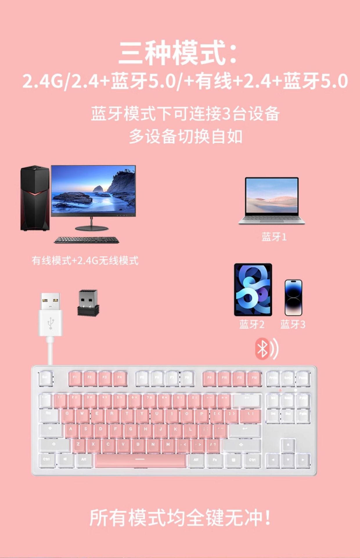 • 핑크 마카롱 [2.4g 무선 에디션 // 블루투스 5.0 // 유선 에디션]]