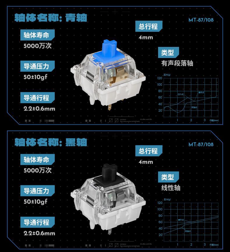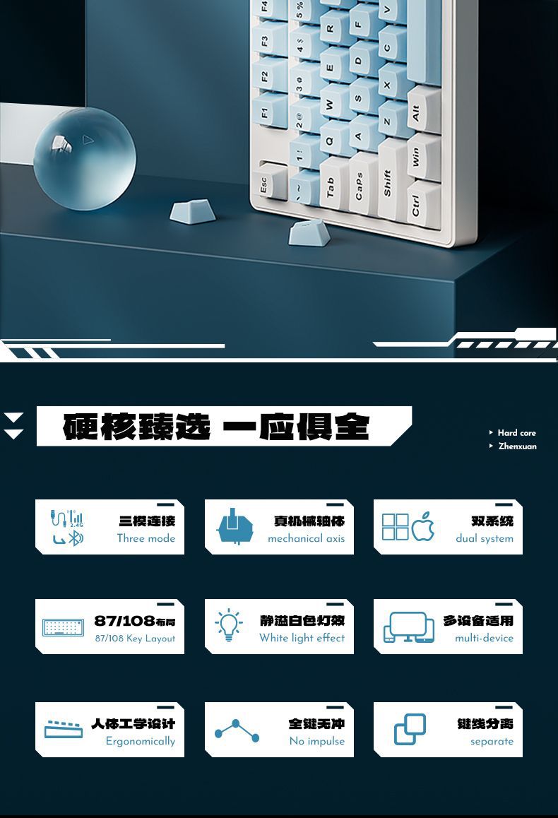 • 파란색과 흰색 컬러 매칭 108 키-싱글 키보드 [3 개의 템플릿]]